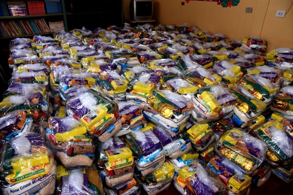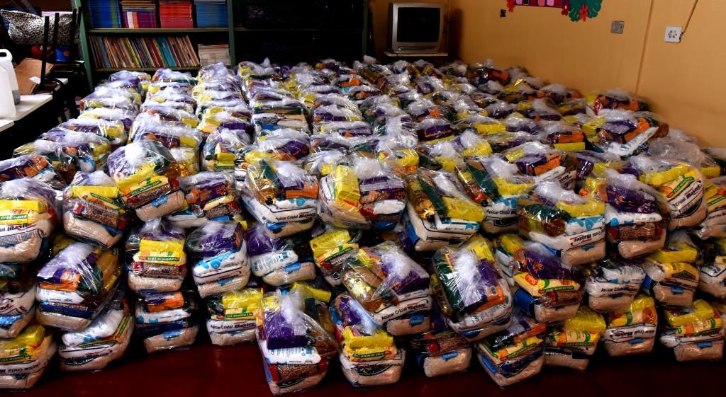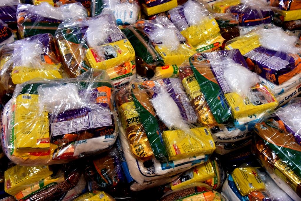 Os mais de 400 idosos passavam e iam pegando seus kits de alimentação.