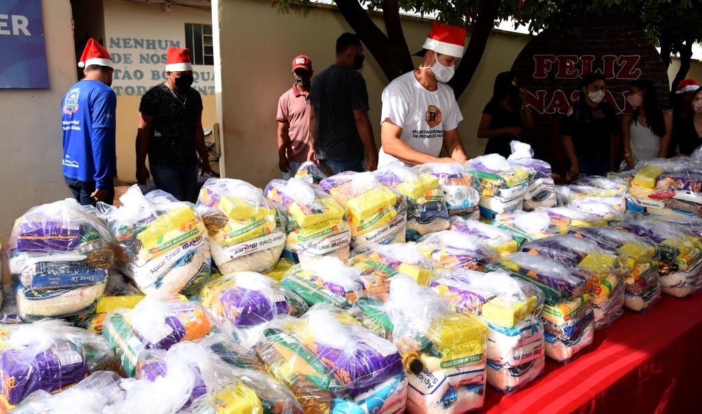 Os idosos do Projeto Conviver, ligado à Secretaria Municipal de Promoção Social, foram contemplados com centenas de cestas básicas, na manhã de hoje (21).