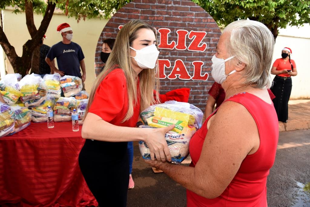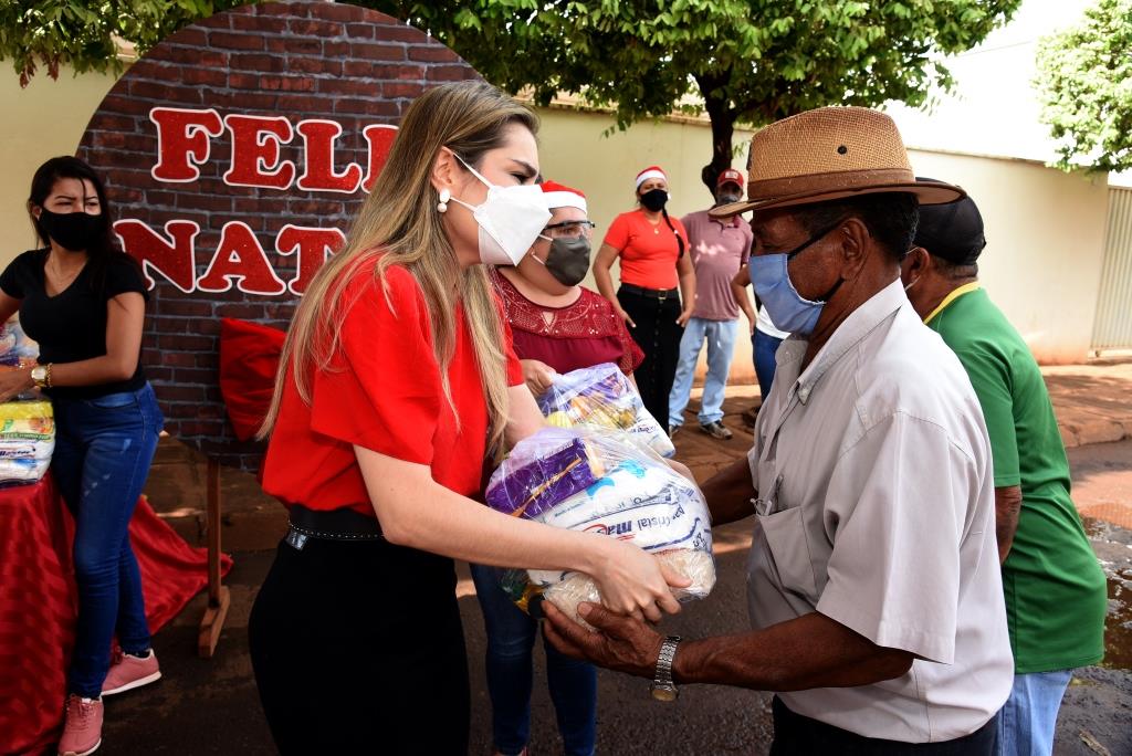 A Primeira Dama e Secretária de Promoção Social do município, Drª Renata Asmar Araújo Rodrigues, fez questão de entregar e deixar sua mensagem de fim de ano a cada um que passou por ali.