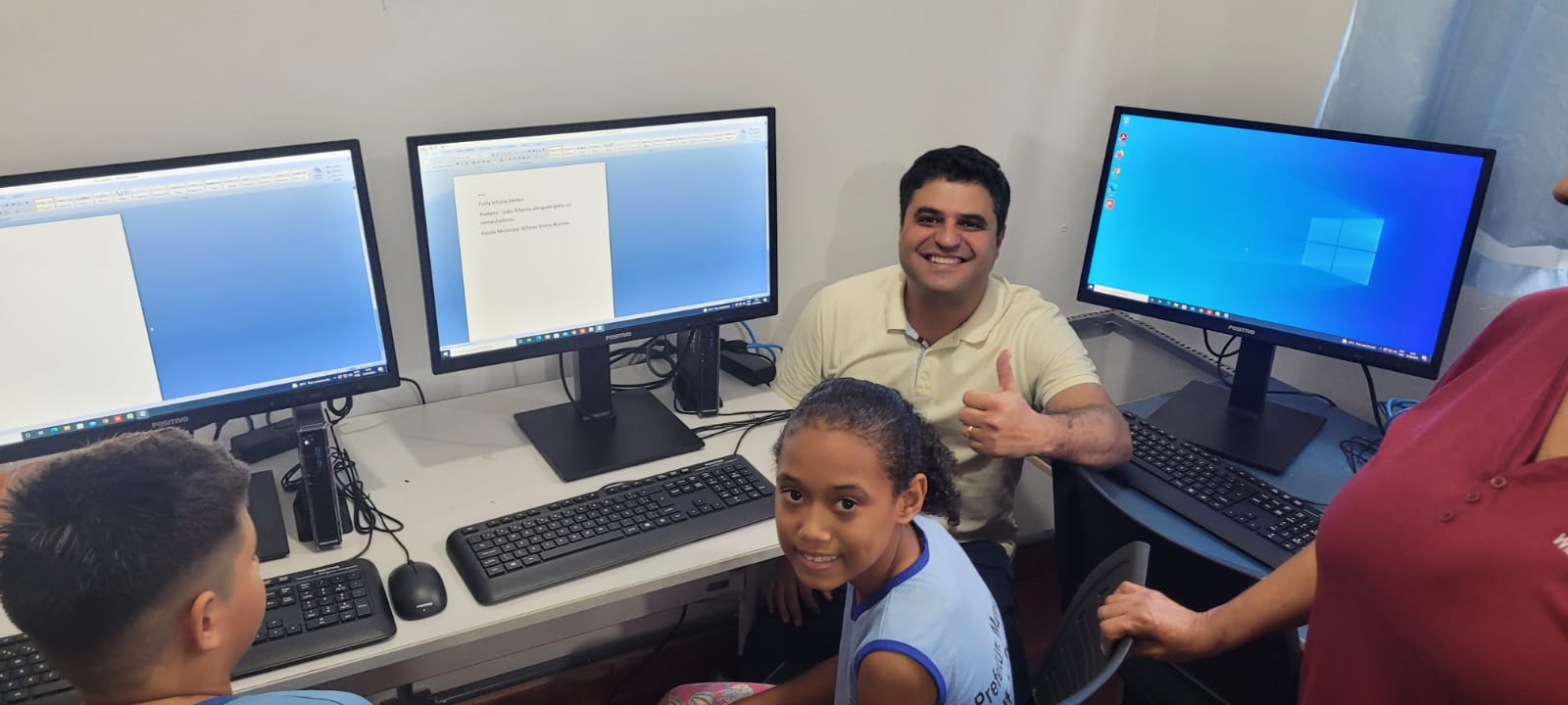 Hoje, dia 12/05, a Prefeitura Municipal, entregou para a Escola Municipal Wilmar Vieira Arantes, para todos os alunos e professores a nova Sala de Informática que vem com 08 computadores de última geração, equipamentos de ponta que realmente vão colocar os nossos alunos dentro de um contexto de equidade com os demais alunos de todo o Brasil utilizando tecnologia e melhorando o seu ensino.