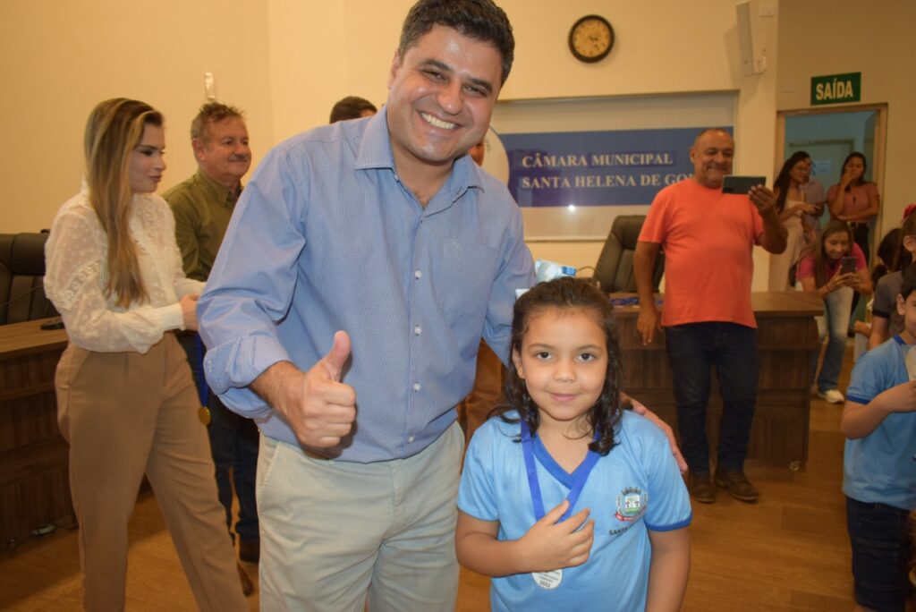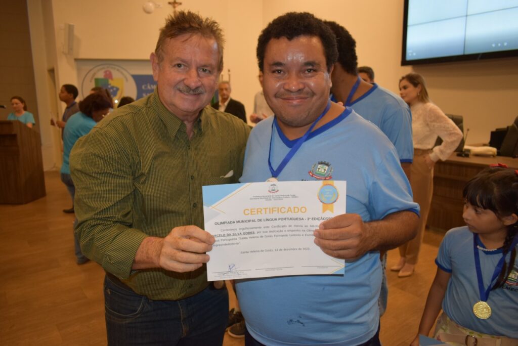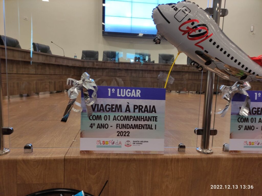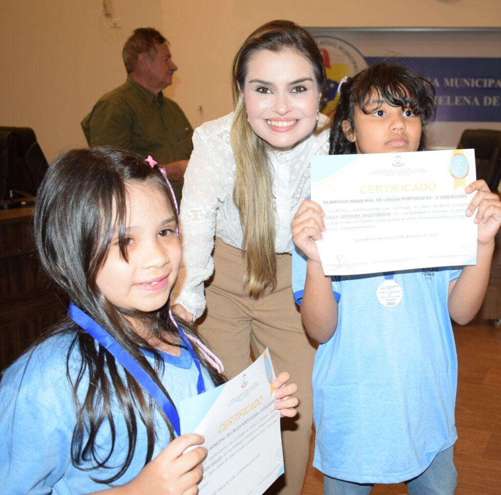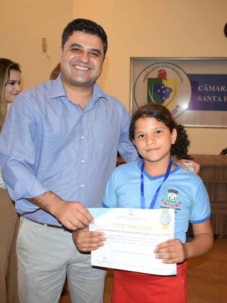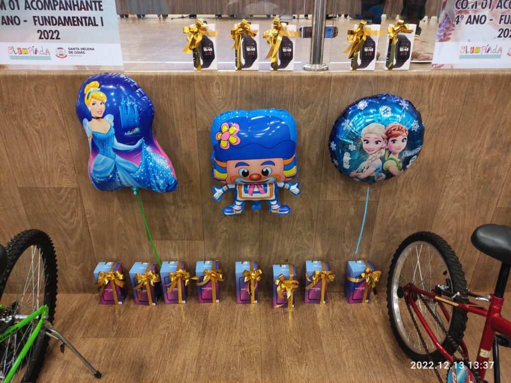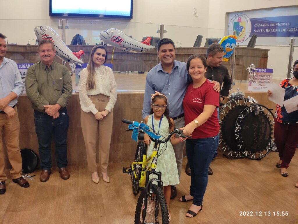 Prefeitura Municipal de Santa Helena de Goiás através da Secretaria Municipal de Educação entrega premiação aos estudantes premiados pela Olimpíada Municipal de língua Portuguesa. Em um universo de mais de 3.500 alunos na rede municipal de ensino, mais de 200 foram classificados e chegou o grande dia da premiação que vai de bicicleta, cama elástica, viagens a Caldas Novas e viagens a Praia com acompanhante e muito mais, vale ressaltar que o professor do aluno também recebe prêmios e a maioria recebeu um celular cada. Prefeito Dr. João Alberto, 1ª dama Dra. Renata Asmar Rodrigues, vice-prefeito Dr. Agenor Bezerra de Queiroz, secretário da educação Esteverson, vereadores Aduil Junior, Francisco Dantas e Silvio Marques, além de toda a equipe da educação, participaram do evento que aliás foi muito bem organizado.