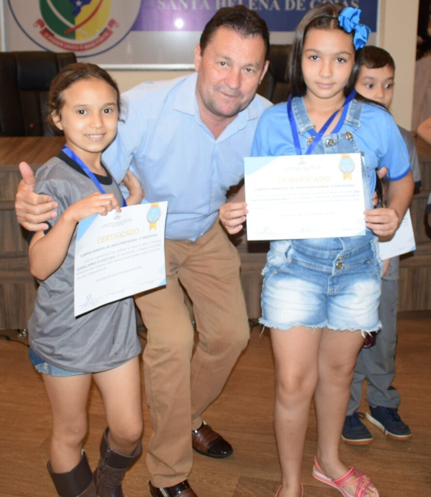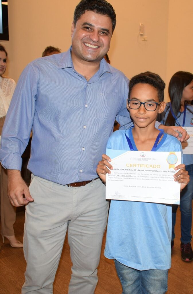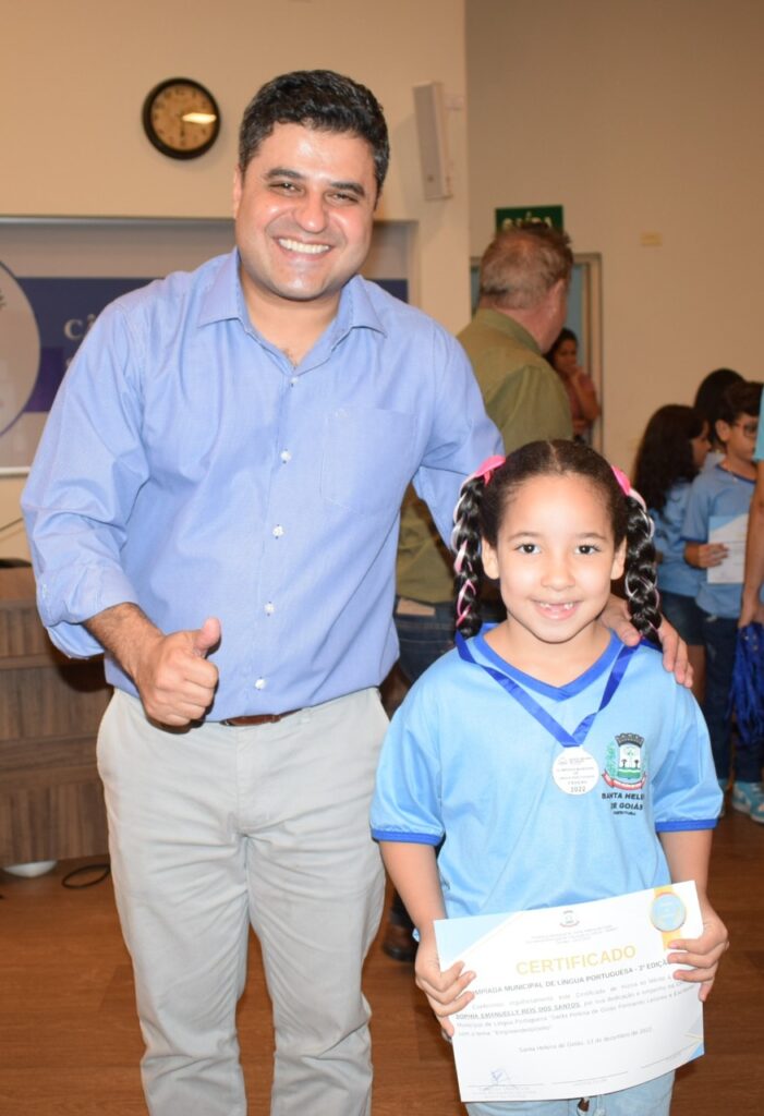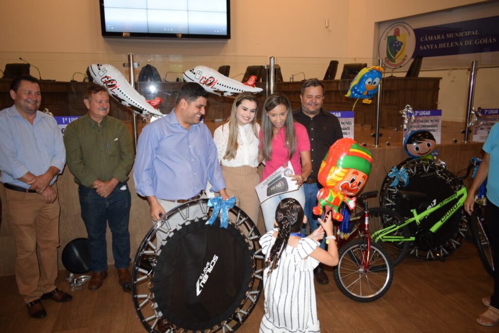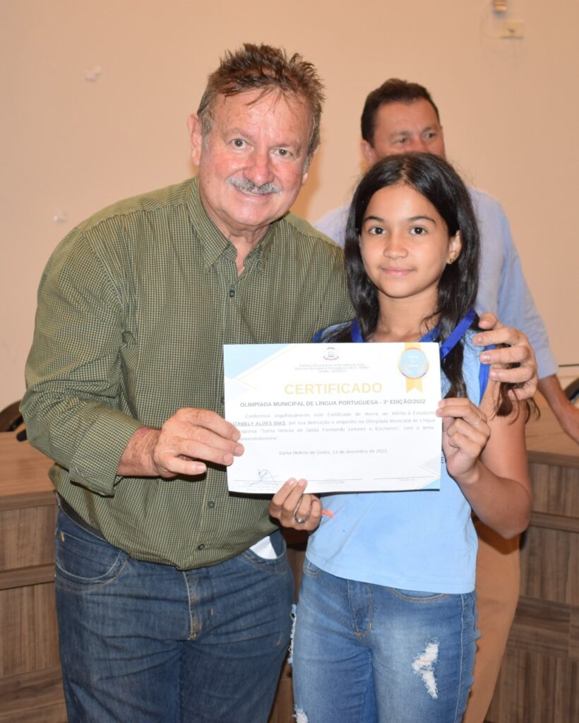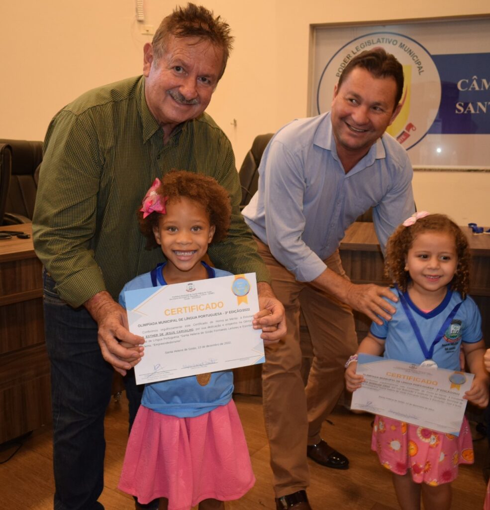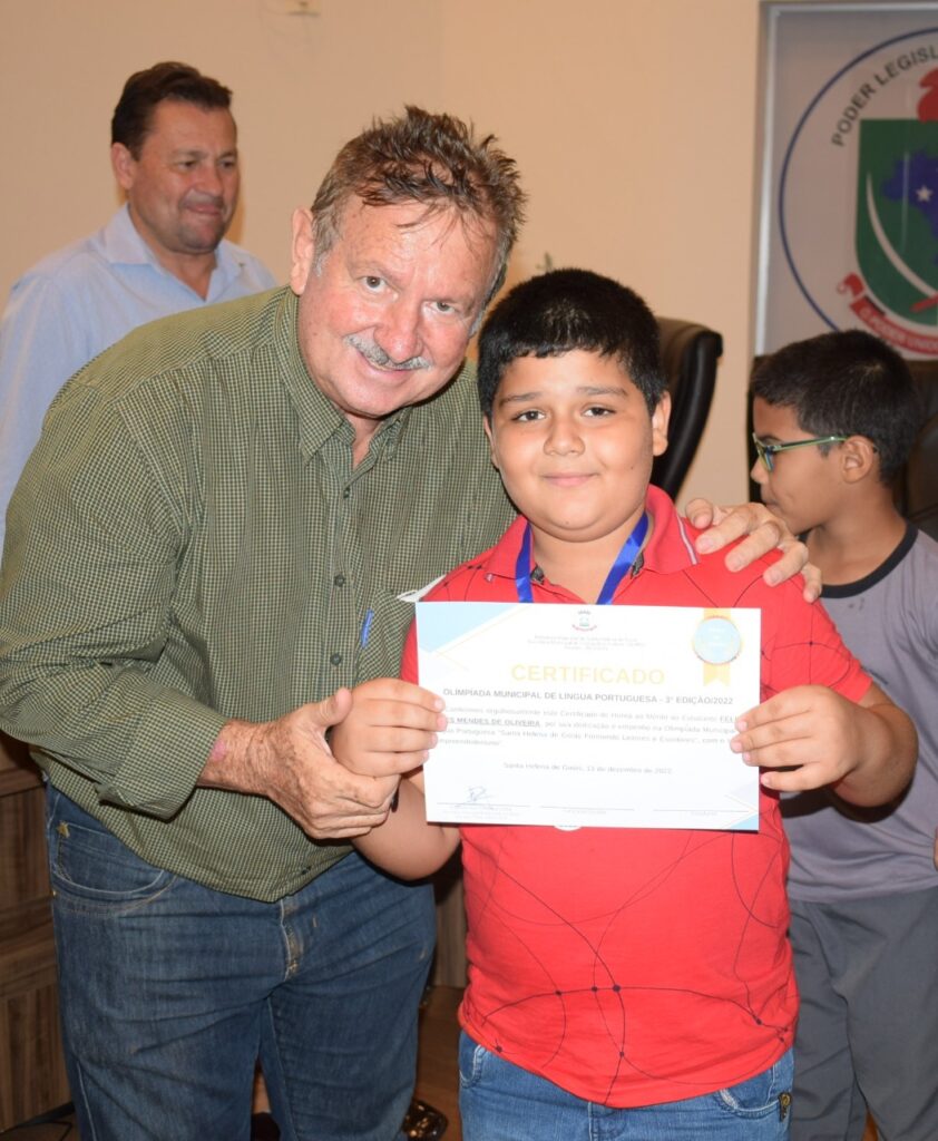 Prefeitura Municipal de Santa Helena de Goiás através da Secretaria Municipal de Educação entrega premiação aos estudantes premiados pela Olimpíada Municipal de língua Portuguesa. Em um universo de mais de 3.500 alunos na rede municipal de ensino, mais de 200 foram classificados e chegou o grande dia da premiação que vai de bicicleta, cama elástica, viagens a Caldas Novas e viagens a Praia com acompanhante e muito mais, vale ressaltar que o professor do aluno também recebe prêmios e a maioria recebeu um celular cada. Prefeito Dr. João Alberto, 1ª dama Dra. Renata Asmar Rodrigues, vice-prefeito Dr. Agenor Bezerra de Queiroz, secretário da educação Esteverson, vereadores Aduil Junior, Francisco Dantas e Silvio Marques, além de toda a equipe da educação, participaram do evento que aliás foi muito bem organizado.