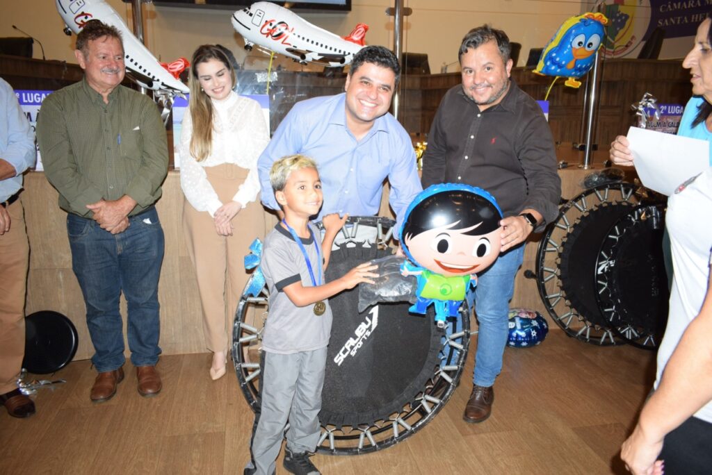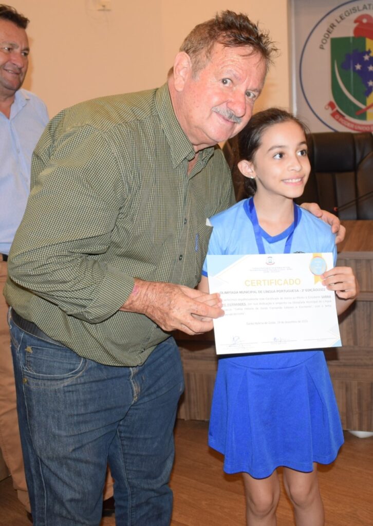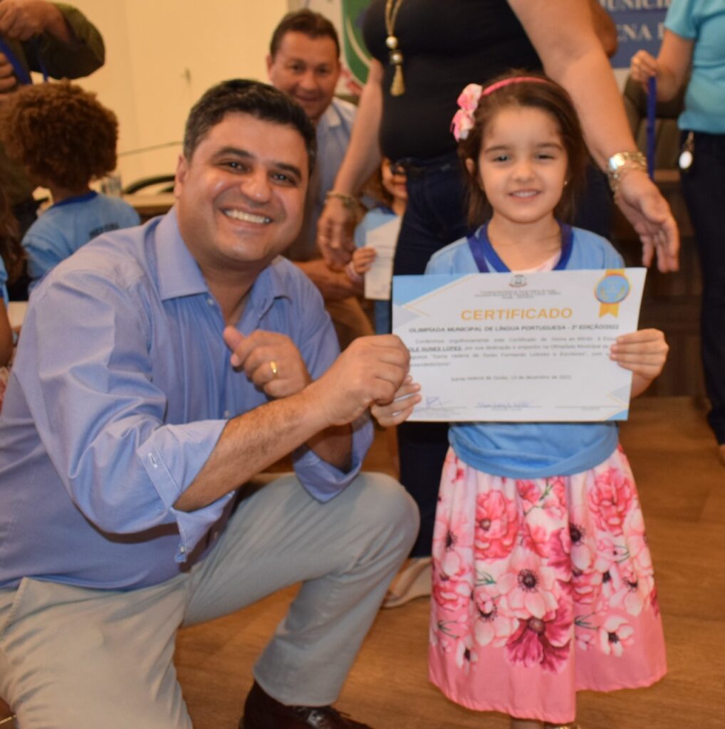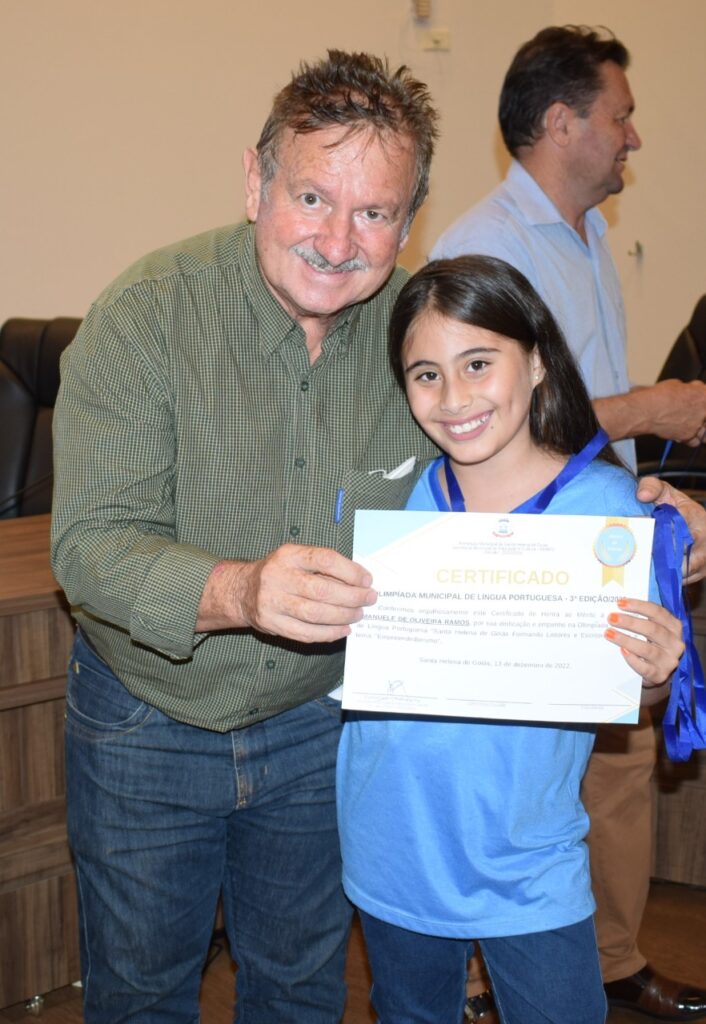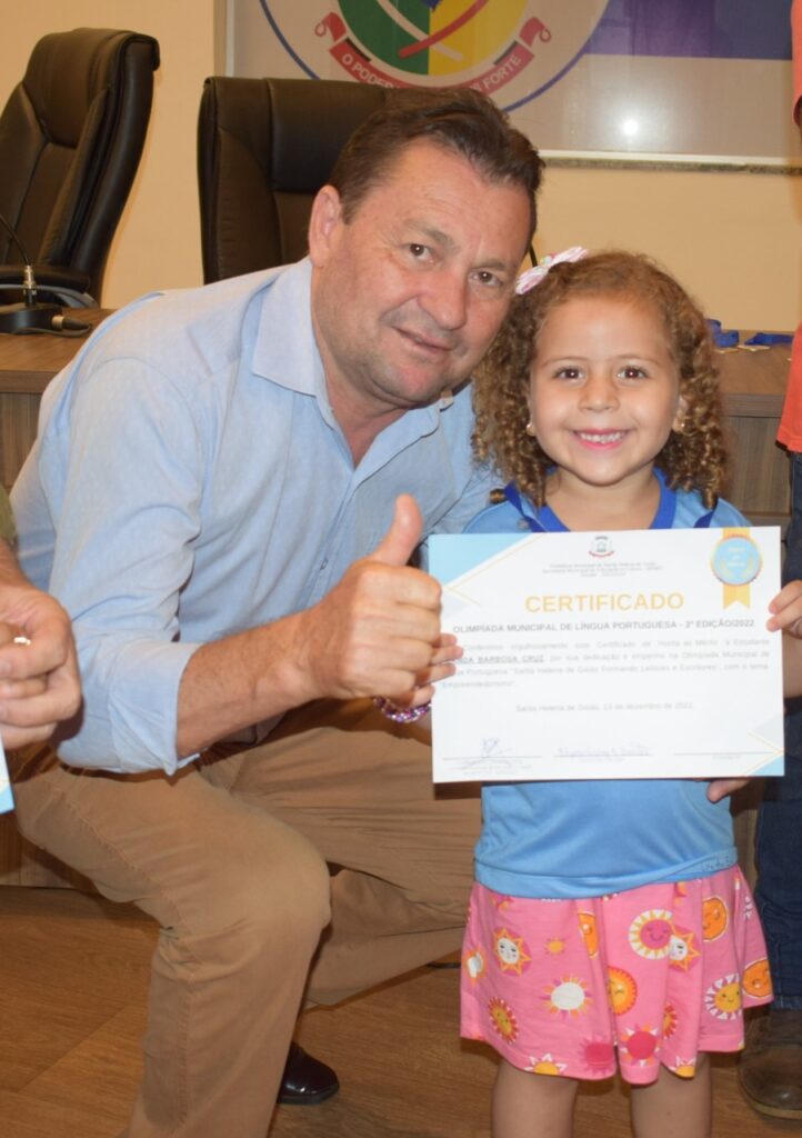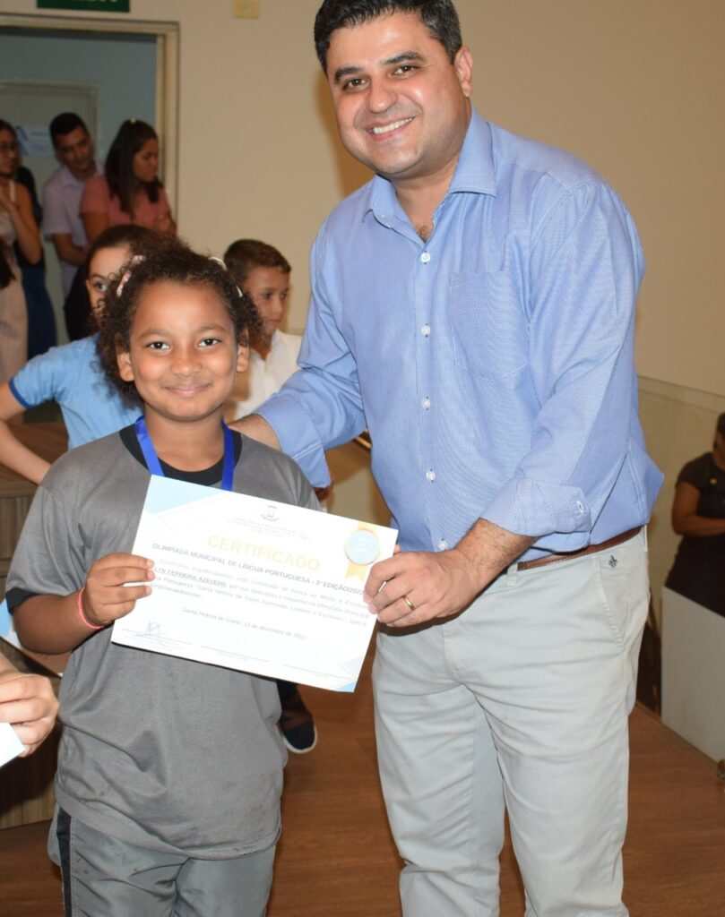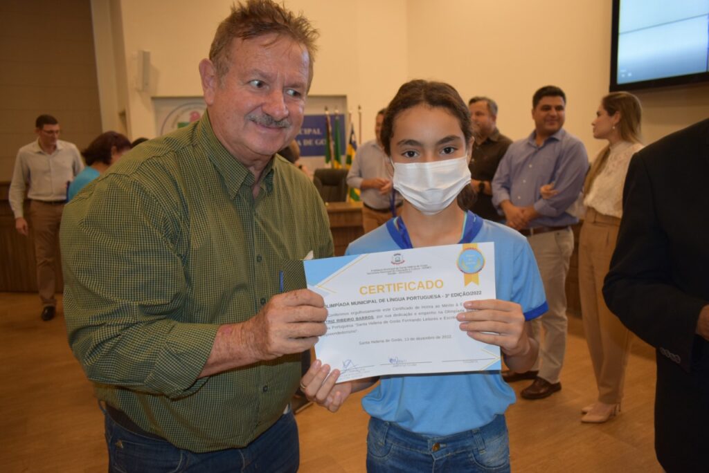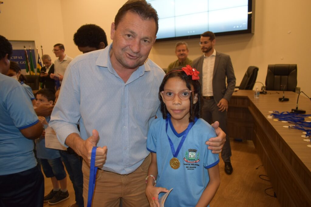 Prefeitura Municipal de Santa Helena de Goiás através da Secretaria Municipal de Educação entrega premiação aos estudantes premiados pela Olimpíada Municipal de língua Portuguesa. Em um universo de mais de 3.500 alunos na rede municipal de ensino, mais de 200 foram classificados e chegou o grande dia da premiação que vai de bicicleta, cama elástica, viagens a Caldas Novas e viagens a Praia com acompanhante e muito mais, vale ressaltar que o professor do aluno também recebe prêmios e a maioria recebeu um celular cada. Prefeito Dr. João Alberto, 1ª dama Dra. Renata Asmar Rodrigues, vice-prefeito Dr. Agenor Bezerra de Queiroz, secretário da educação Esteverson, vereadores Aduil Junior, Francisco Dantas e Silvio Marques, além de toda a equipe da educação, participaram do evento que aliás foi muito bem organizado.