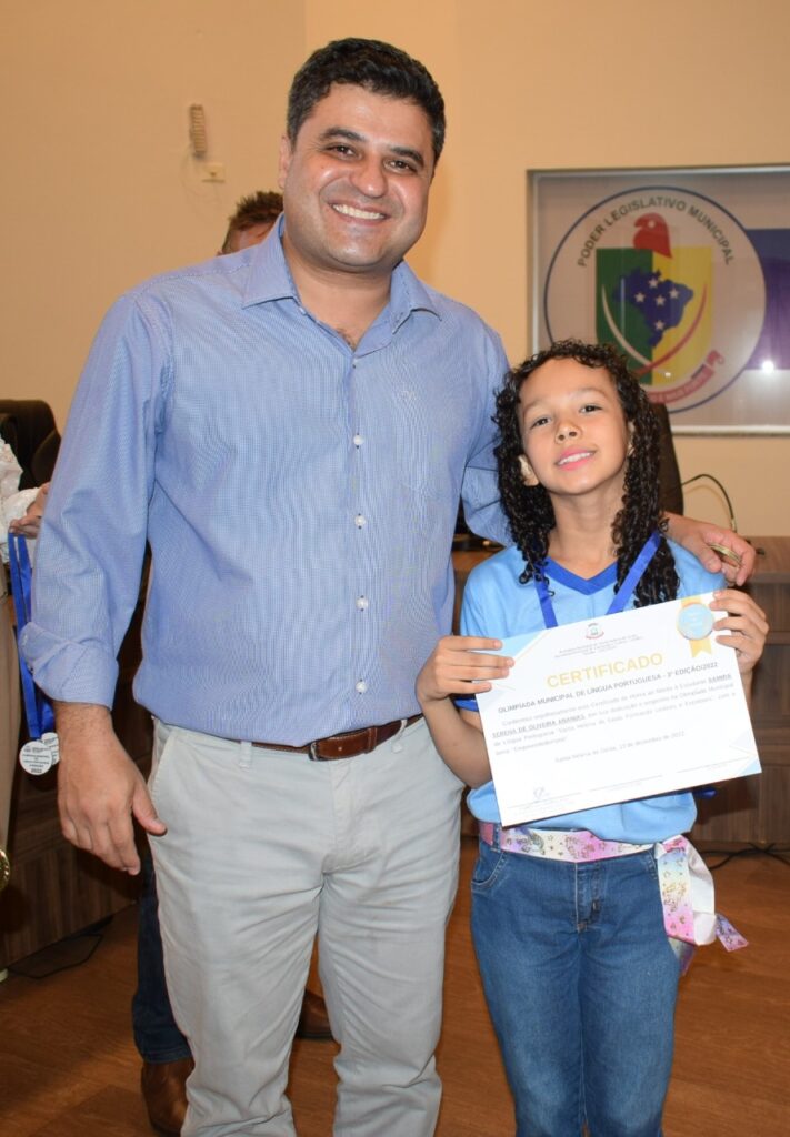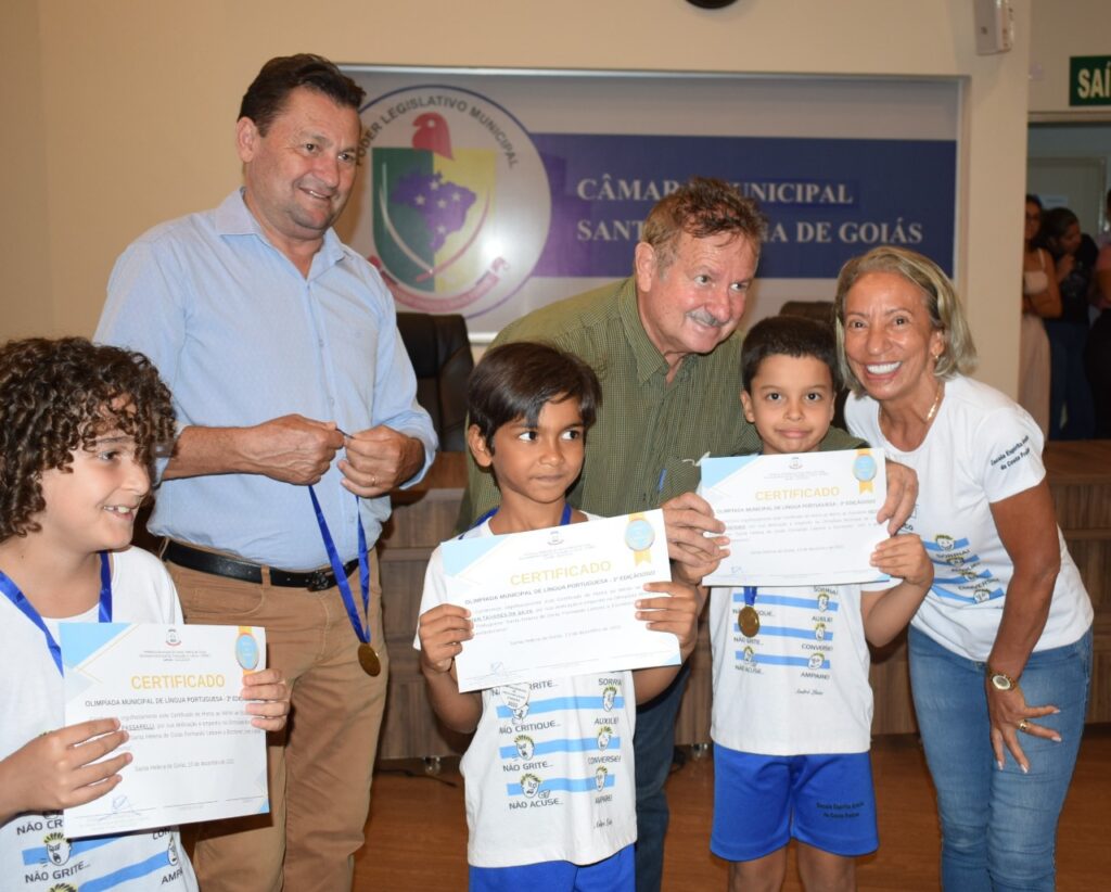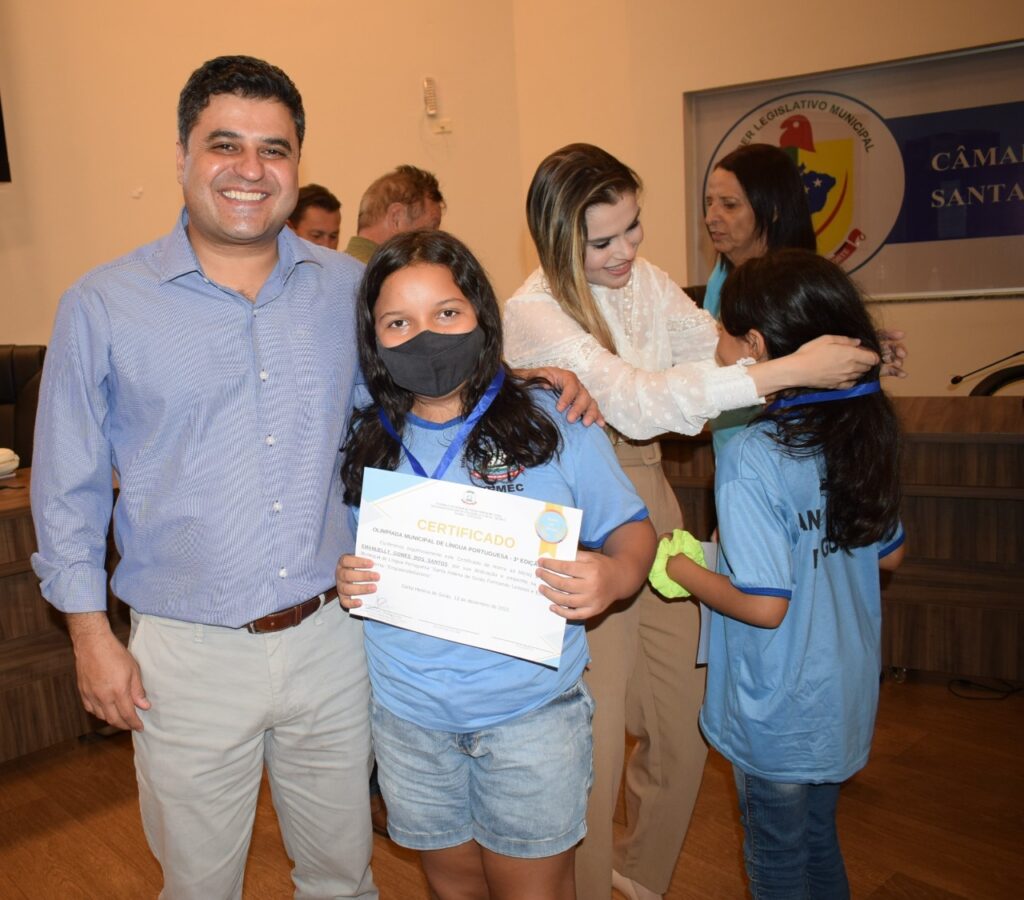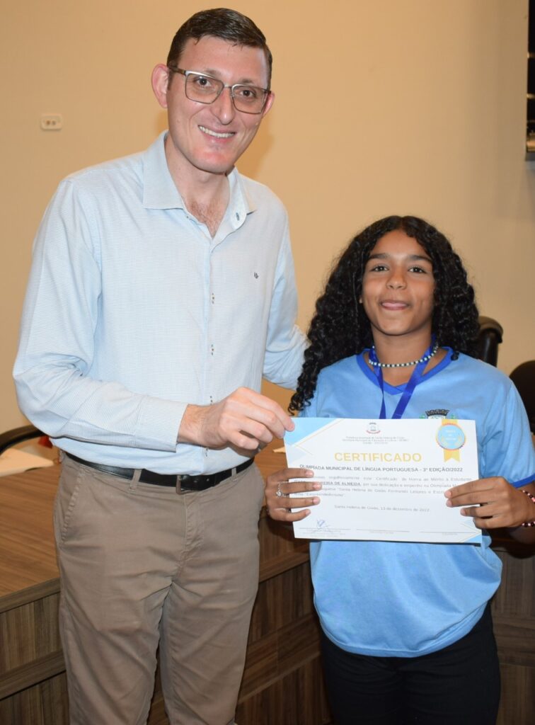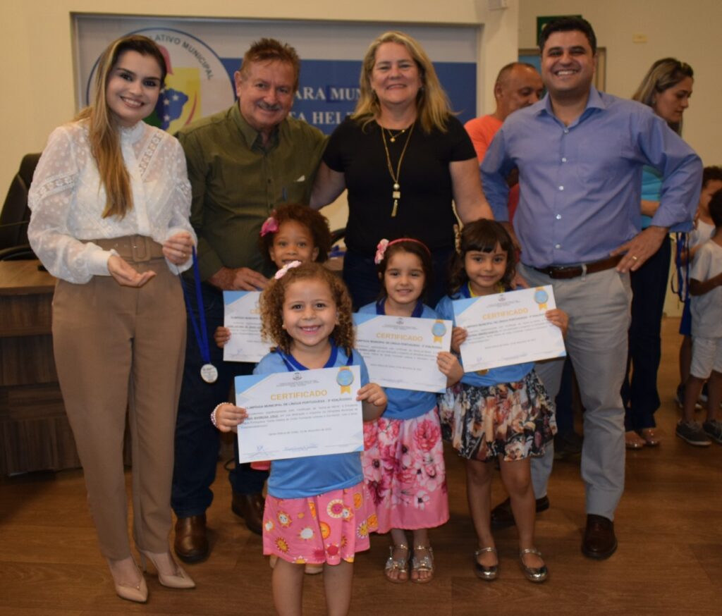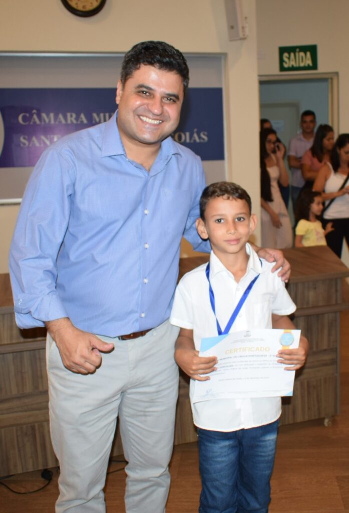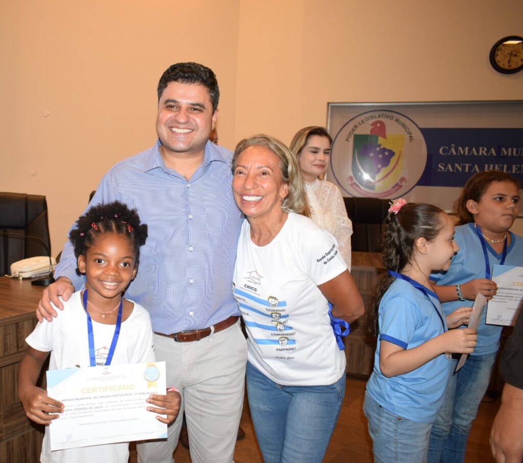 Prefeitura Municipal de Santa Helena de Goiás através da Secretaria Municipal de Educação entrega premiação aos estudantes premiados pela Olimpíada Municipal de língua Portuguesa. Em um universo de mais de 3.500 alunos na rede municipal de ensino, mais de 200 foram classificados e chegou o grande dia da premiação que vai de bicicleta, cama elástica, viagens a Caldas Novas e viagens a Praia com acompanhante e muito mais, vale ressaltar que o professor do aluno também recebe prêmios e a maioria recebeu um celular cada. Prefeito Dr. João Alberto, 1ª dama Dra. Renata Asmar Rodrigues, vice-prefeito Dr. Agenor Bezerra de Queiroz, secretário da educação Esteverson, vereadores Aduil Junior, Francisco Dantas e Silvio Marques, além de toda a equipe da educação, participaram do evento que aliás foi muito bem organizado.