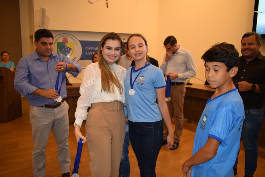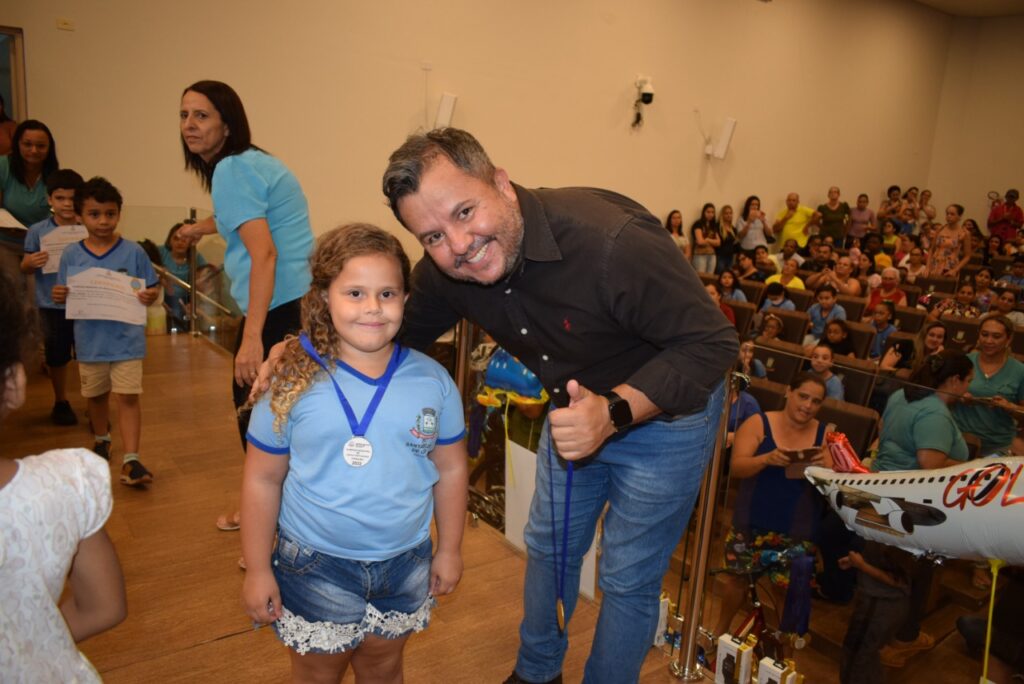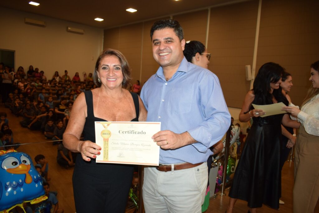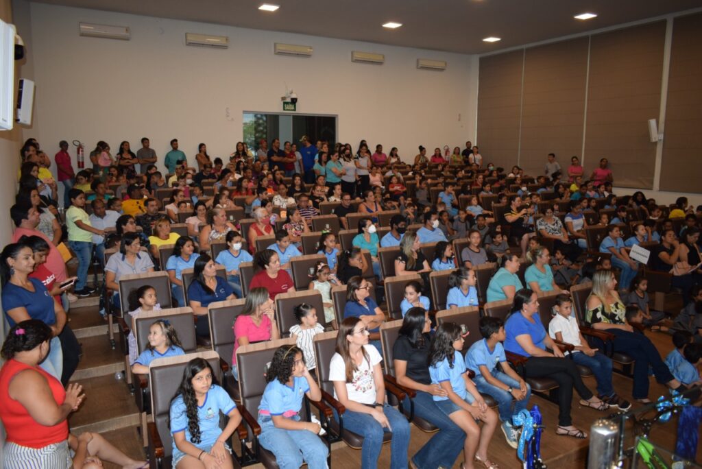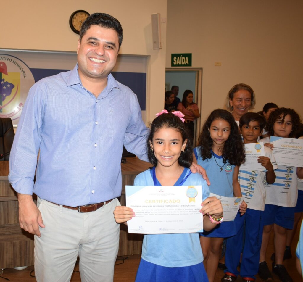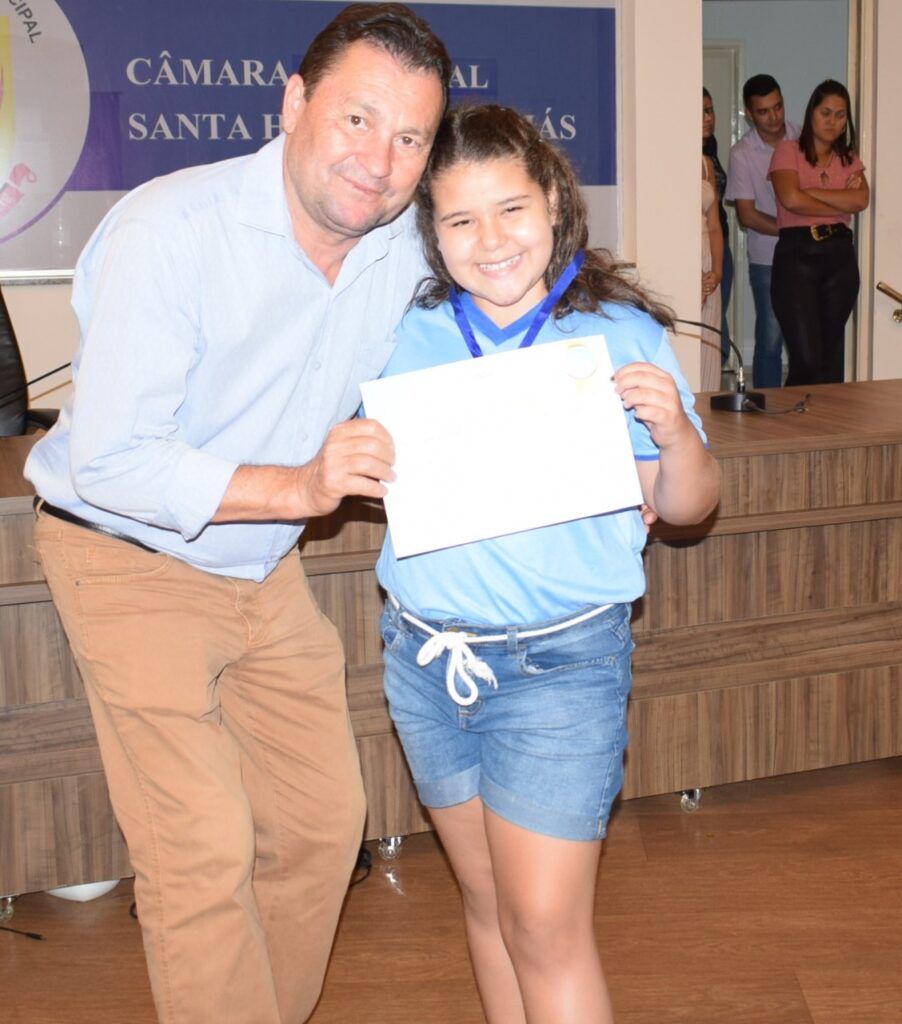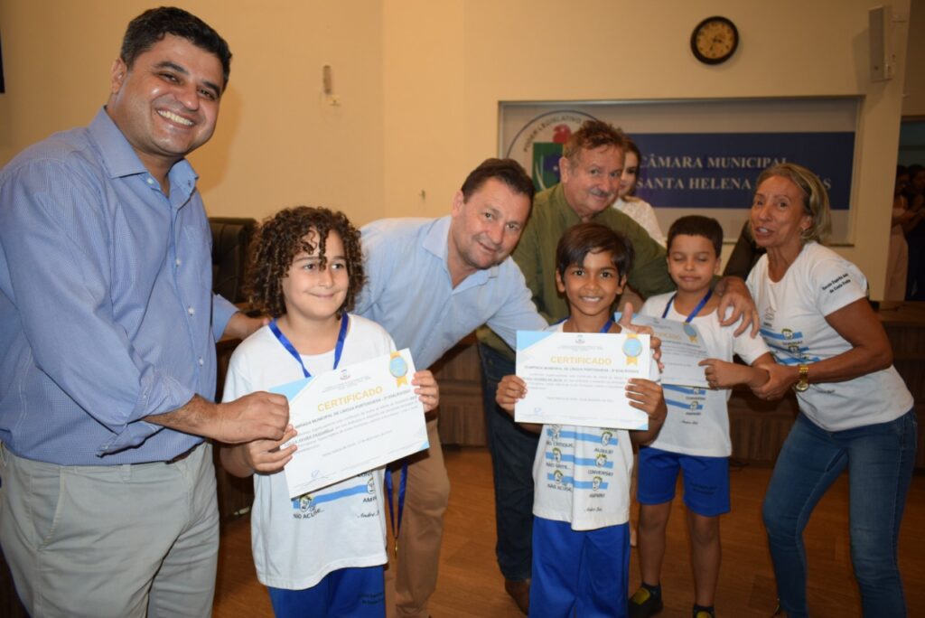 Prefeitura Municipal de Santa Helena de Goiás através da Secretaria Municipal de Educação entrega premiação aos estudantes premiados pela Olimpíada Municipal de língua Portuguesa. Em um universo de mais de 3.500 alunos na rede municipal de ensino, mais de 200 foram classificados e chegou o grande dia da premiação que vai de bicicleta, cama elástica, viagens a Caldas Novas e viagens a Praia com acompanhante e muito mais, vale ressaltar que o professor do aluno também recebe prêmios e a maioria recebeu um celular cada. Prefeito Dr. João Alberto, 1ª dama Dra. Renata Asmar Rodrigues, vice-prefeito Dr. Agenor Bezerra de Queiroz, secretário da educação Esteverson, vereadores Aduil Junior, Francisco Dantas e Silvio Marques, além de toda a equipe da educação, participaram do evento que aliás foi muito bem organizado.