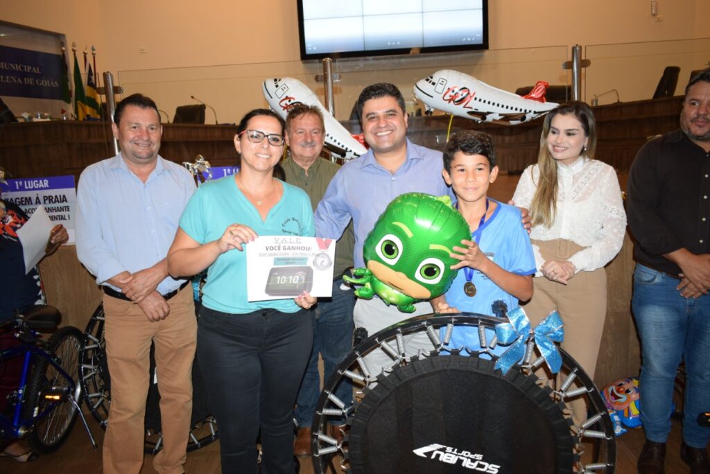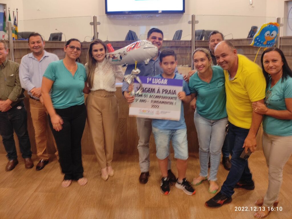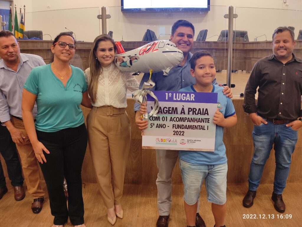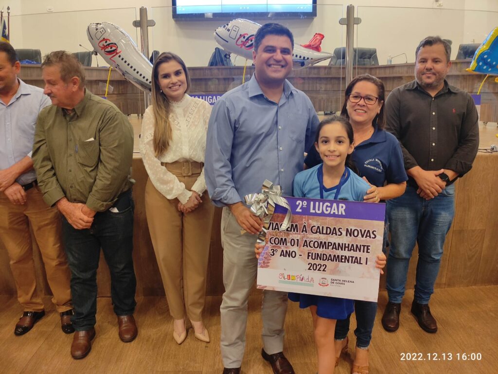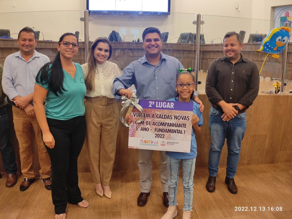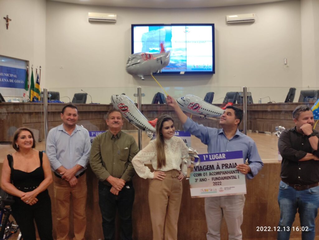 1º Lugar o aluno Davi Luiz Almeida Franco da Escola Alcides Rodrigues, ganhou uma viagem á praia com um acompanhante, e a professora Patrícia Antunes do Nascimento também uma viagem á praia. 2º Lugar a aluna Sara Pirete Fernandes da escola Valeriano II, ganhou uma viagem a Caldas Novas com direito de um acompanhante, e a professora Lucelena Almeida da Silva também uma viagem a Caldas Novas, e o 3º colocado Miguel Victor Oliveira Gonçalves da Escola Paulo Lopes, levou uma bicicleta, e a professora Zilda Garcia de Oliveira um celular.