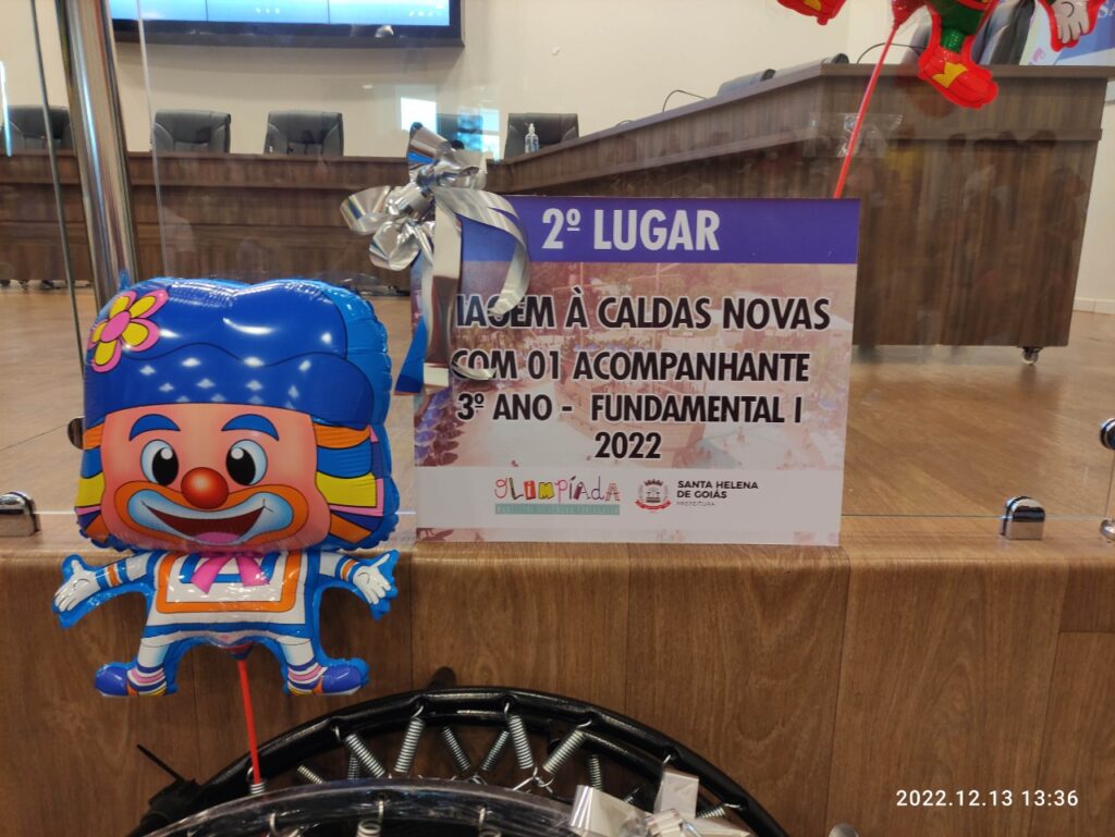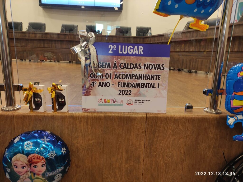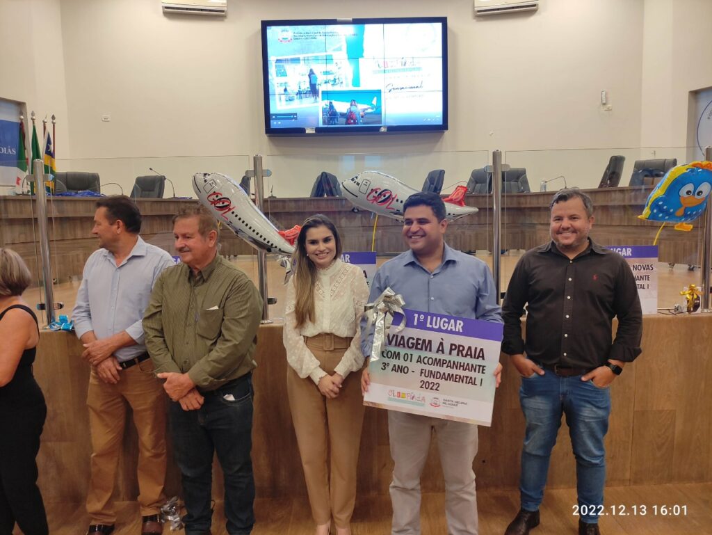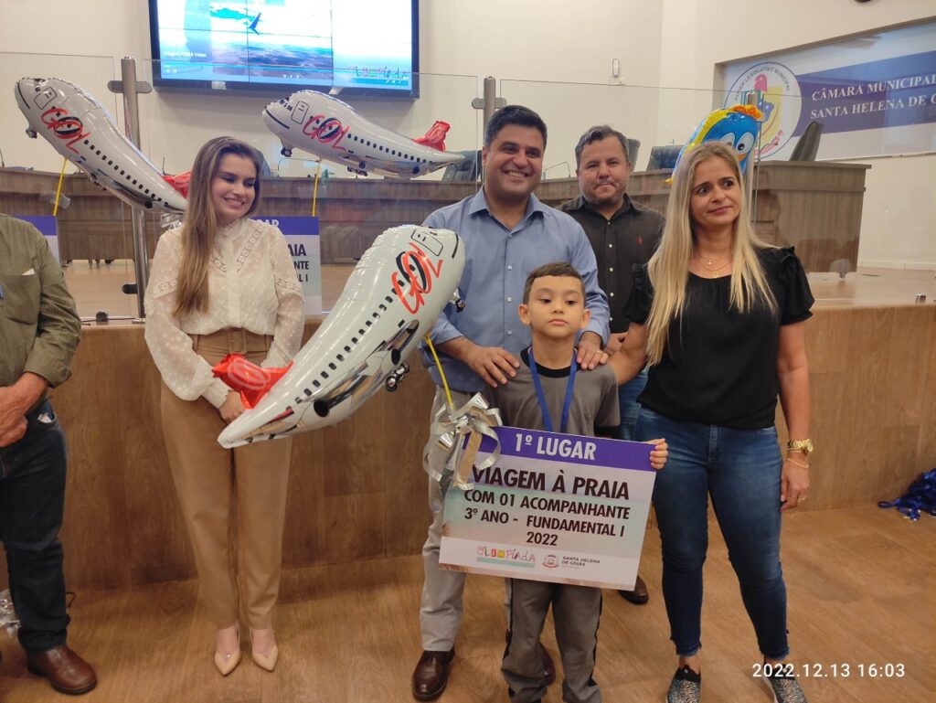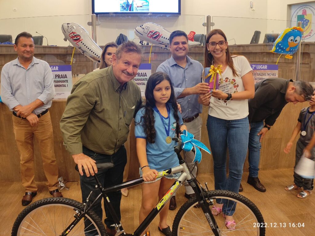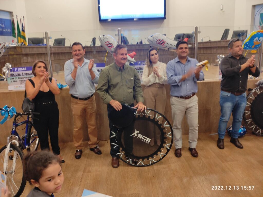 1º Lugar o aluno Davi Luiz Almeida Franco da Escola Alcides Rodrigues, ganhou uma viagem á praia com um acompanhante, e a professora Patrícia Antunes do Nascimento também uma viagem á praia. 2º Lugar a aluna Sara Pirete Fernandes da escola Valeriano II, ganhou uma viagem a Caldas Novas com direito de um acompanhante, e a professora Lucelena Almeida da Silva também uma viagem a Caldas Novas, e o 3º colocado Miguel Victor Oliveira Gonçalves da Escola Paulo Lopes, levou uma bicicleta, e a professora Zilda Garcia de Oliveira um celular.