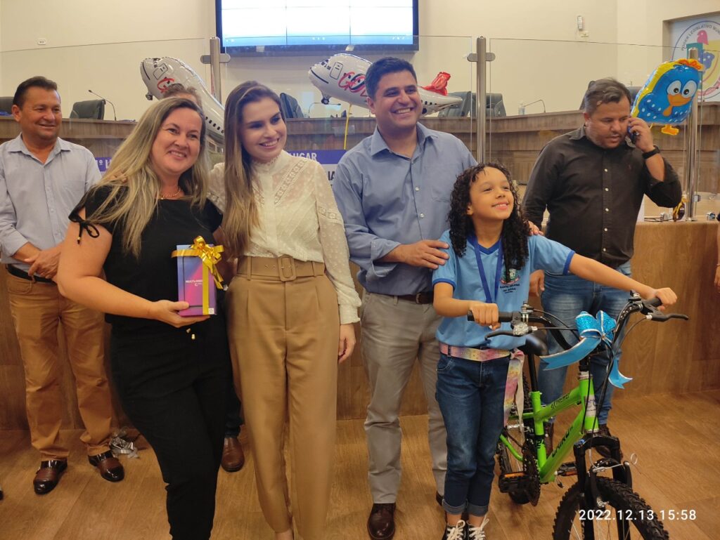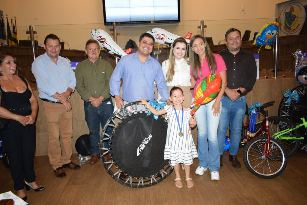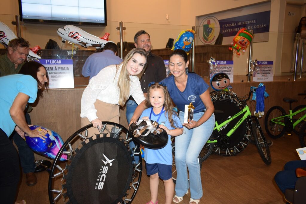 1º Lugar o aluno Isaac Bueno Soares de Oliveira da escola Narcisa ganhou uma bicicleta e a professora Roberta Guerra Soares de Oliveira, um celular. 2º a aluna Mariana Silva Ferreira, da creche Magna Cichini ganhou uma cama elástica, e a professora Larissa Ferreira de Oliveira um Echo Show Alexa, e o 3º colocado foi a aluna Valentina Oliveira Gomes do CENSOAGE, ganhou uma cama elástica, e a professora Deusliene Rodrigues da Silva, uma pulseira inteligente.