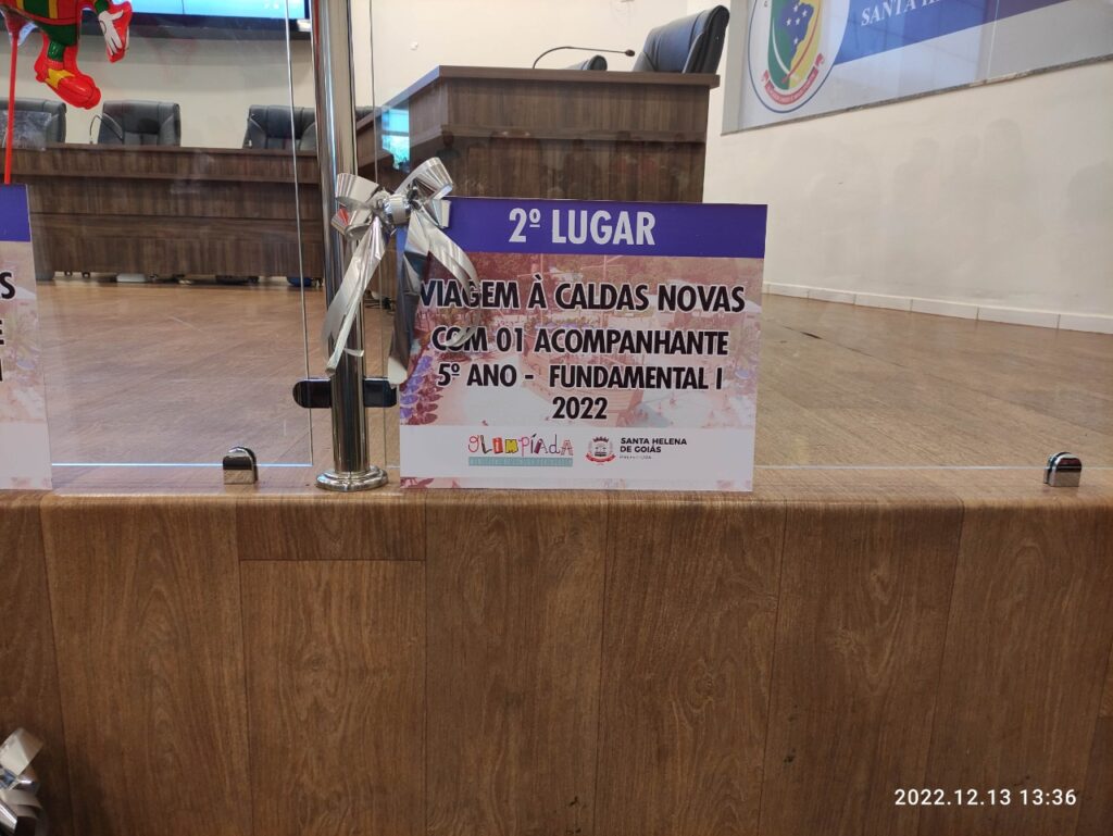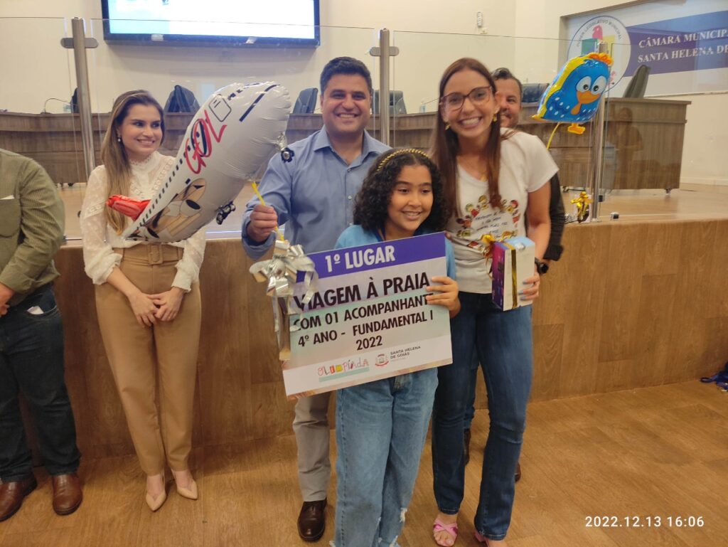1º Lugar a aluna Lidia Lima de Jesus, da escola João Saraiva ganhou uma viagem á praia com um acompanhante, a professora Ana Paula Sampaio de Macedo também uma viagem a praia. 2º lugar a aluna Maria Vitória Silva Miranda, da escola Wilmar Vieira Arantes, ganhou uma viagem a Caldas Novas com acompanhante, e a professora Evânia Gonçalves Andrade também uma viagem a Caldas Novas. 3º Lugar a aluna Ana Júlia Alves de Oliveira, da Escola João Saraiva ganhou uma bicicleta, e a professora Ana Paula Sampaio de Macedo um celular.