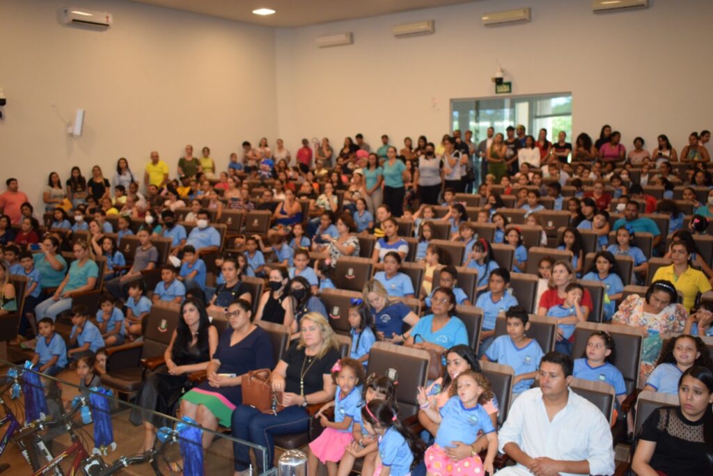 Prefeitura Municipal de Santa Helena de Goiás através da Secretaria Municipal de Educação entrega premiação aos estudantes premiados pela Olimpíada Municipal de língua Portuguesa. Em um universo de mais de 3.500 alunos na rede municipal de ensino, mais de 200 foram classificados e chegou o grande dia da premiação que vai de bicicleta, cama elástica, viagens a Caldas Novas e viagens a Praia com acompanhante e muito mais, vale ressaltar que o professor do aluno também recebe prêmios e a maioria recebeu um celular cada. Prefeito Dr. João Alberto, 1ª dama Dra. Renata Asmar Rodrigues, vice-prefeito Dr. Agenor Bezerra de Queiroz, secretário da educação Esteverson, vereadores Aduil Junior, Francisco Dantas e Silvio Marques, além de toda a equipe da educação, participaram do evento que aliás foi muito bem organizado.