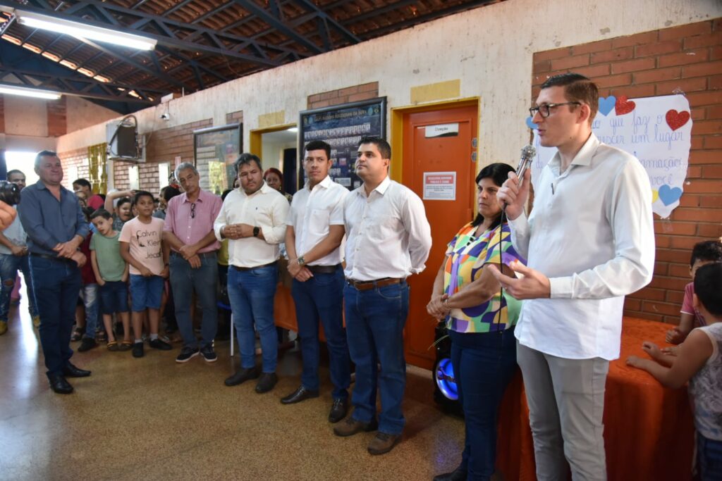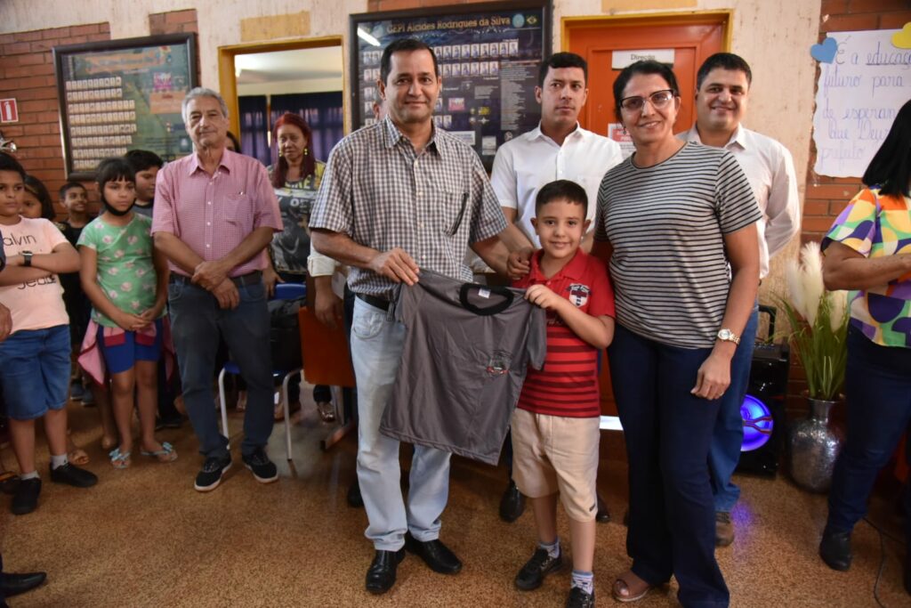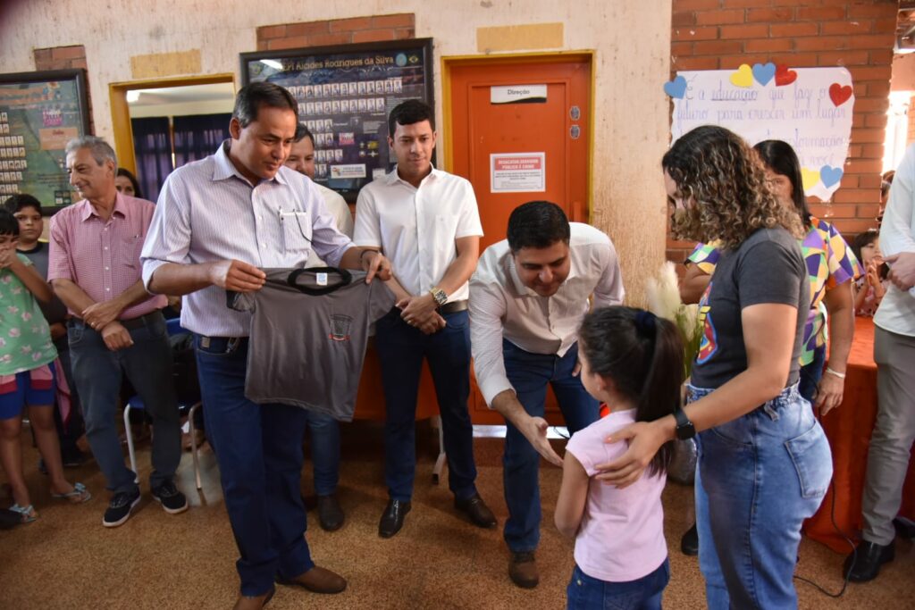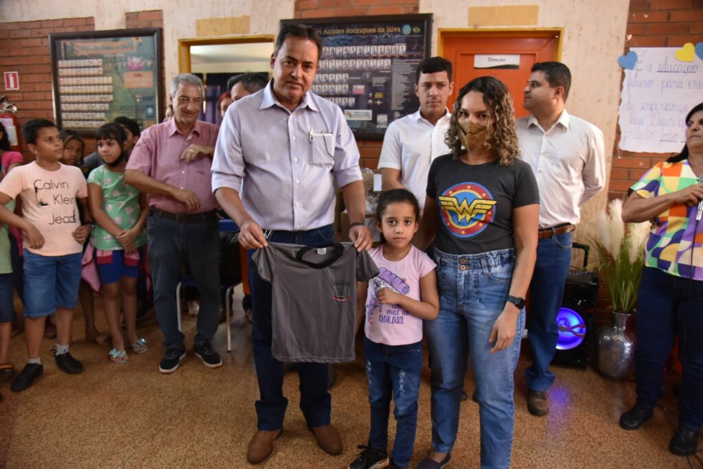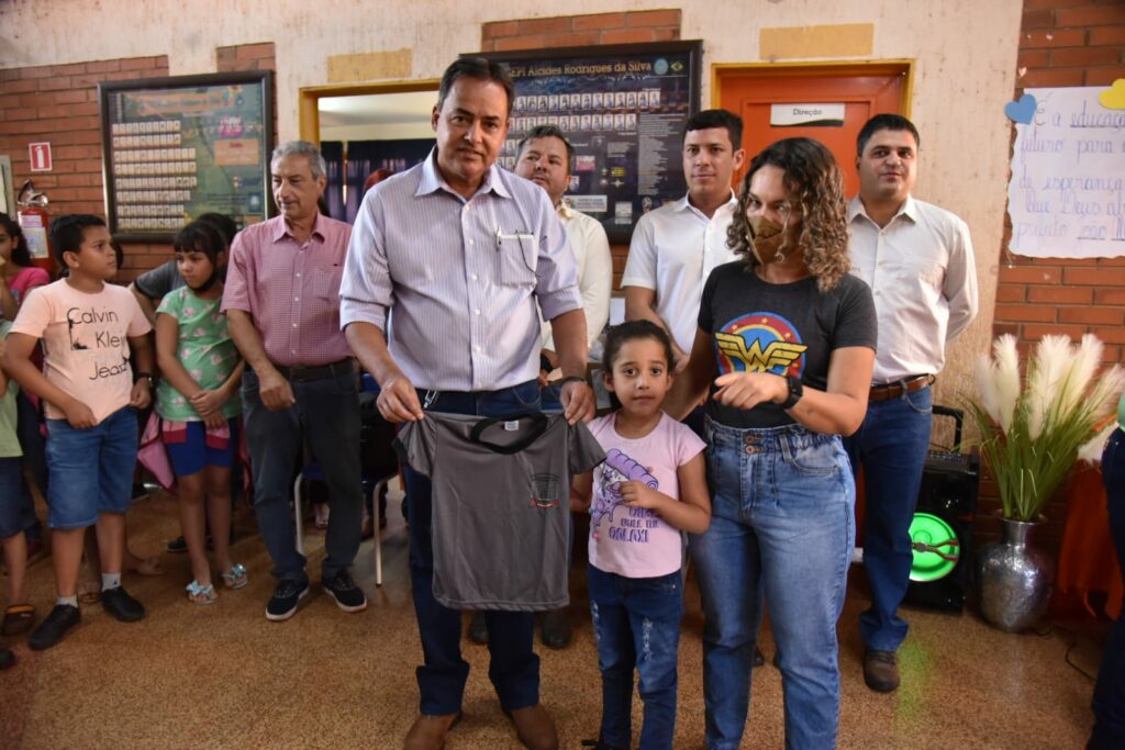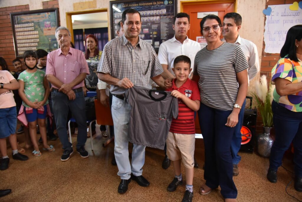 O Prefeito Municipal Dr.João Alberto Vieira Rodrigues, ressaltou a grande importância que é a identificação de cada aluno, para que eles se sintam orgulhosos em vestir os uniformes da Educação de Santa Helena, que tem se tornado referência para todos no Estado de Goiás, lembrou também que os esforços para uma educação cada dia mais digna têm sido a bandeira dessa gestão.