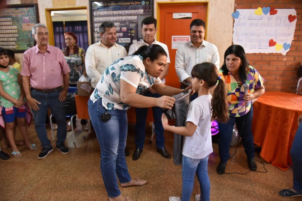 Segundo o Secretário Municipal de Educação Professor Esteverson essa entrega de uniformes será feita para os 400 alunos dessa unidade de ensino, que em breve todas as unidades escolares também receberão, totalizando quase 6 mil uniformes para a rede municipal.