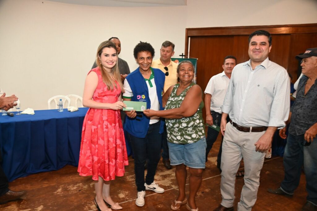 Aconteceu nesta quinta-feira (17), a entrega dos cartões sociais do Programa Mães de Goiás e Dignidade, realizada no auditório da UEG. O evento contou com a participação do prefeito João Alberto, da secretária de Promoção Social e primeira dama Renata Araújo Asmar Rodrigues, do vice-prefeito Agenor Bezerra, vereadores e beneficiários dos programas sociais.