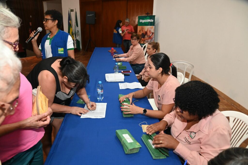 Foram realizadas a entrega dos cartões a todos beneficiários presentes, selecionados pelo Governo de Goiás, através do registro do CAD Único. O Programa Mães de Goiás é direcionado a mulheres em vulnerabilidade social com filhos de até 6 anos de idade, enquanto o Programa Dignidade beneficia pessoas de 60 a 64 anos.
