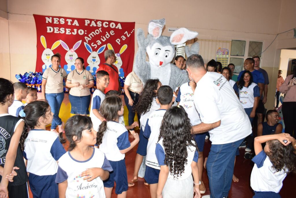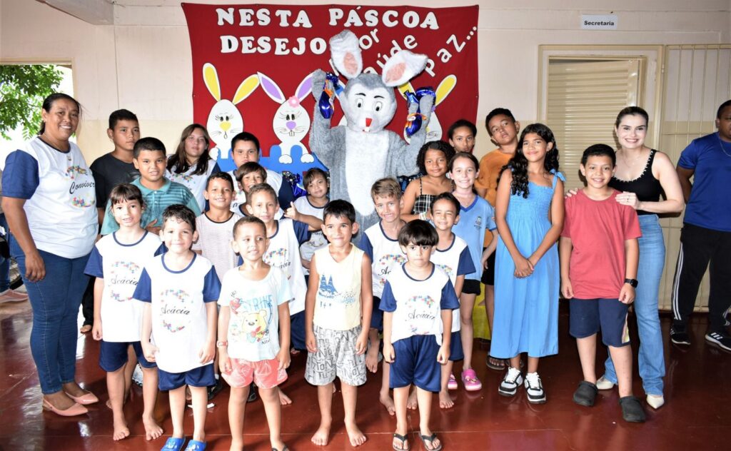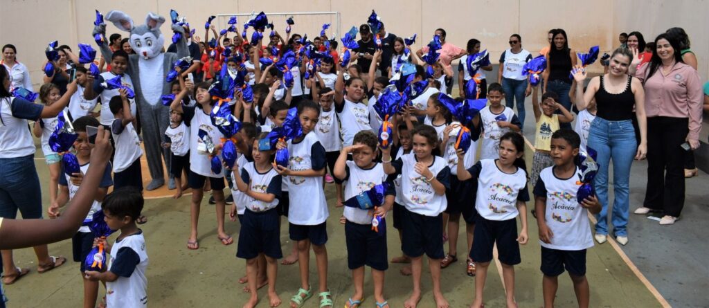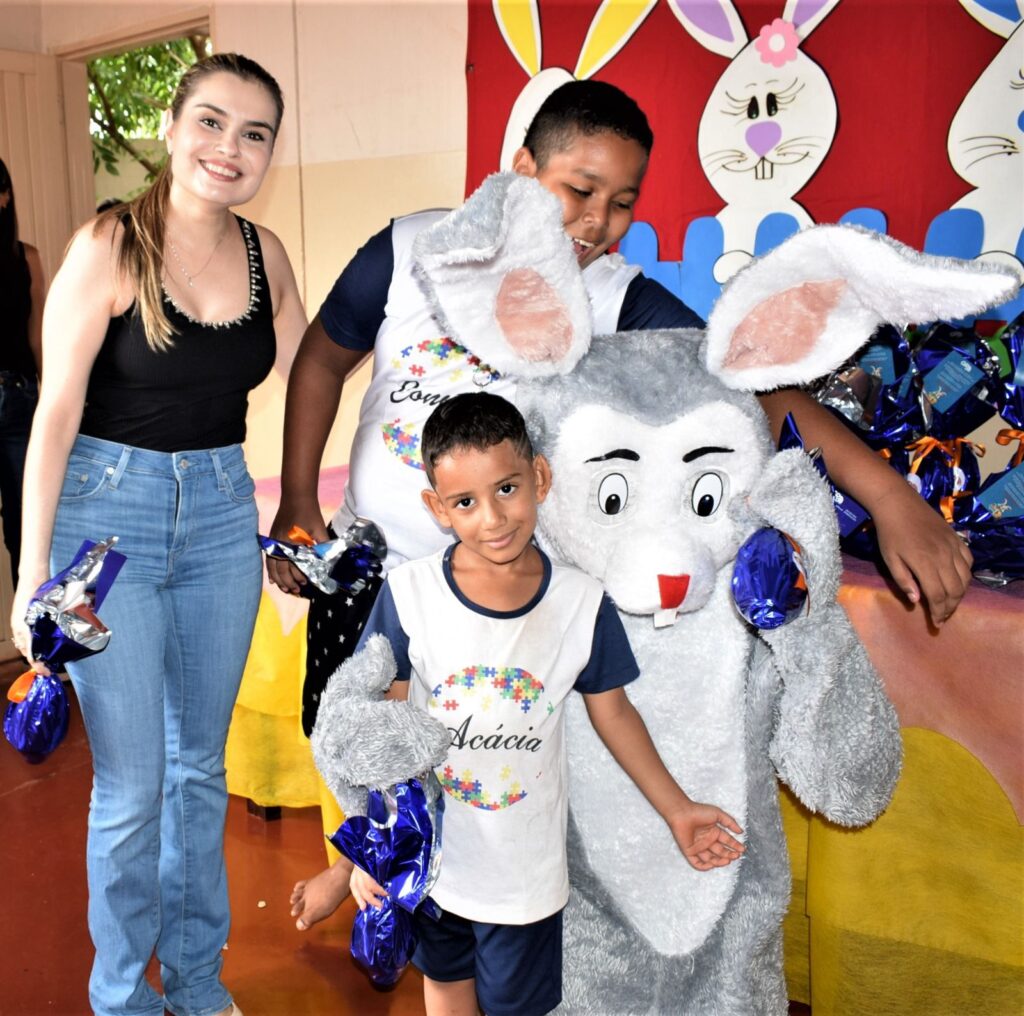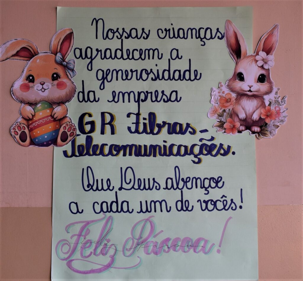 A Secretaria de Promoção Social, em parceria com a empresa de fibra óptica GR Fibra, promoveu uma grande celebração em comemoração à Páscoa, com a chegada do Coelho da Páscoa. Foi uma manhã animada, com muitas brincadeiras, lanches e, é claro, os tão esperados ovos de chocolate.
