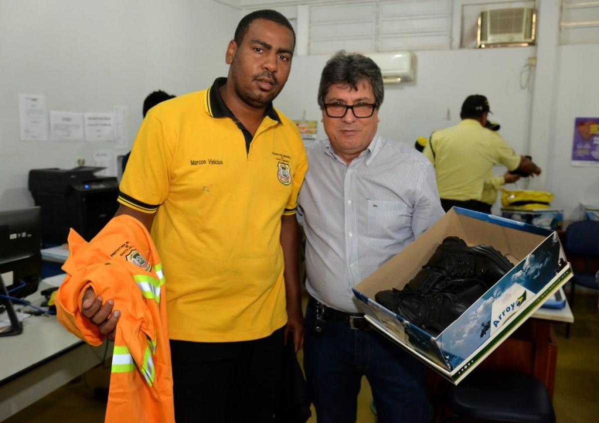 Na manhã de hoje (17), em visita à Secretaria Municipal de Guarda e Trânsito (Segmetran), integrantes da Administração Pública, fizeram a entrega dos uniformes aos servidores dessa secretaria.     O kit é composto de calça e camisa com identificação e com sinalização refletiva e coturno.   A secretaria fica localizada no andar superior da Rodoviária.   Ascom PMSH Jornalista Natalia Martins JP2180 DRT/GO Fotógrafo Manoel Paiva