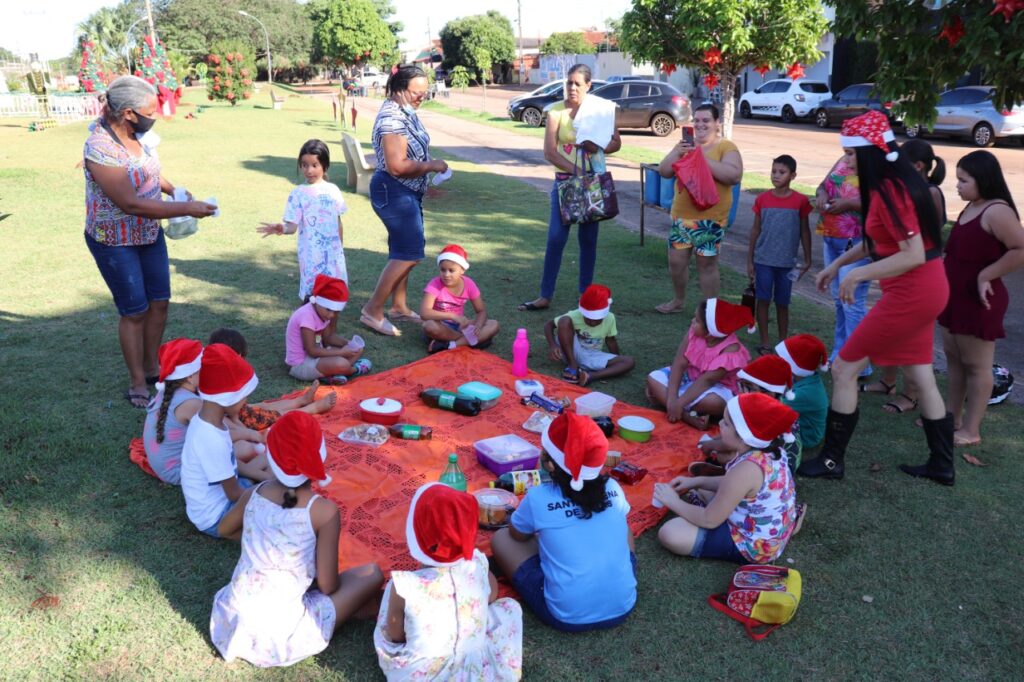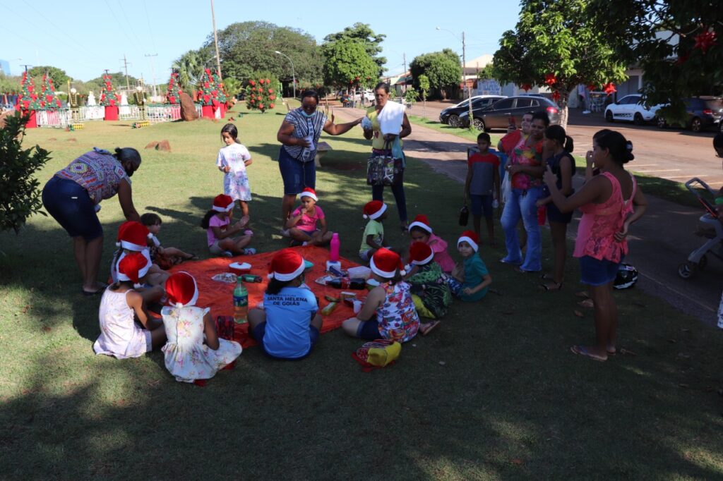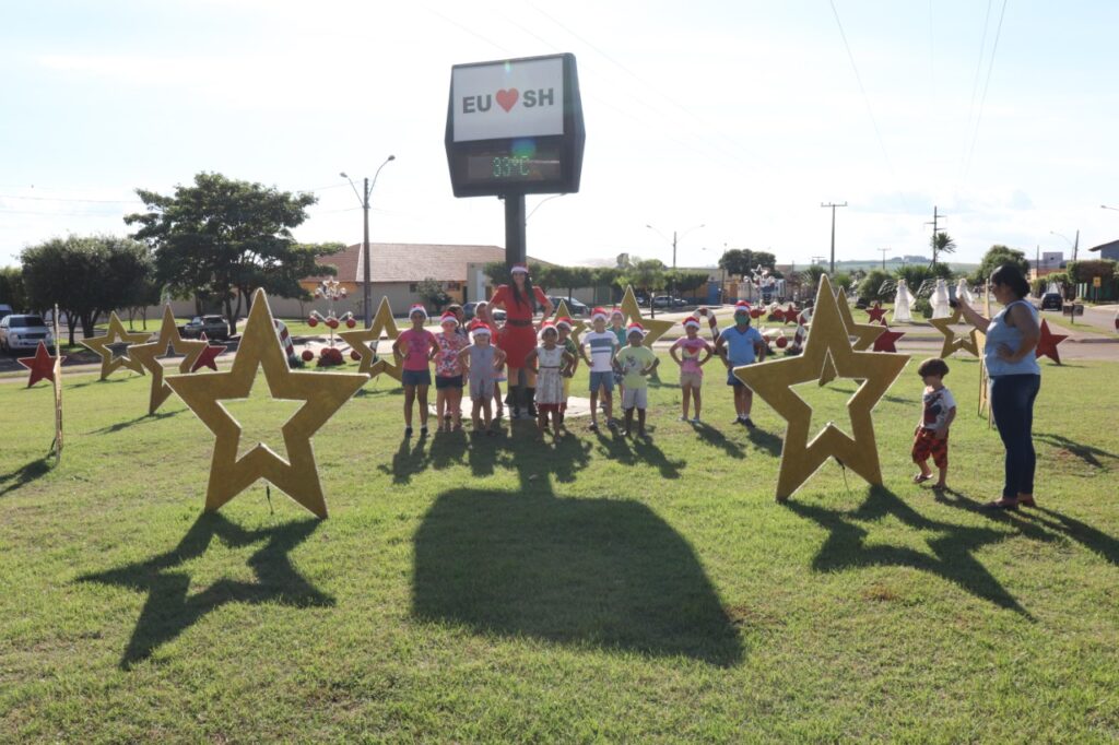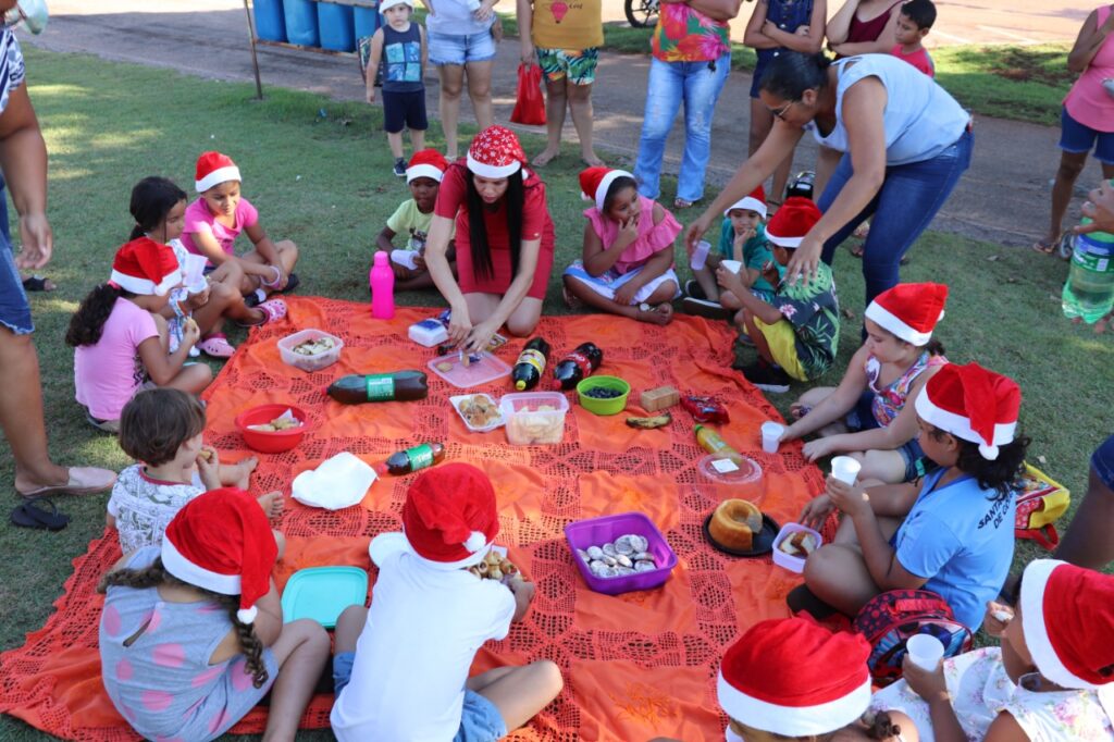 Acompanhado dos pais e Professora, alunos do Jardim II, da Escola Municipal Wilmar Vieira Arantes, participaram de um piquenique, na Pista de Caminhada, aproveitando o lindo cenário natalino.Ascom PMSH Fotos Dione Nascimento