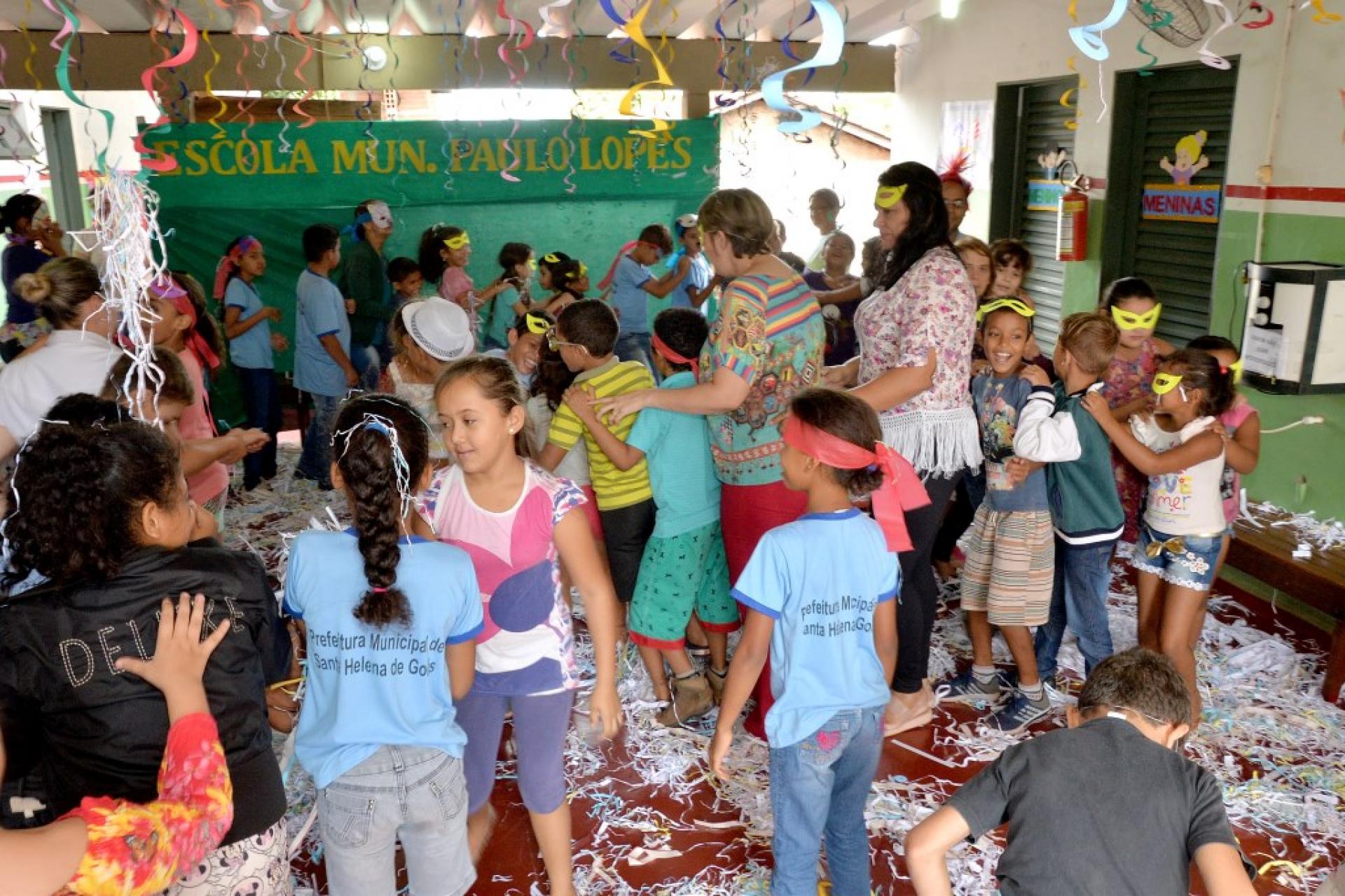 As escolas municipais não deixaram a data passar em branco. Em Santa Helena de Goiás, os professores e alunos da rede municipal de ensino vivenciaram o ambiente dos bailes carnavalescos.