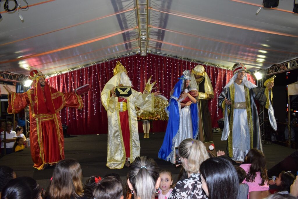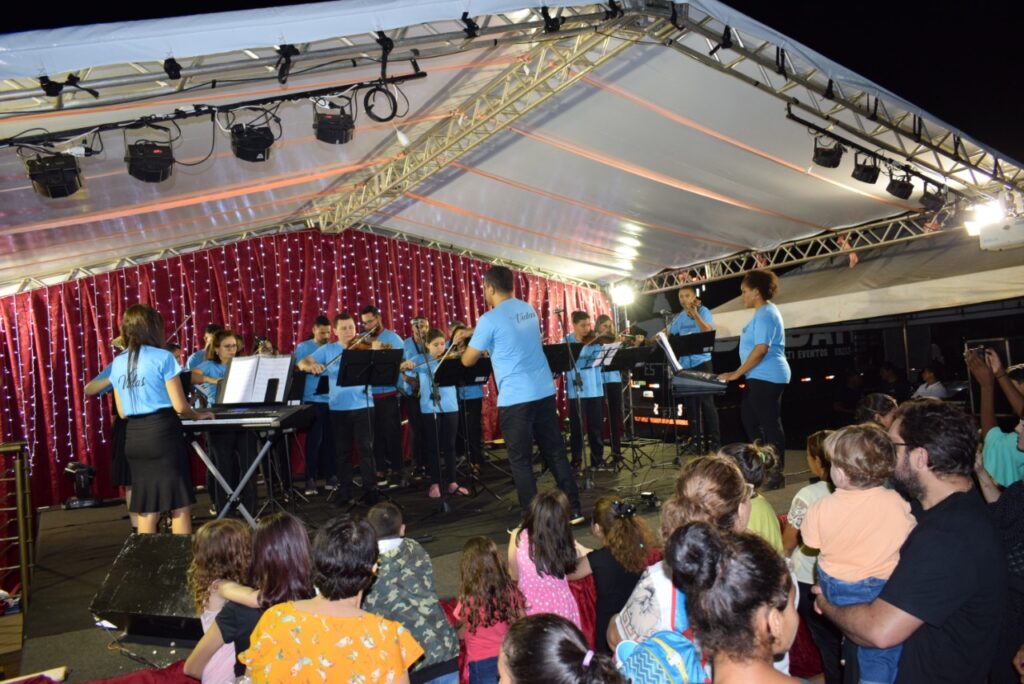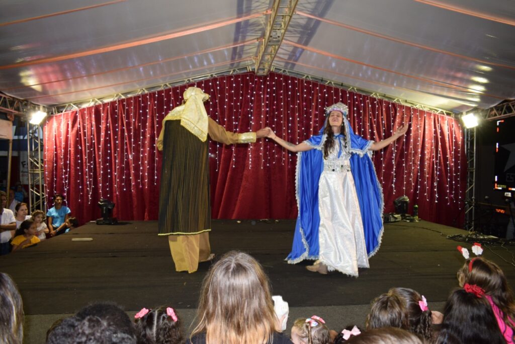 O público participou e aplaudiu o lindo espetáculo. Houve também a entrega de brinquedos para as crianças presente na Praça do Bairro Rodrigues.