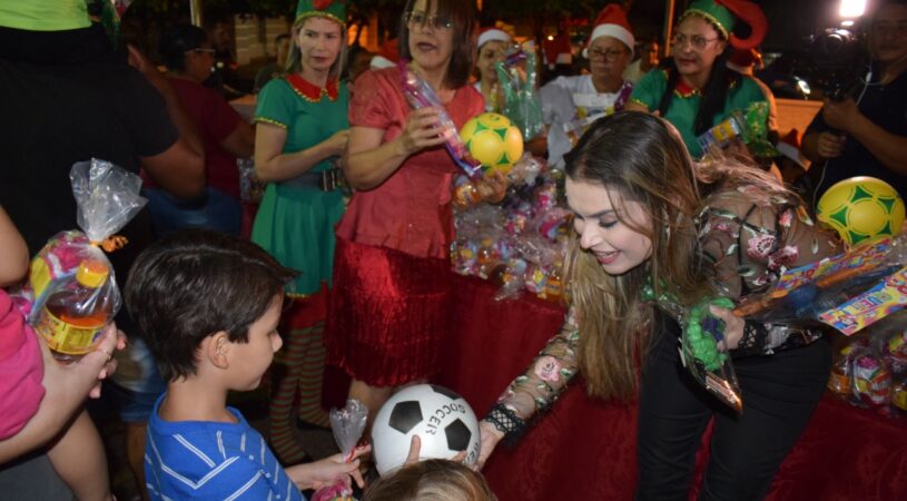 O público participou e aplaudiu o lindo espetáculo. Houve também a entrega de brinquedos para as crianças presente na Praça do Bairro Rodrigues.