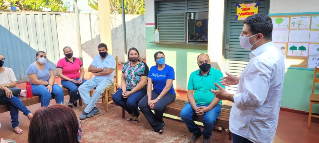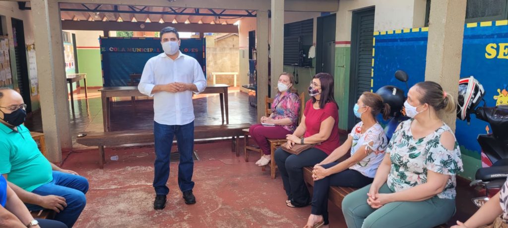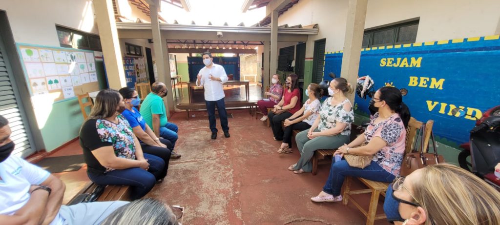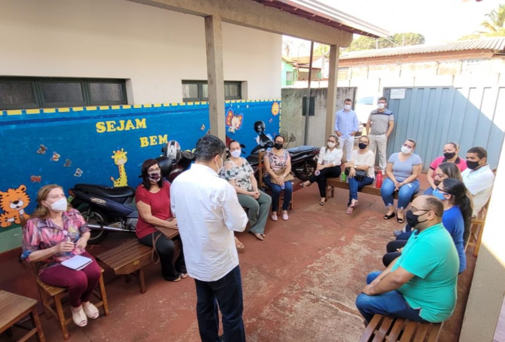 Agora, no turno vespertino, acontece, outro encontro em unidade escolar, entre o Prefeito Municipal de Santa Helena de Goiás, Dr. João Alberto Vieira Rodrigues, Secretária de Educação e Cultura, profa Rosemary Borges, gestor Péricles e professores da Escola Municipal Paulo Lopes