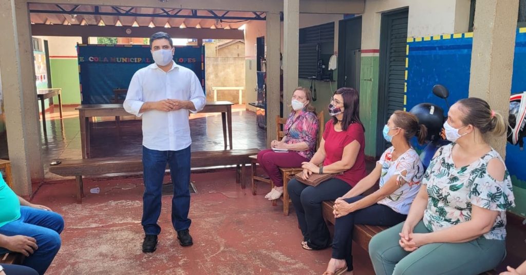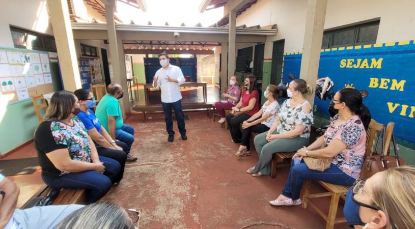 Agora, no turno vespertino, acontece, outro encontro em unidade escolar, entre o Prefeito Municipal de Santa Helena de Goiás, Dr. João Alberto Vieira Rodrigues, Secretária de Educação e Cultura, profa Rosemary Borges, gestor Péricles e professores da Escola Municipal Paulo Lopes