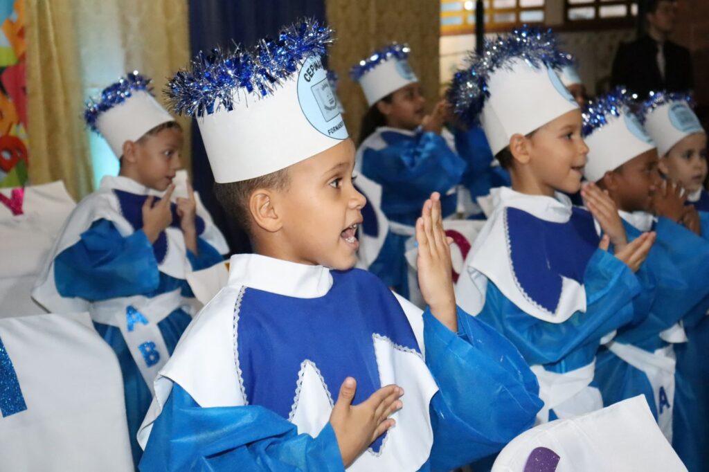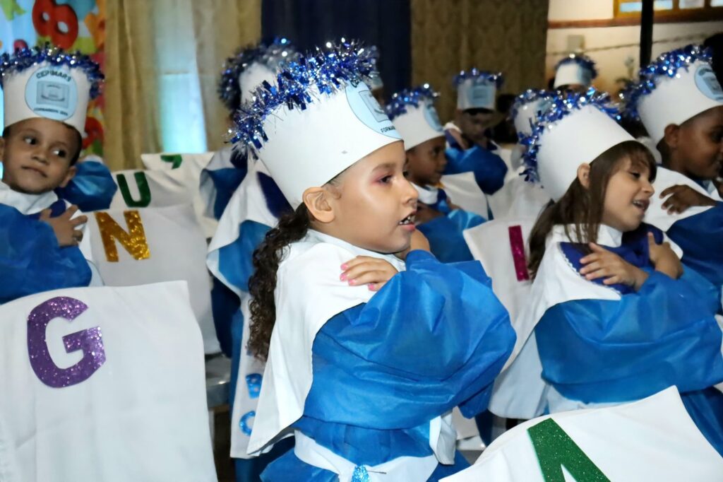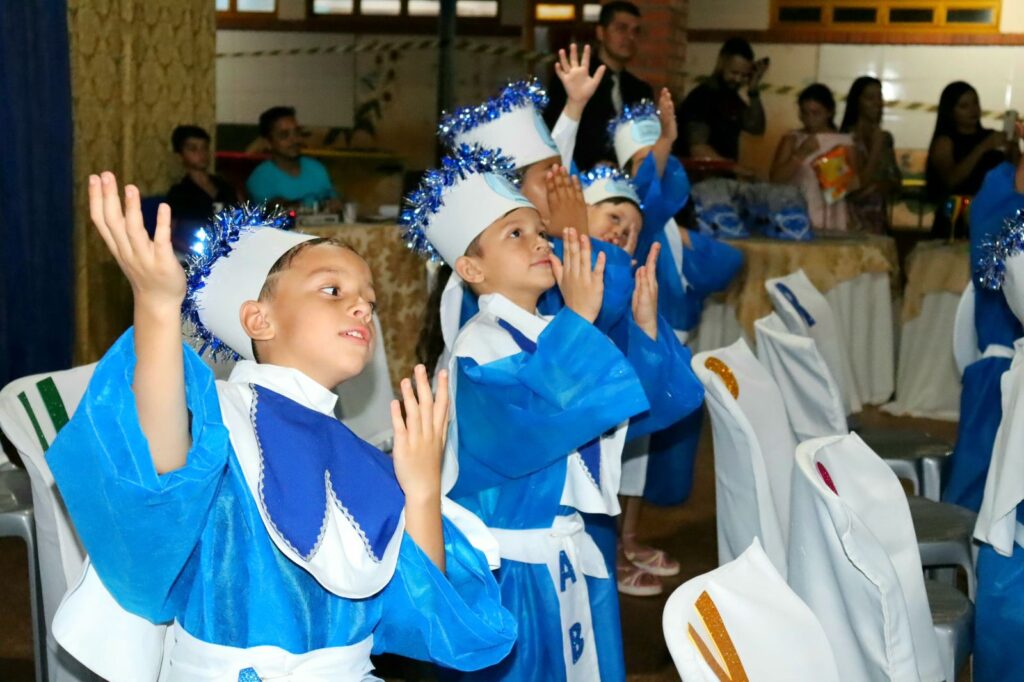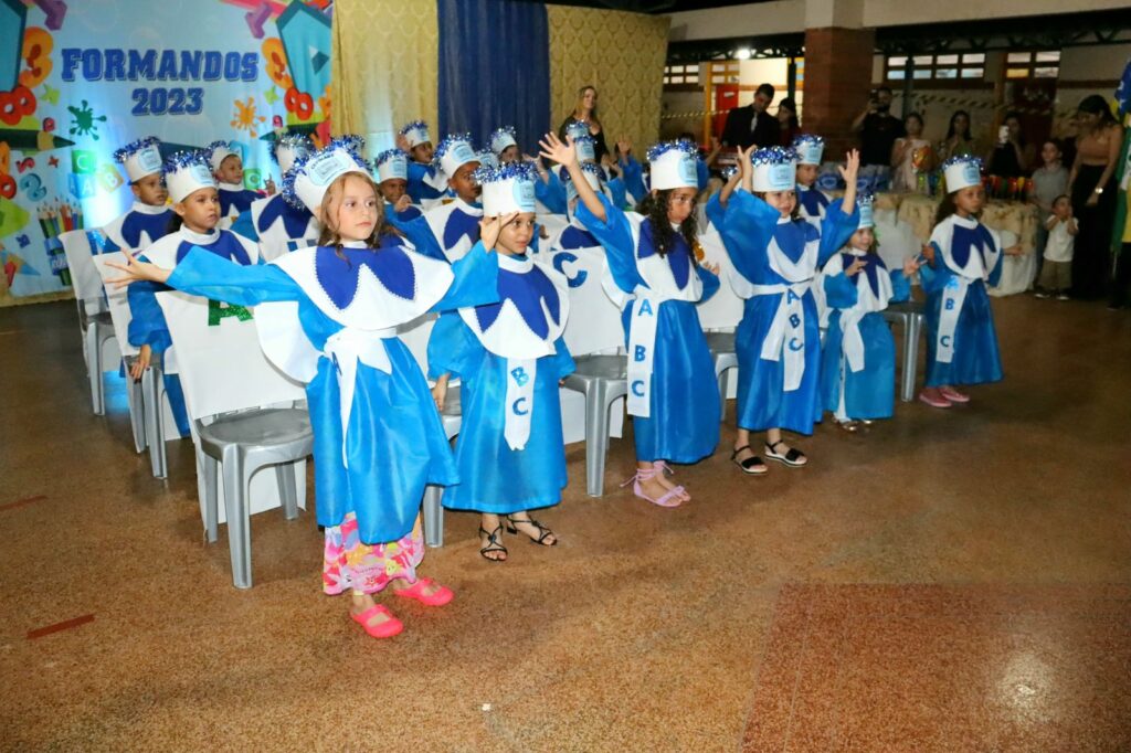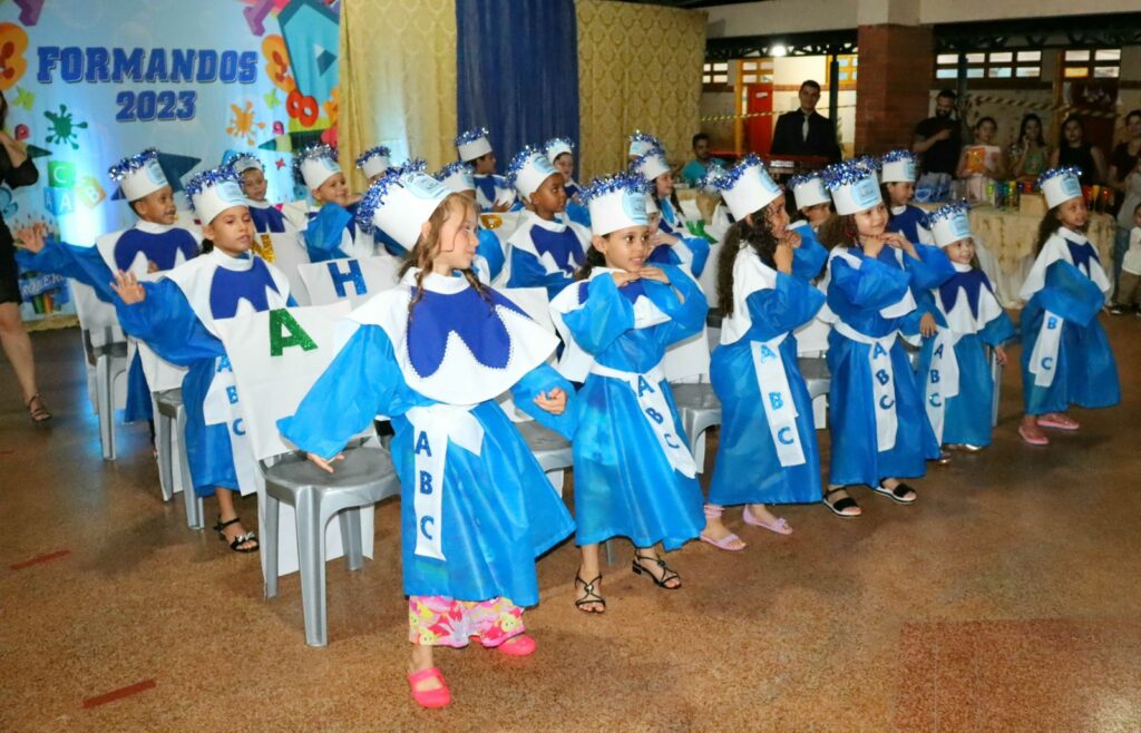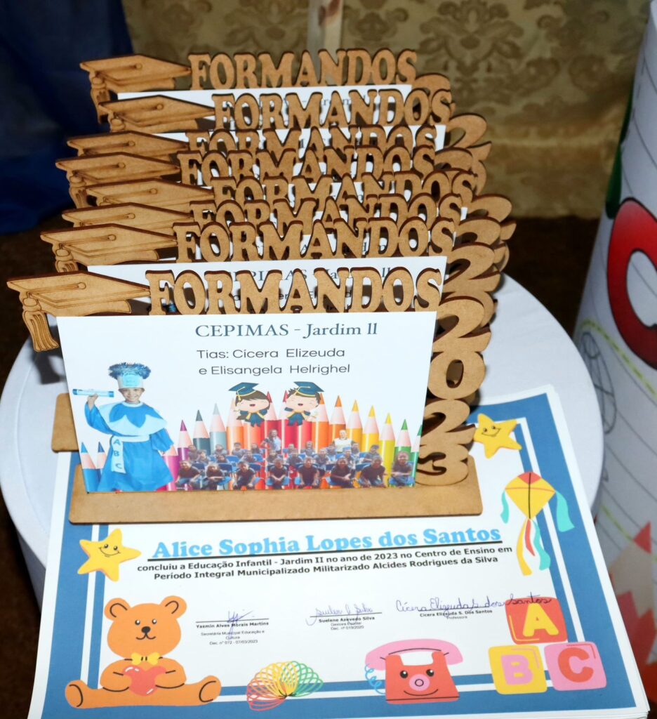 As turmas de alunos do ensino infantil Jardim do Centro de Ensino em Período Integral Municipalizado Militarizado Alcides Rodrigues da Silva, celebram sua formatura em uma noite repleto de emoções.
