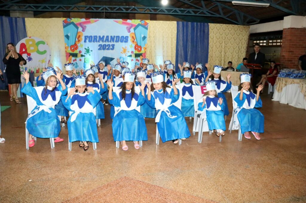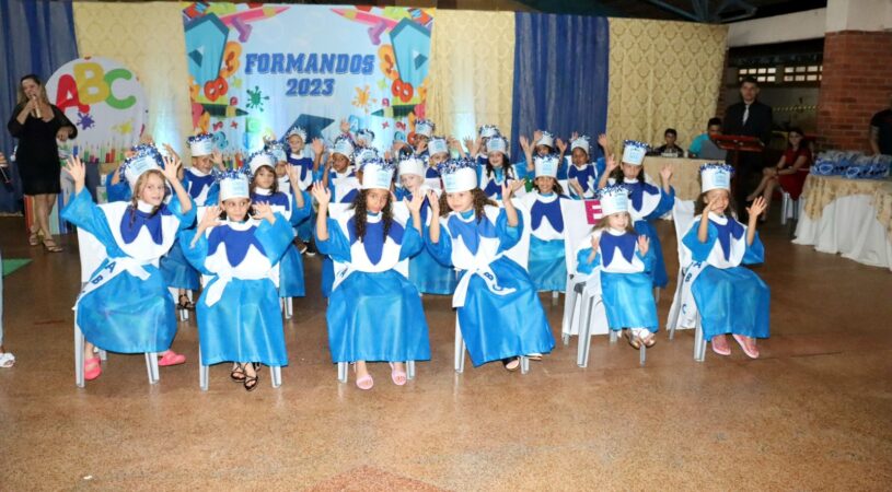 As turmas de alunos do ensino infantil Jardim do Centro de Ensino em Período Integral Municipalizado Militarizado Alcides Rodrigues da Silva, celebram sua formatura em uma noite repleto de emoções.