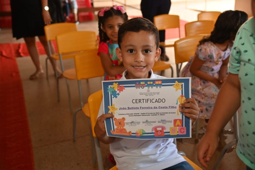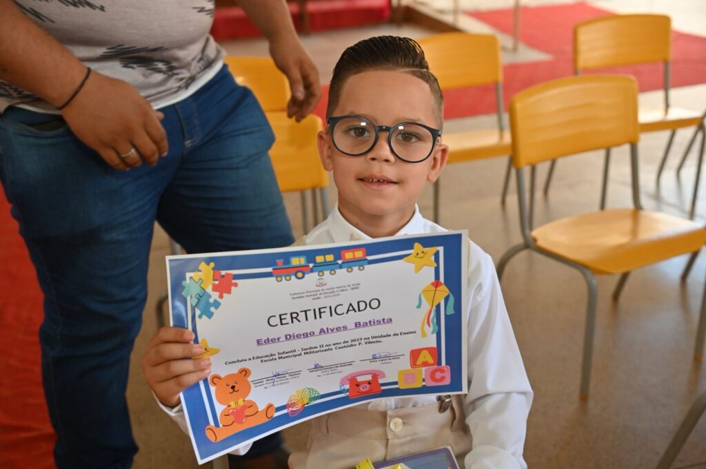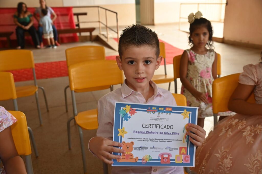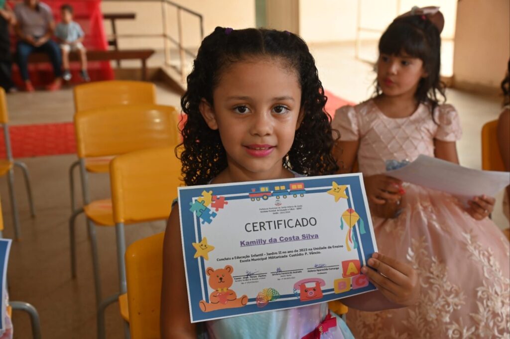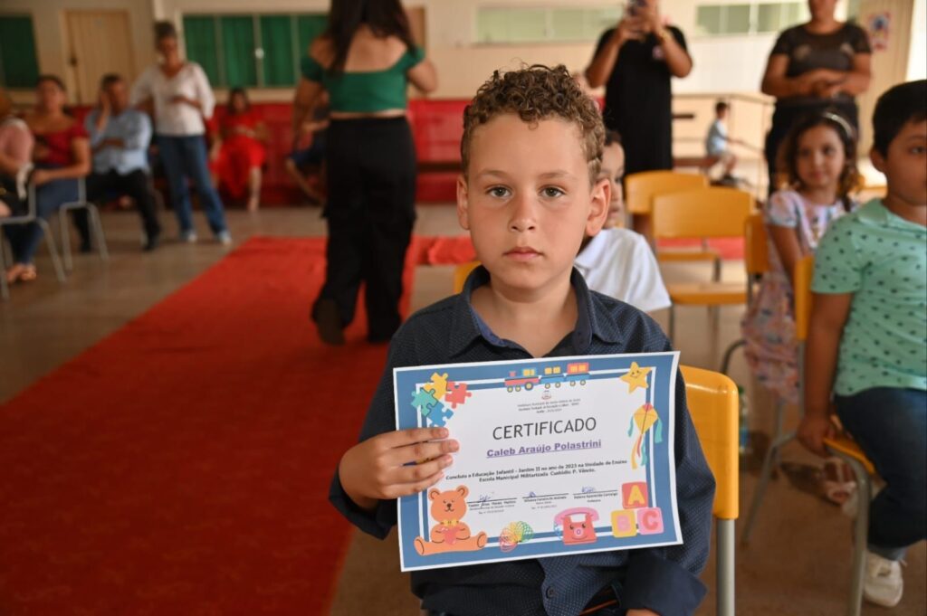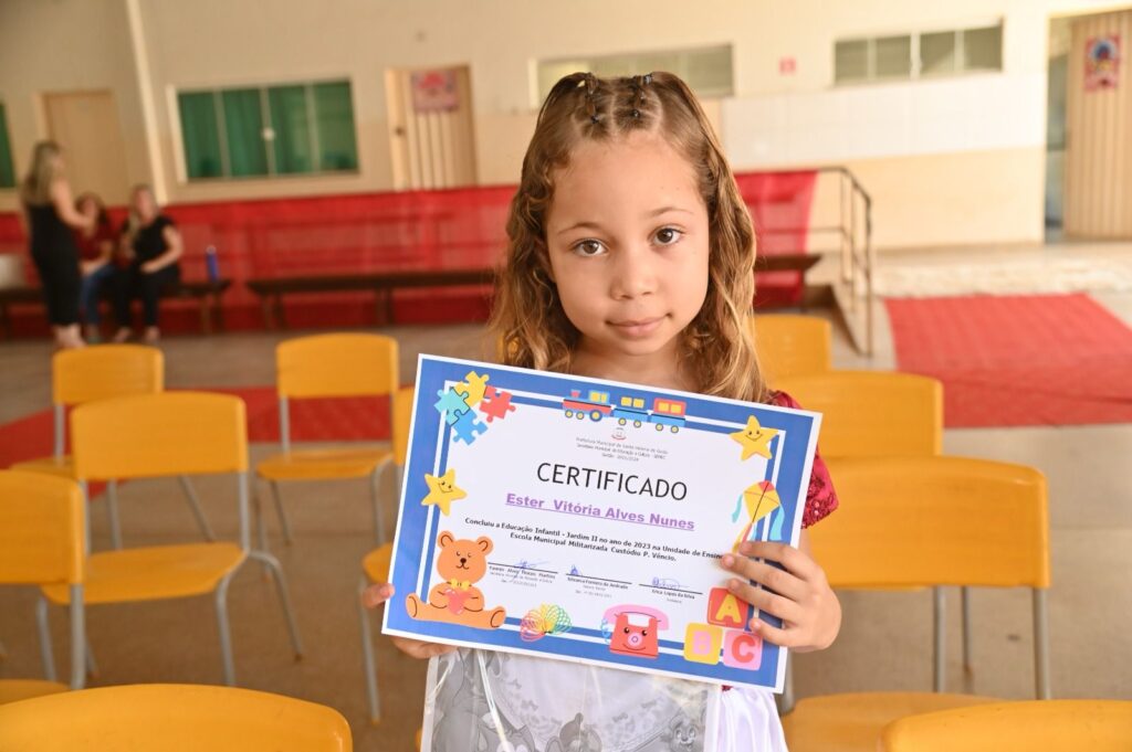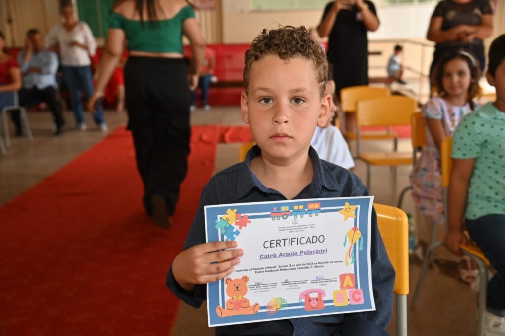 As turmas de formandos do Escola Municipal Militarizada Custódio Vencio brilharam na solenidade de Formatura de 2023. As turmas, com mais de 30 alunos, formandos nos Jardins II A e II B, comemoram mais uma etapa de aprendizado concluída. E, na noite desta terça-feira (12), os mais de 34 alunos do 5º ano A e B, juntamente com seus familiares, celebram a conclusão de mais um ciclo no currículo escolar.
