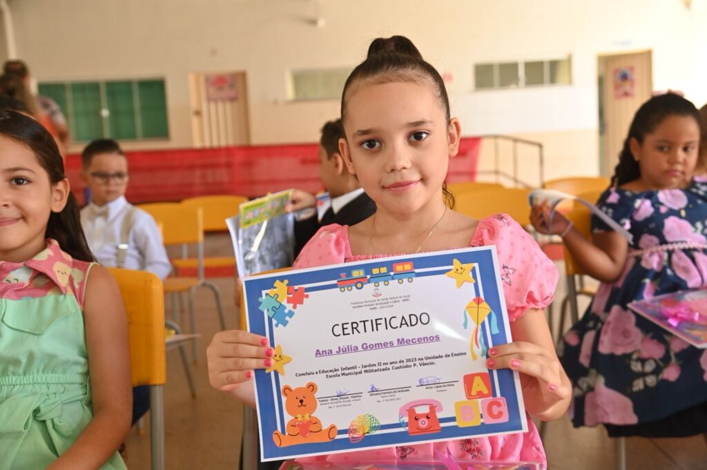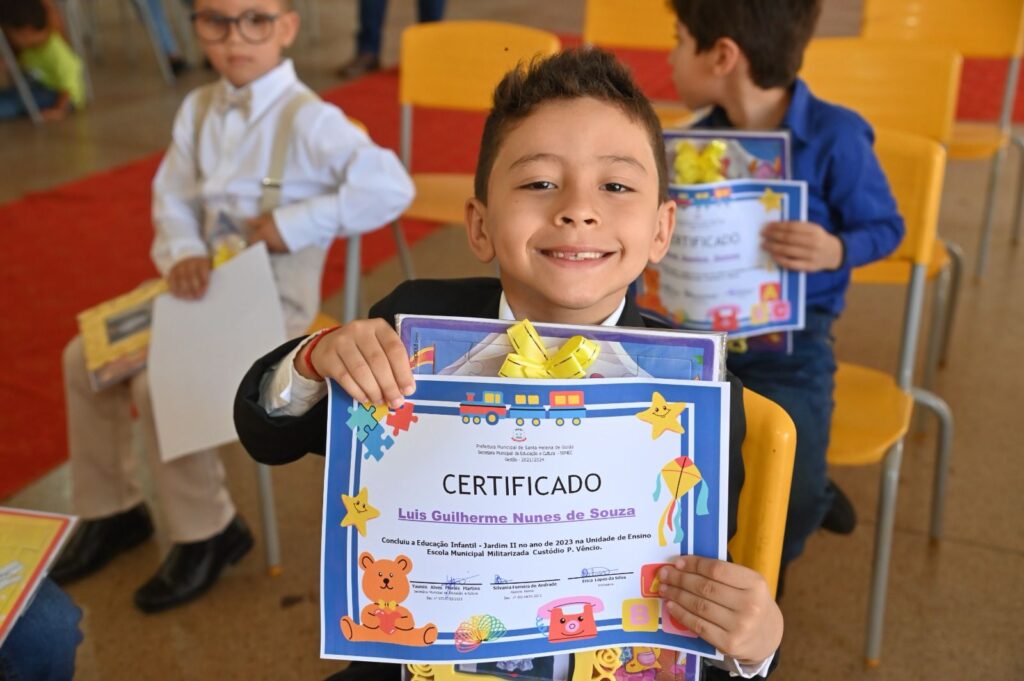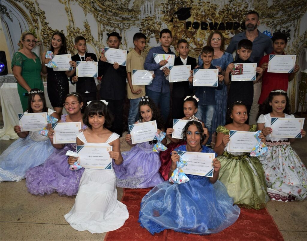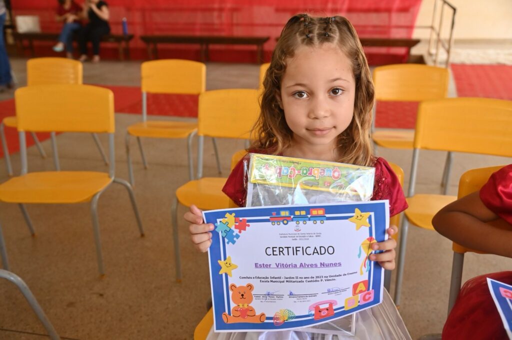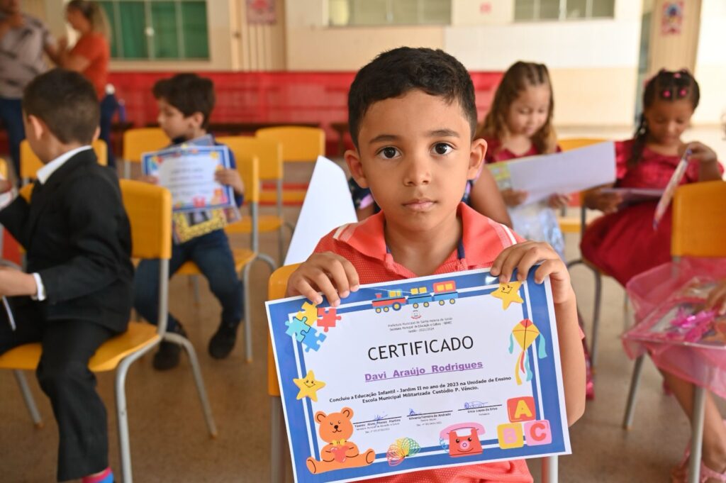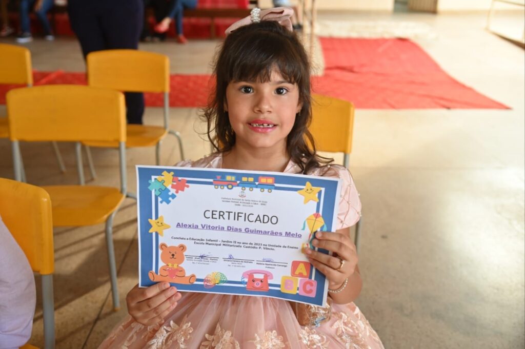 As turmas de formandos do Escola Municipal Militarizada Custódio Vencio brilharam na solenidade de Formatura de 2023. As turmas, com mais de 30 alunos, formandos nos Jardins II A e II B, comemoram mais uma etapa de aprendizado concluída. E, na noite desta terça-feira (12), os mais de 34 alunos do 5º ano A e B, juntamente com seus familiares, celebram a conclusão de mais um ciclo no currículo escolar.