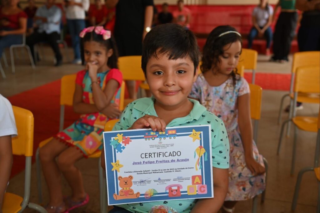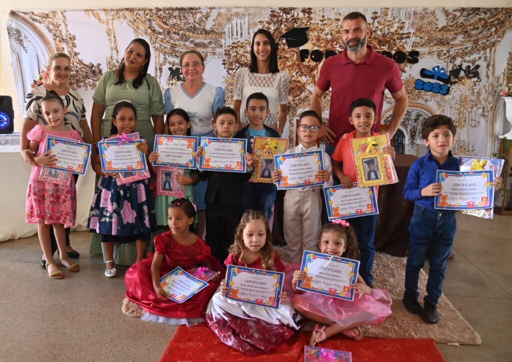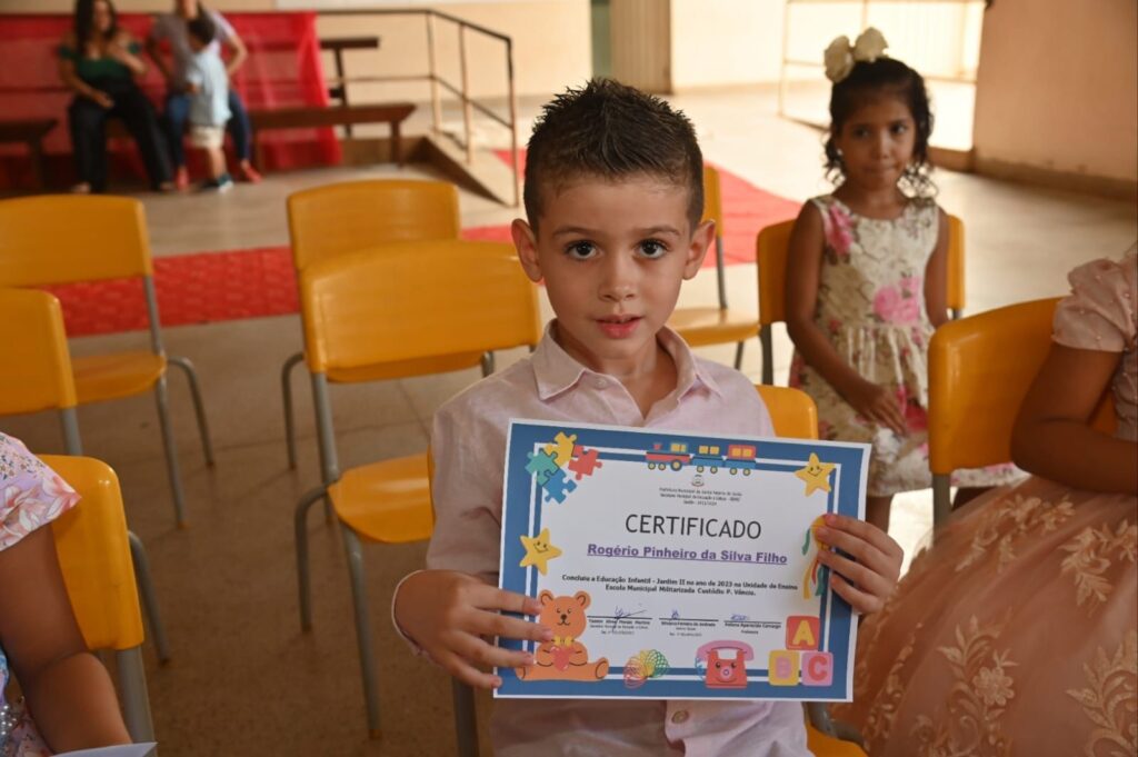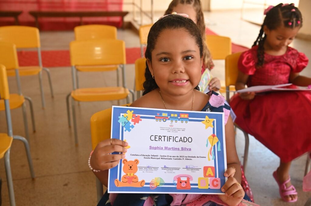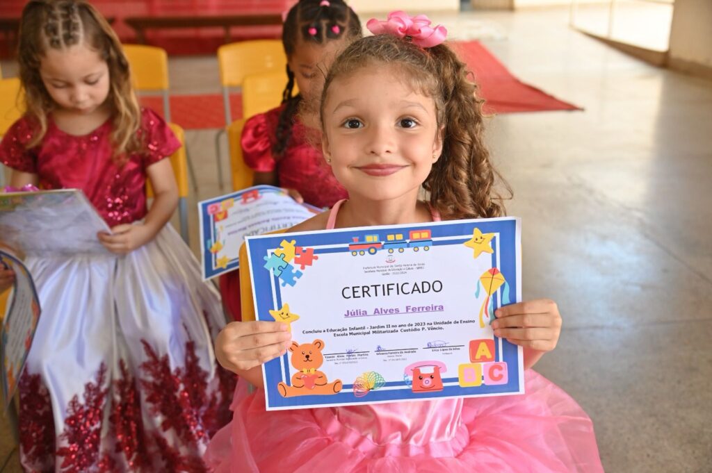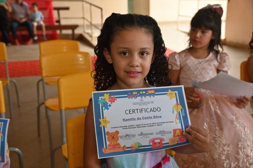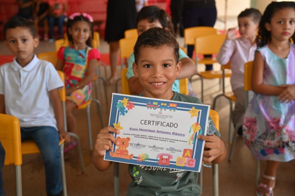 As turmas de formandos do Escola Municipal Militarizada Custódio Vencio brilharam na solenidade de Formatura de 2023. As turmas, com mais de 30 alunos, formandos nos Jardins II A e II B, comemoram mais uma etapa de aprendizado concluída. E, na noite desta terça-feira (12), os mais de 34 alunos do 5º ano A e B, juntamente com seus familiares, celebram a conclusão de mais um ciclo no currículo escolar.