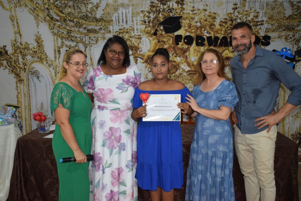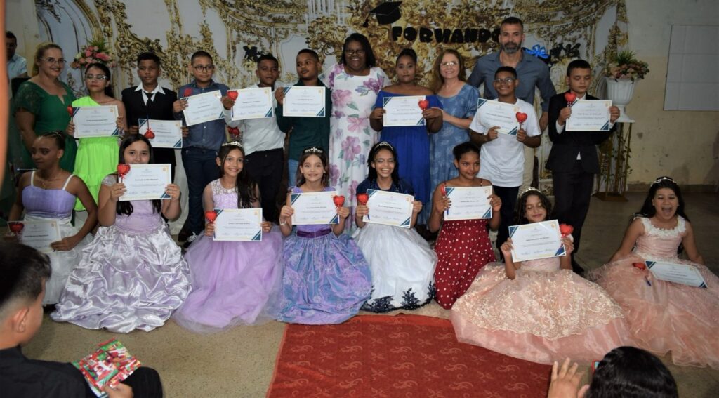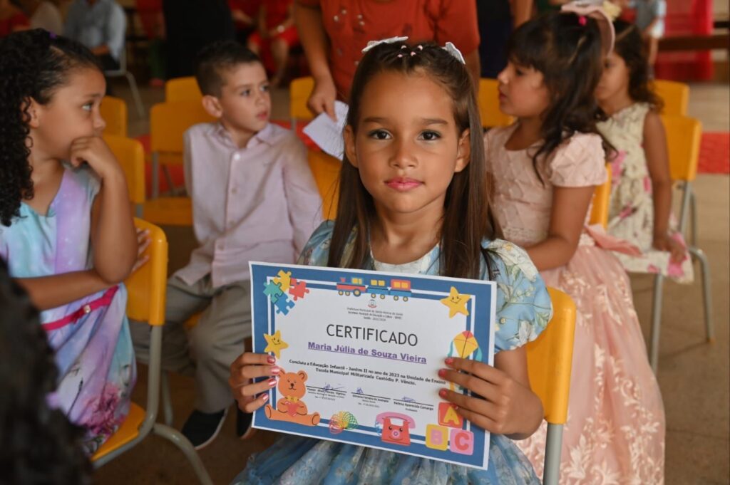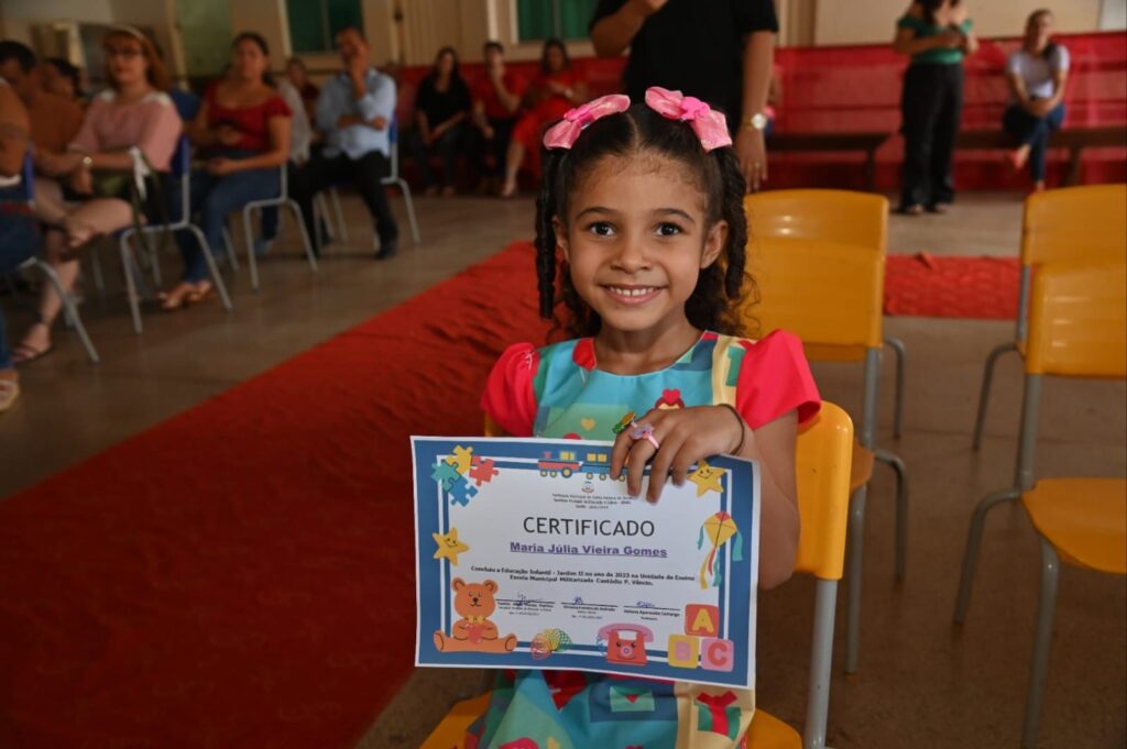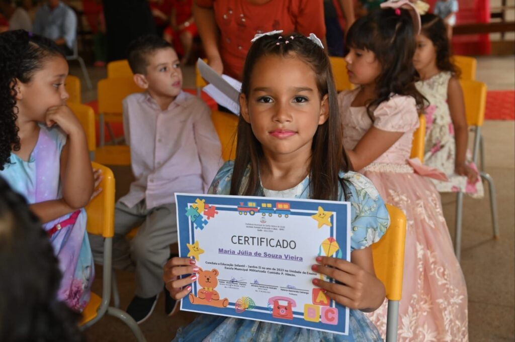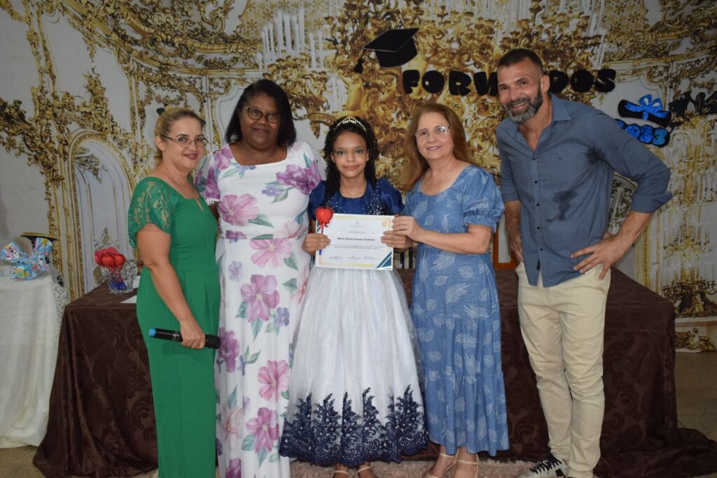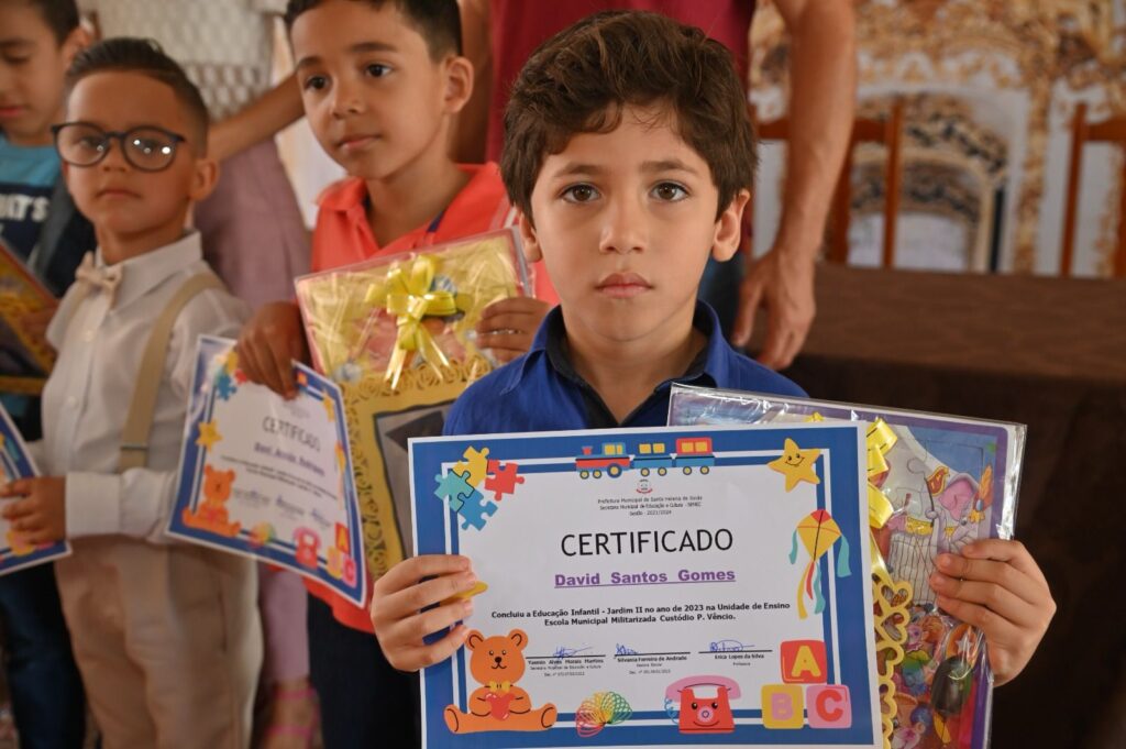 As turmas de formandos do Escola Municipal Militarizada Custódio Vencio brilharam na solenidade de Formatura de 2023. As turmas, com mais de 30 alunos, formandos nos Jardins II A e II B, comemoram mais uma etapa de aprendizado concluída. E, na noite desta terça-feira (12), os mais de 34 alunos do 5º ano A e B, juntamente com seus familiares, celebram a conclusão de mais um ciclo no currículo escolar.