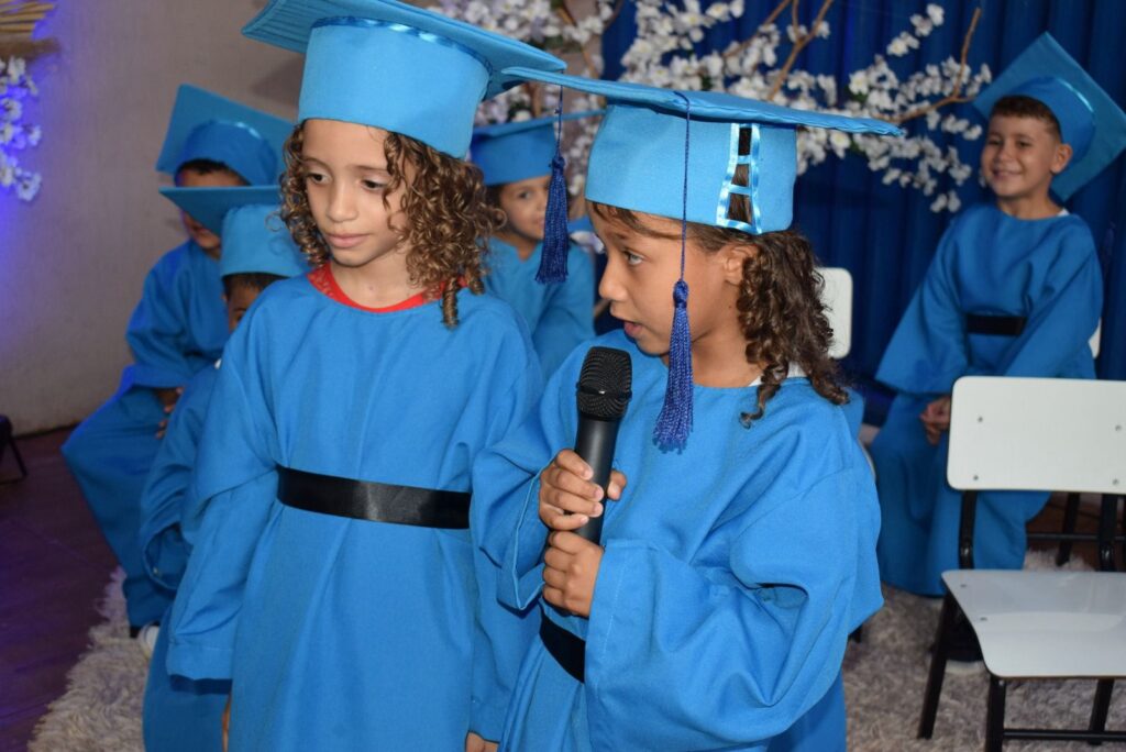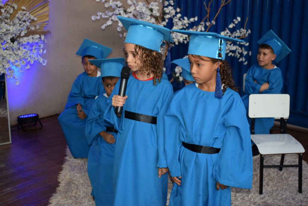 A formatura do Jardim do ensino infantil aconteceu sexta-feira (15) e foi prestigiada por familiares, professores, colaboradores da rede municipal de ensino, membros da unidade escolar e autoridades.
