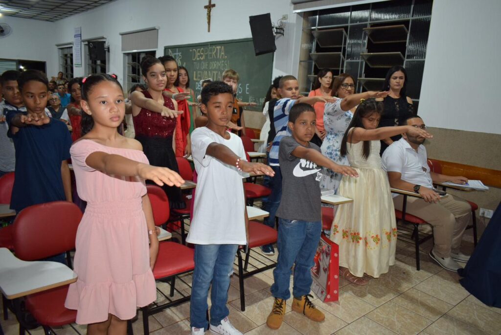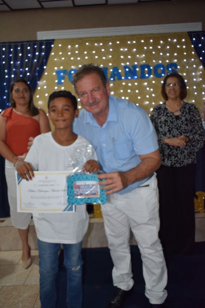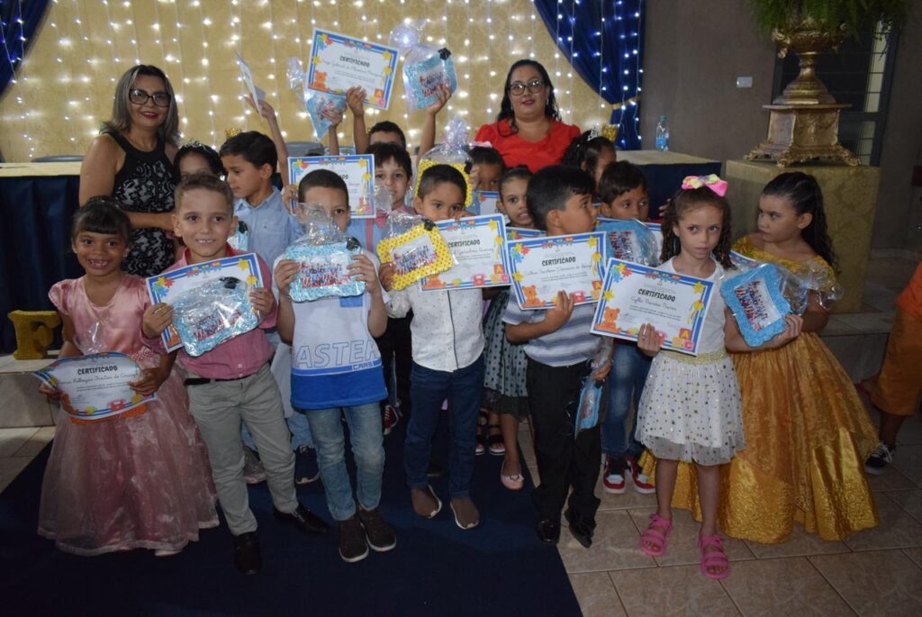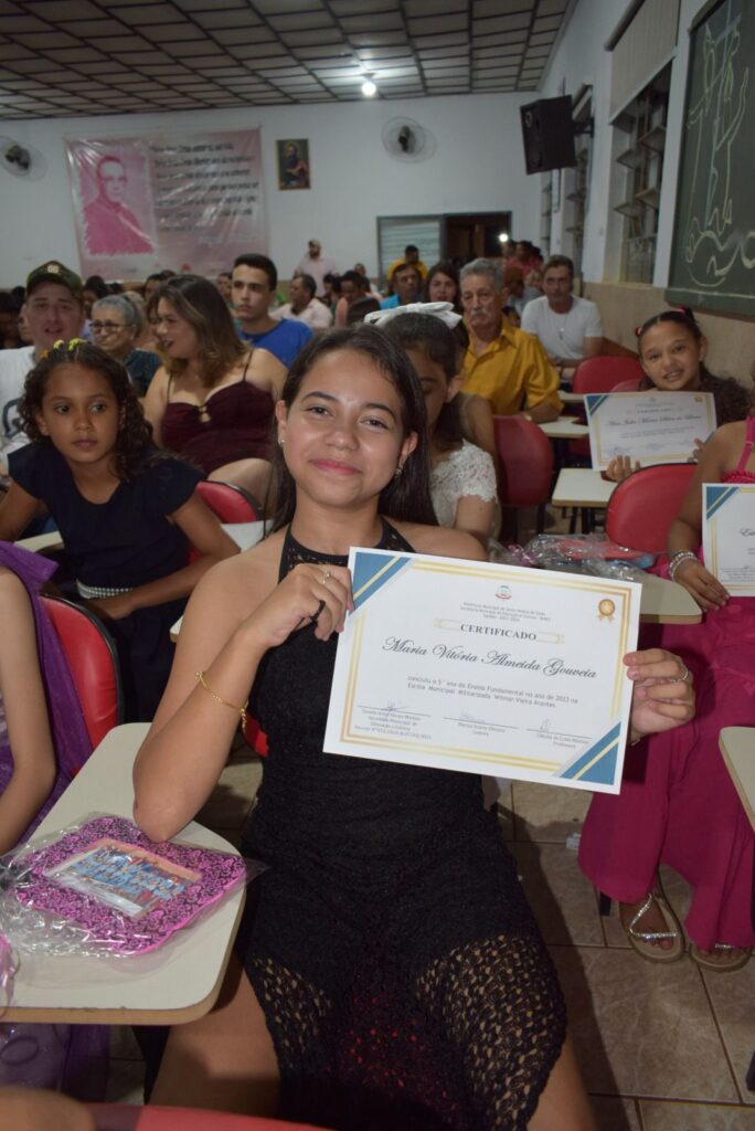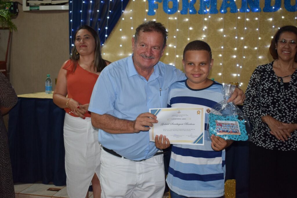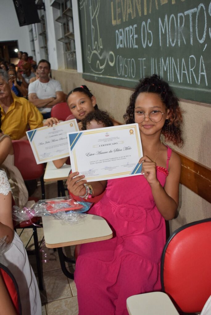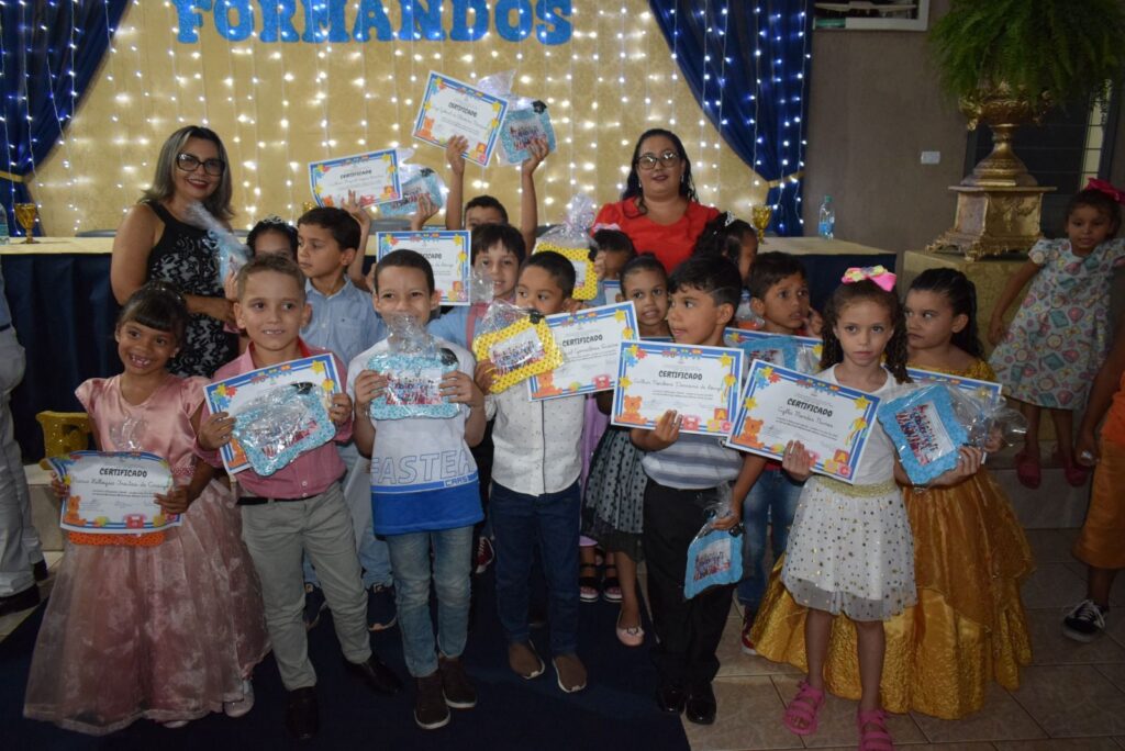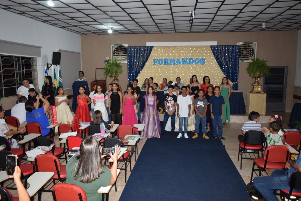 As turmas de formandos da Escola Municipal Militarizada Wilmar Vieira brilharam na solenidade de Formatura de 2023. A turma, com mais de 25 alunos, formandos do Jardim do ensino infantil, comemoraram mais uma etapa de aprendizado concluída juntamente com os 35 alunos formandos do 5º ano, na noite desta sexta-feira (15).