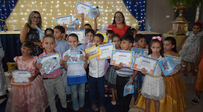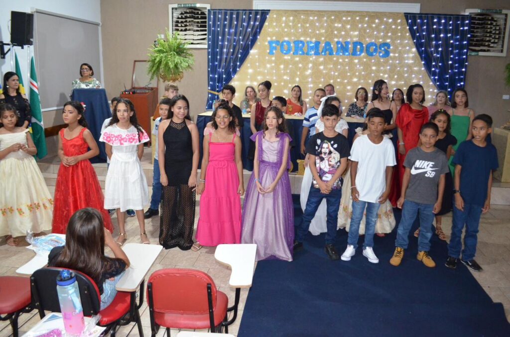 As turmas de formandos da Escola Municipal Militarizada Wilmar Vieira brilharam na solenidade de Formatura de 2023. A turma, com mais de 25 alunos, formandos do Jardim do ensino infantil, comemoraram mais uma etapa de aprendizado concluída juntamente com os 35 alunos formandos do 5º ano, na noite desta sexta-feira (15).