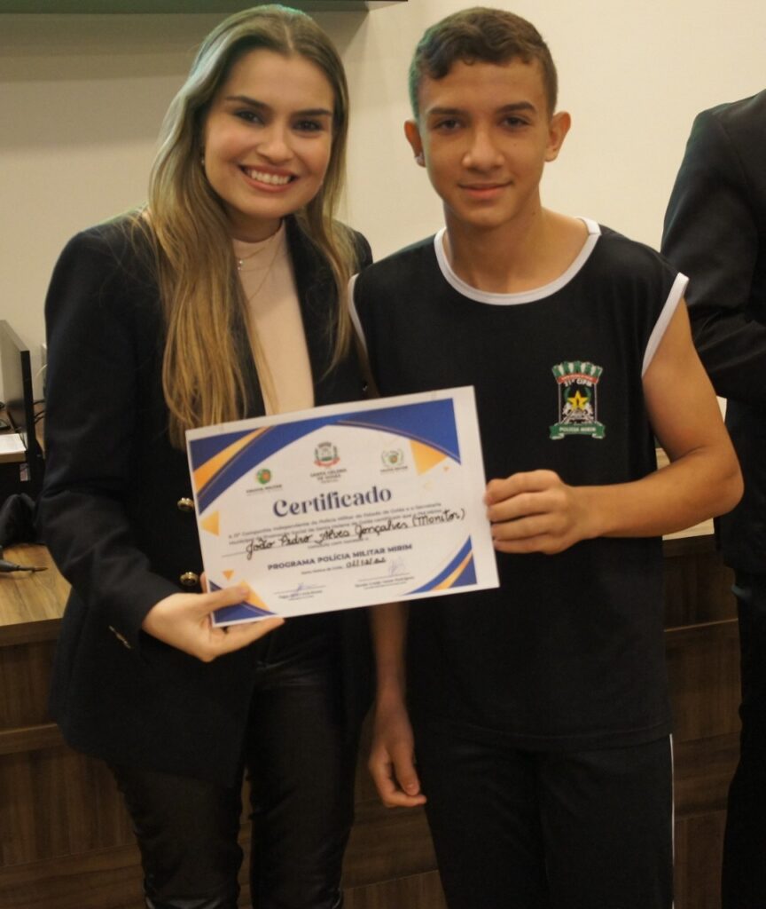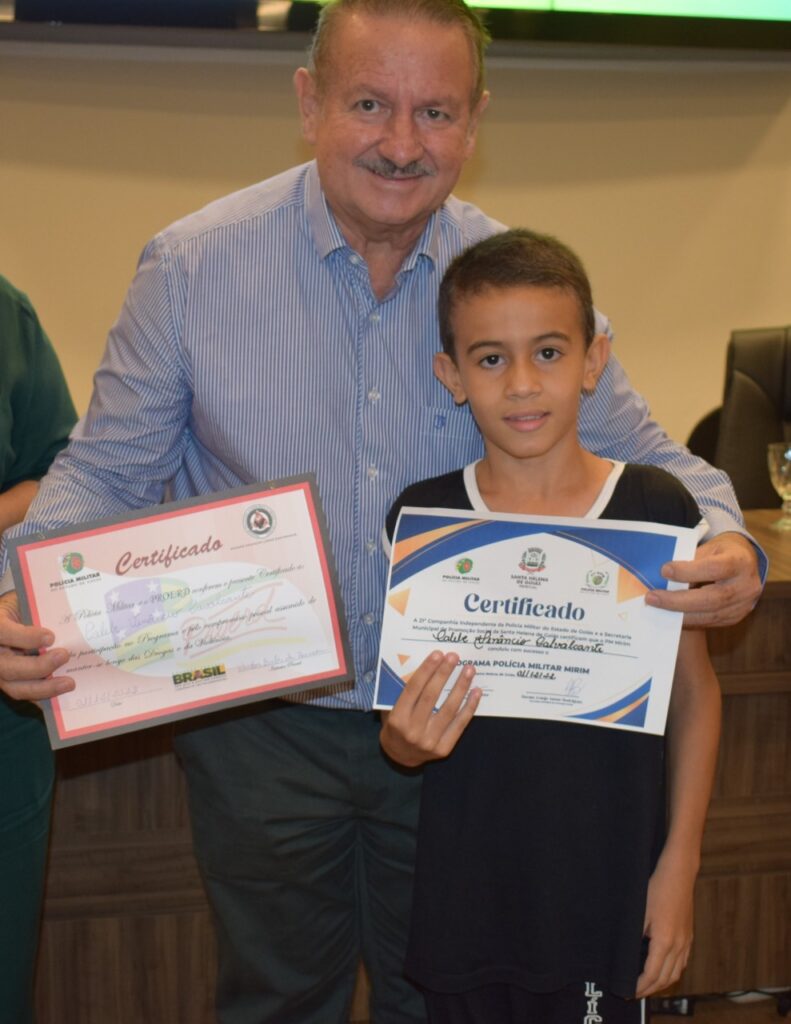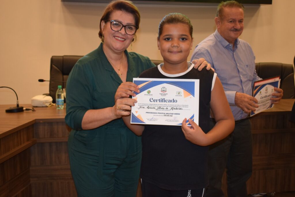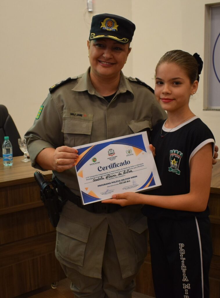 Aconteceu na noite de 1º de dezembro na Câmara Municipal de Santa Helena, a Formatura da PM Mirim e entrega de certificados aos formandos do PROERD. O evento é uma parceria com a Prefeitura Municipal e Policia Militar. Presenças do vice-prefeito Dr. Agenor Bezerra de Queiroz (Representando o prefeito Dr. João Alberto), primeira dama do município Dra. Renata Araújo Asmar Rodrigues, Major Jane Lucia, coordenadores do Projeto, alunos e familiares. Confira!