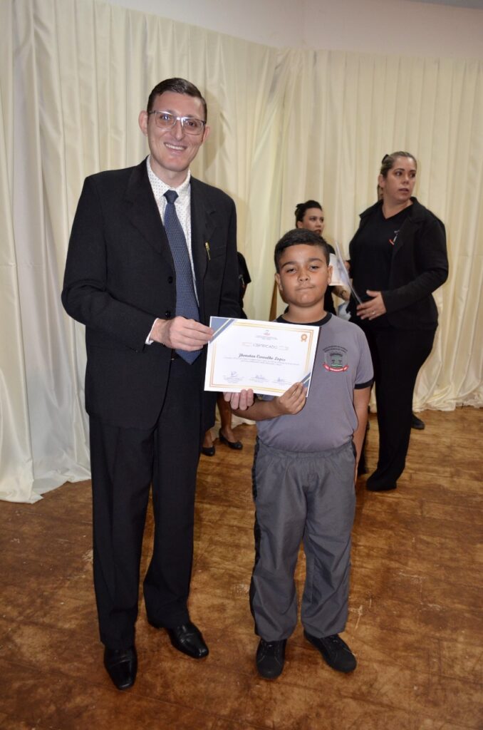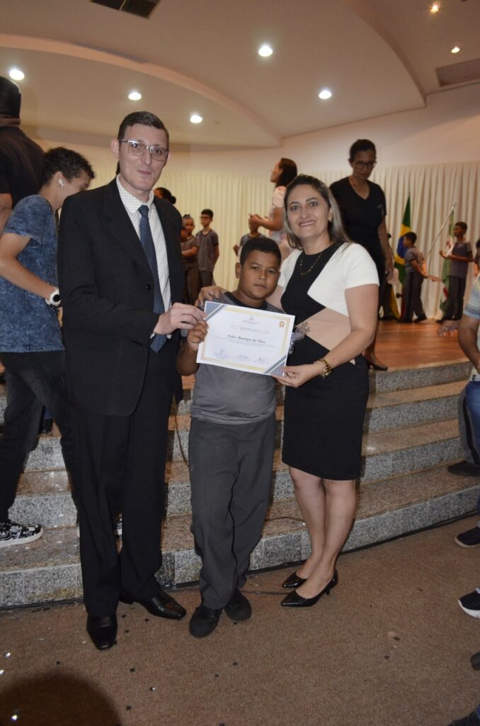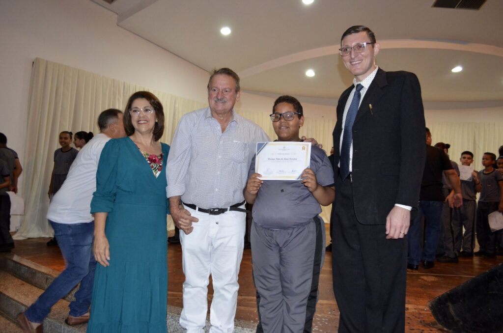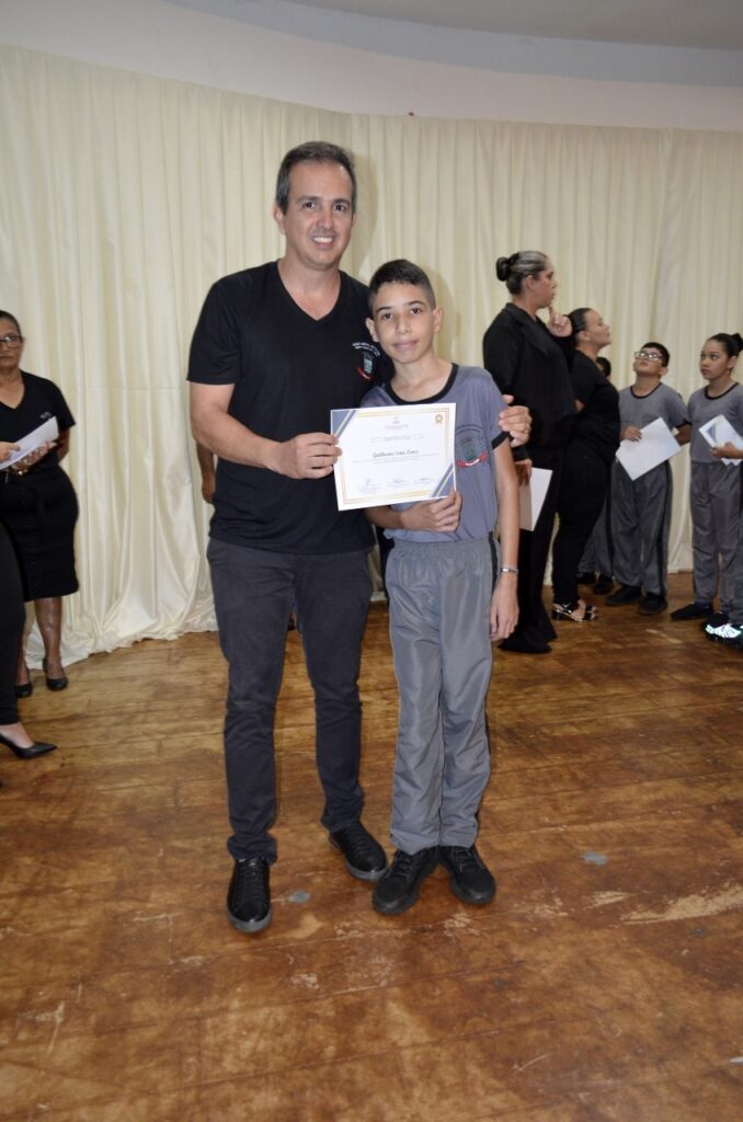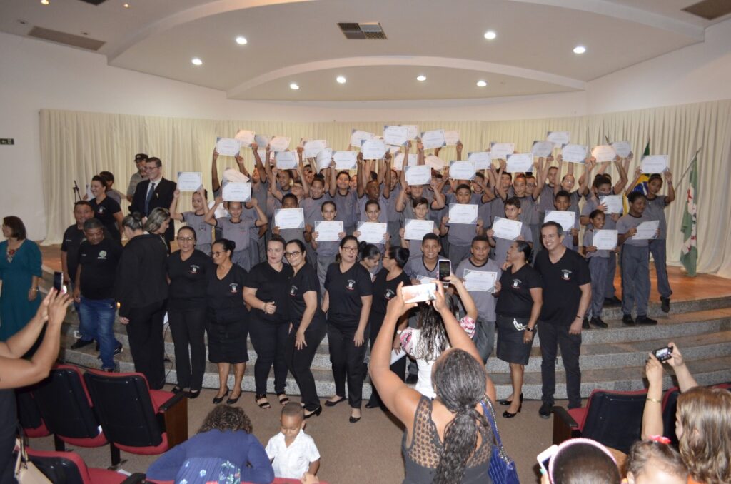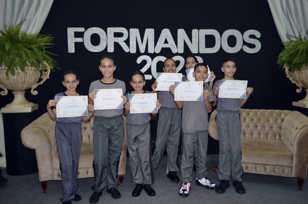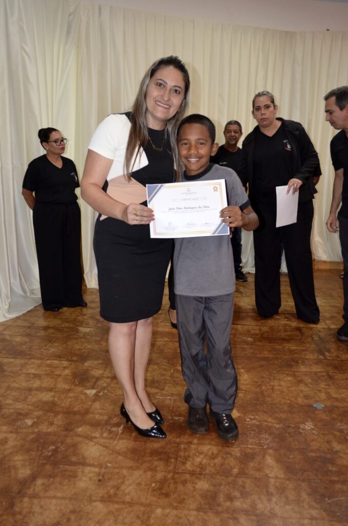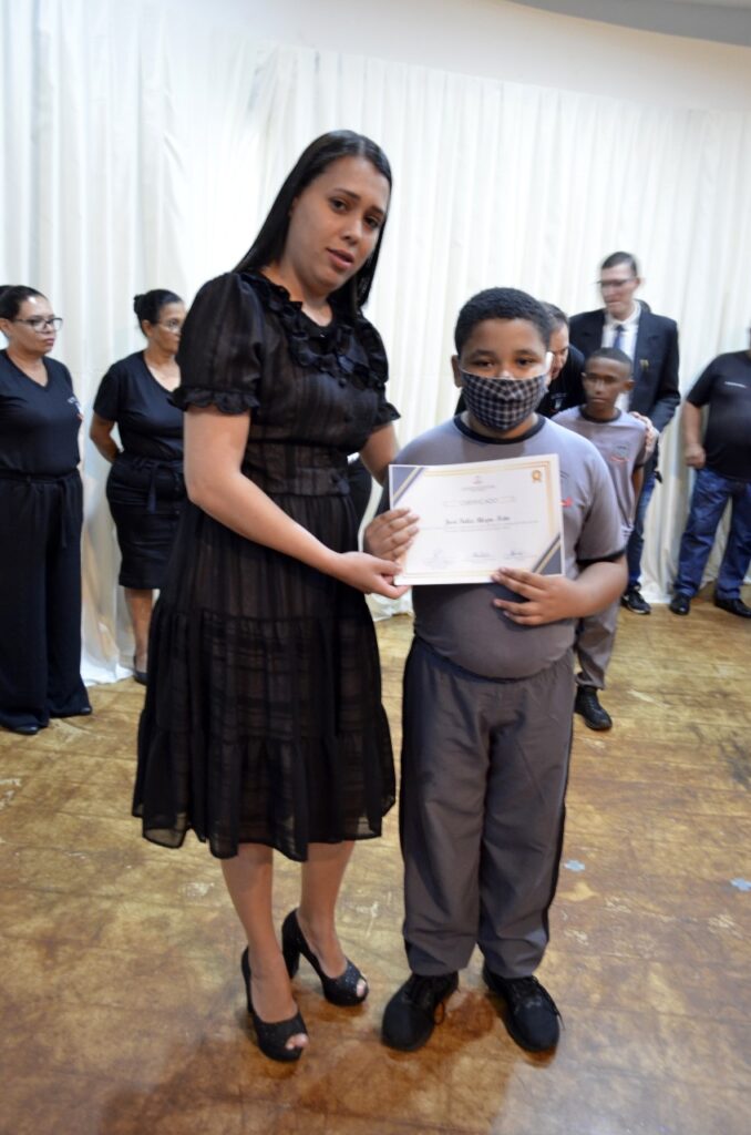 57 estudantes concluíram a primeira fase do Ensino Fundamental, desta Unidade que oferece um Ensino Aprendizagem de excelência, com profissionais pedagogicamente comprometidos e capacitados, tendo como um de seus objetivos preparar os estudantes para uma vida em sociedade, formando cidadãos com ética, disciplina e cidadania.