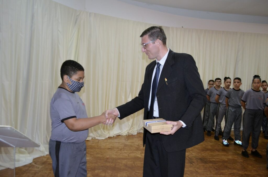 Se fizeram presente o Vice-prefeito Agenor Bezerra de Queiroz, Secretário da Educação Estevérson Oliveira Lima, Coordenadora Pedagógica Liamar Dantas, Servidores desta Unidade representados pela Gestora Vanderlúcia da Luz Silva Raya, Chefe da Divisão de Ensino, Subtenente Ronaldo Carlos Rodrigues Valadão, Chefe da Divisão Disciplinar, Sargento Carlos Roberto Leonel Rosa, pais, familiares e comunidade.