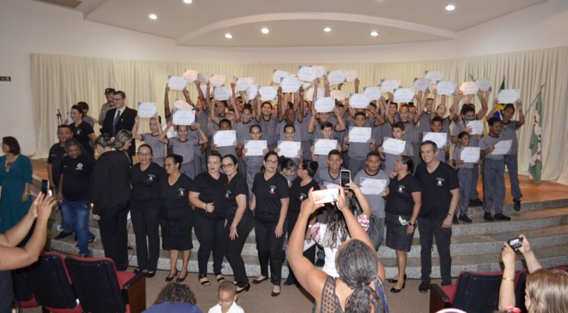 57 estudantes concluíram a primeira fase do Ensino Fundamental, desta Unidade que oferece um Ensino Aprendizagem de excelência, com profissionais pedagogicamente comprometidos e capacitados, tendo como um de seus objetivos preparar os estudantes para uma vida em sociedade, formando cidadãos com ética, disciplina e cidadania.
