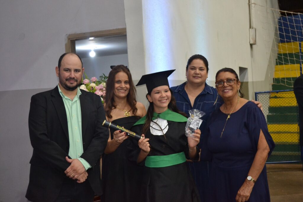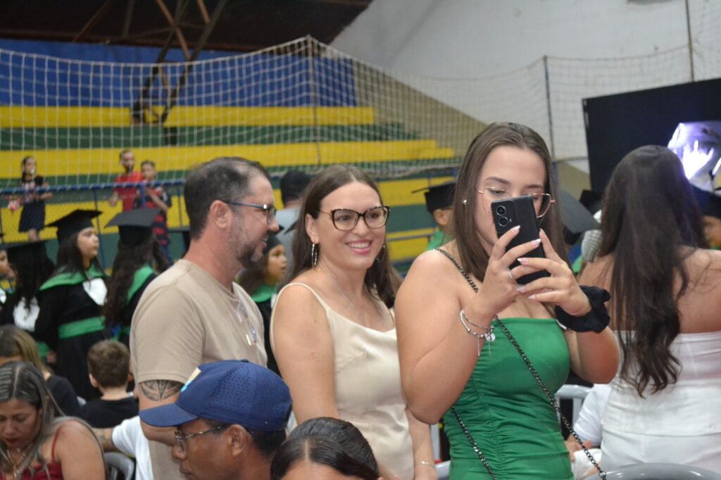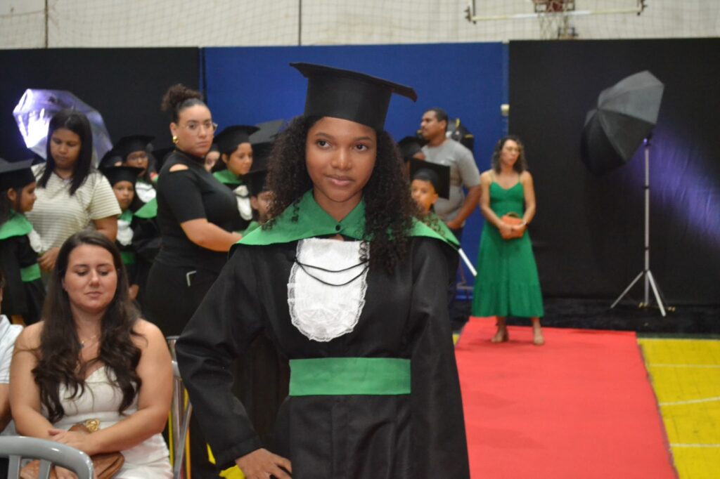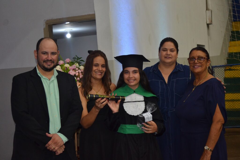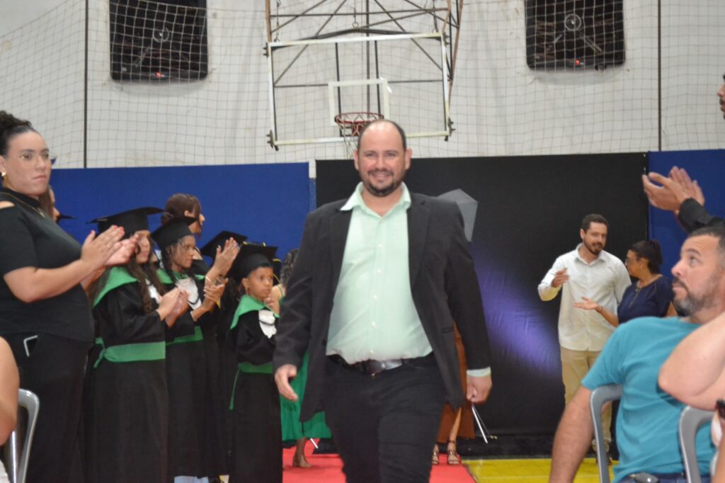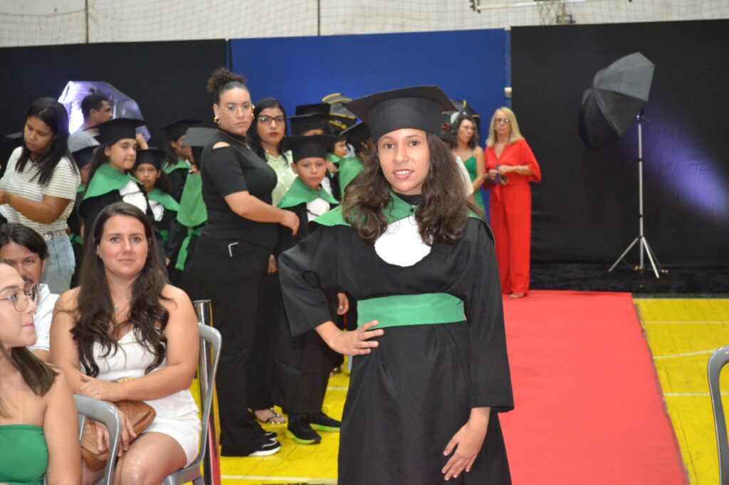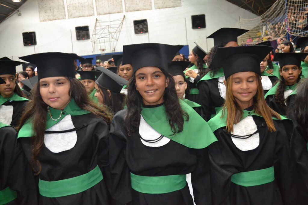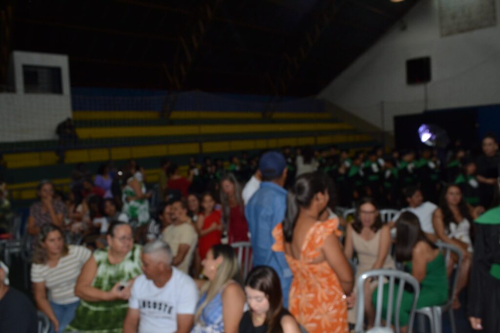 Realizada no Ginásio de Esportes Sinhô Parreira, a formatura contou com a presença de familiares, educadores e comunidade escolar, que acompanharam momentos de homenagens, conquistas e reconhecimento pelo esforço dos alunos ao longo do ano letivo.