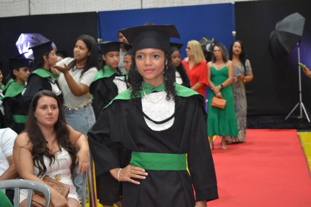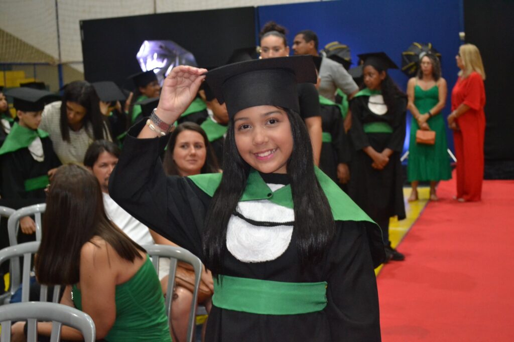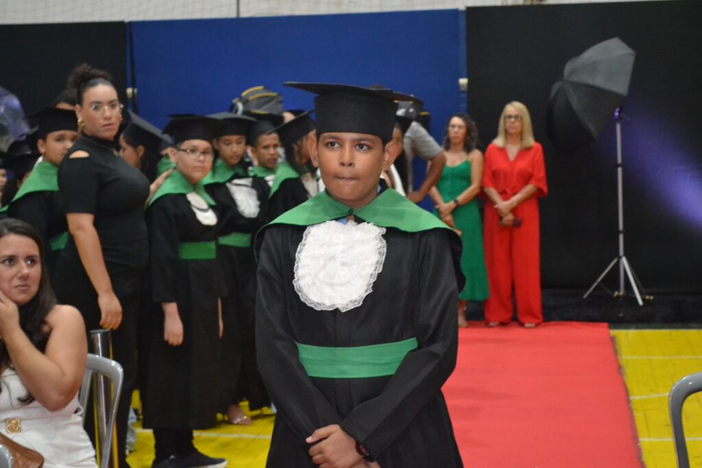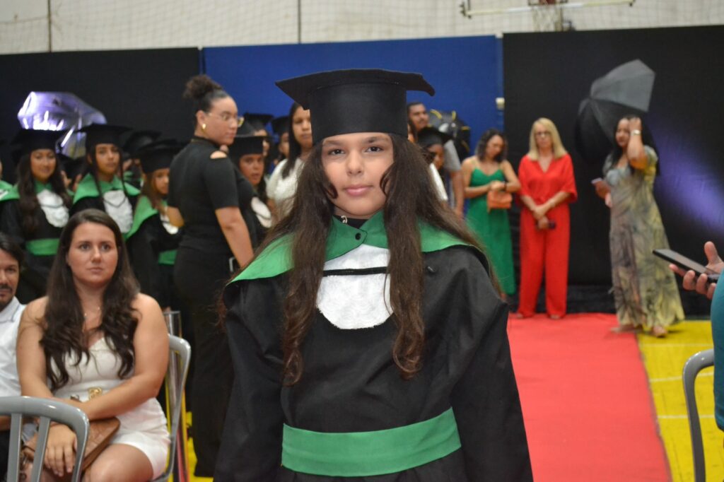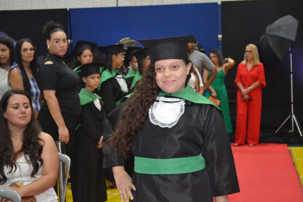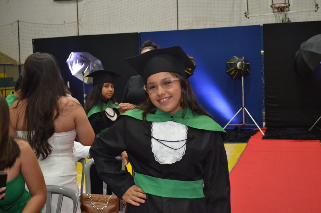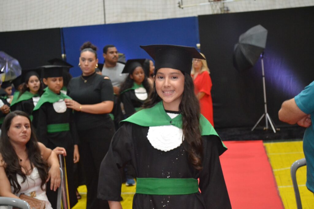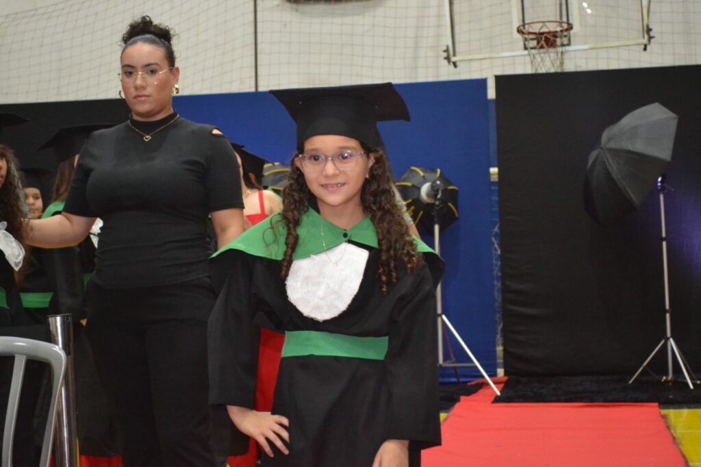 Realizada no Ginásio de Esportes Sinhô Parreira, a formatura contou com a presença de familiares, educadores e comunidade escolar, que acompanharam momentos de homenagens, conquistas e reconhecimento pelo esforço dos alunos ao longo do ano letivo.
