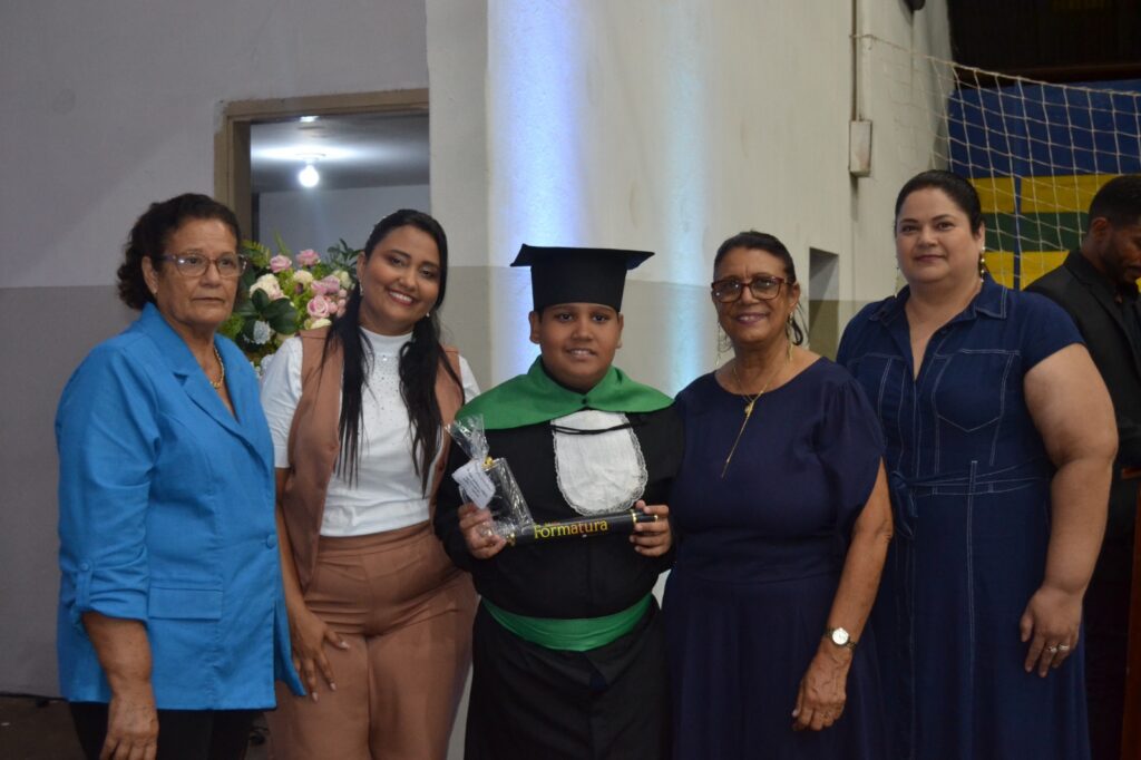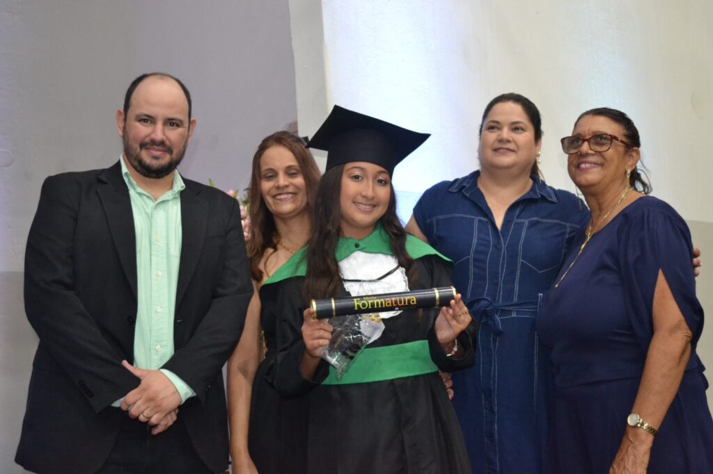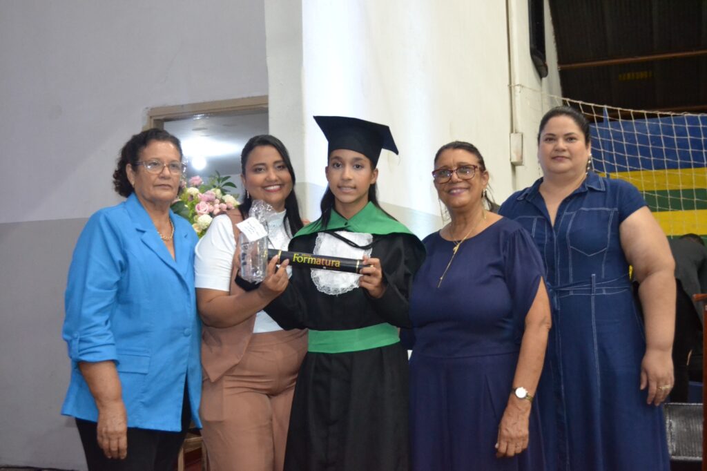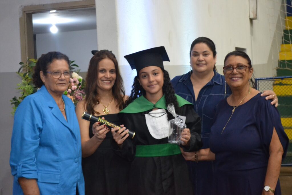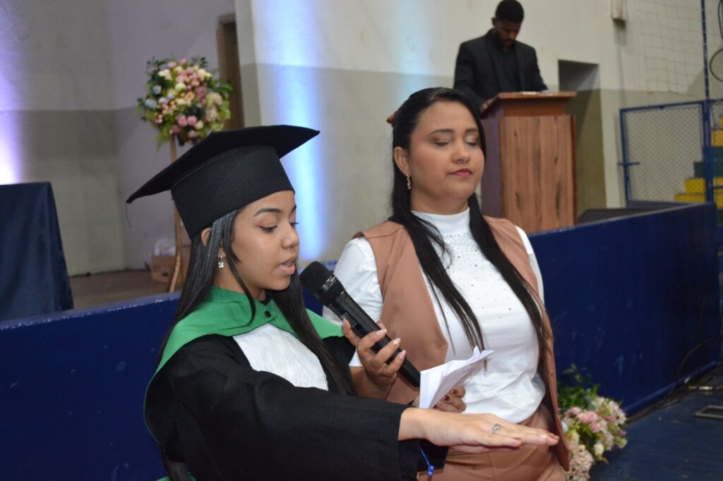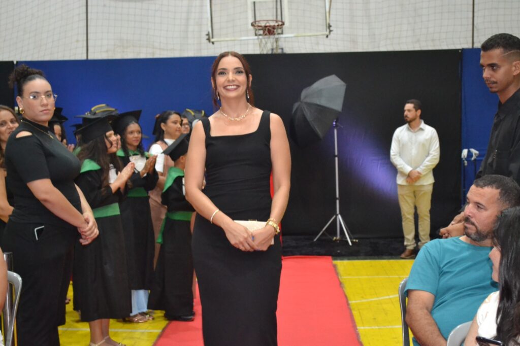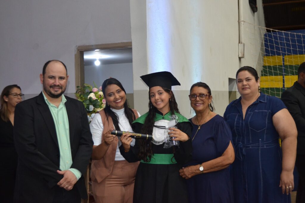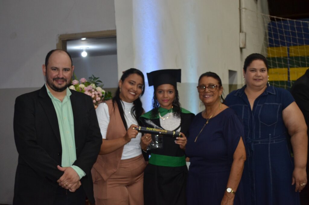 Realizada no Ginásio de Esportes Sinhô Parreira, a formatura contou com a presença de familiares, educadores e comunidade escolar, que acompanharam momentos de homenagens, conquistas e reconhecimento pelo esforço dos alunos ao longo do ano letivo.