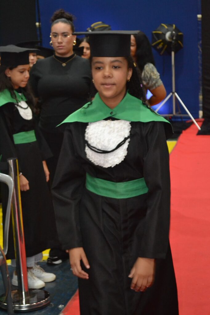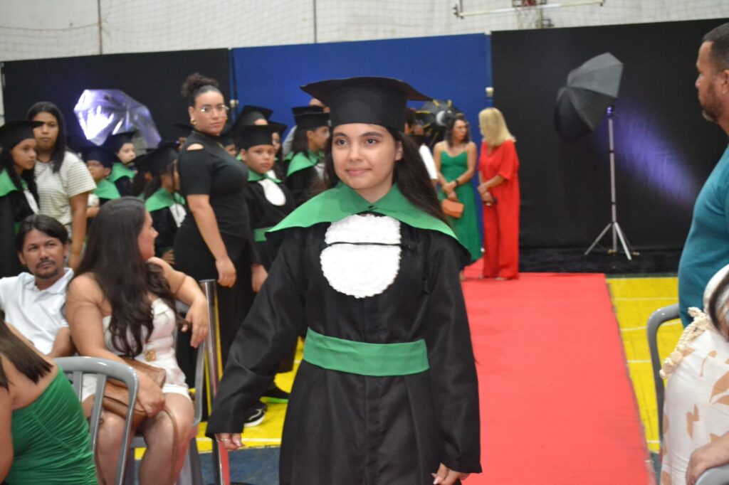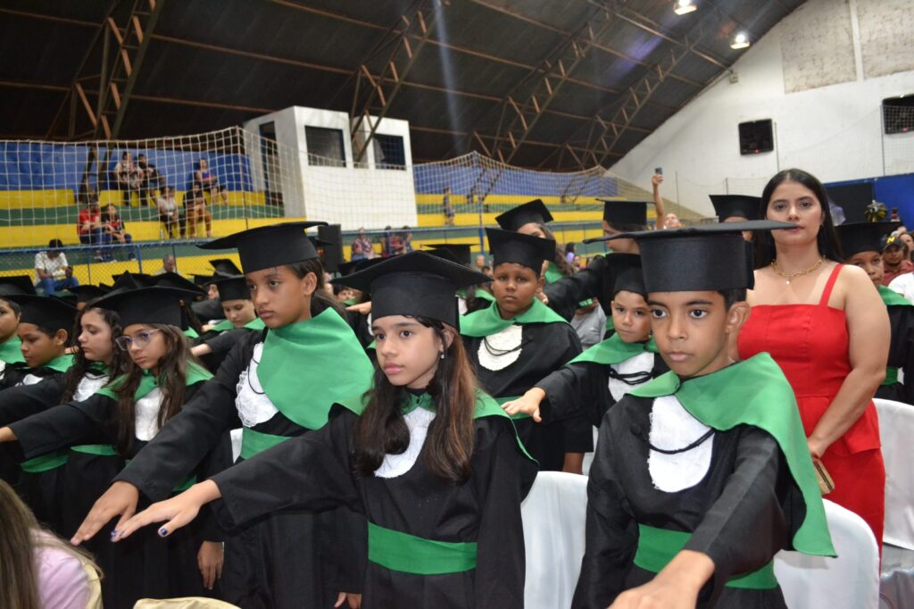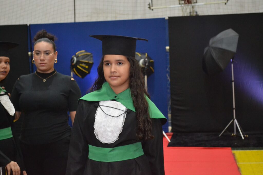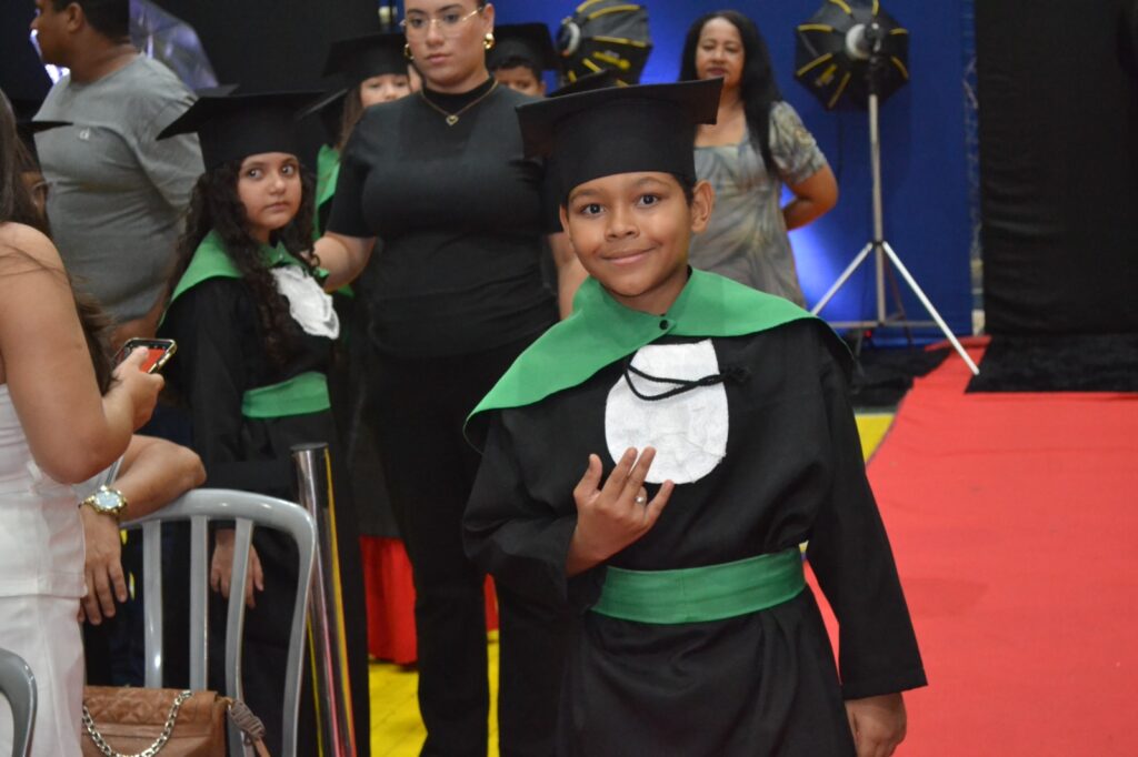 A cerimônia reuniu os estudantes da Escola Municipal Militarizada João Saraiva e da Escola Municipal Militarizada Narcisa Costa Leão, que celebraram com alegria e emoção o encerramento de uma etapa fundamental da educação básica.