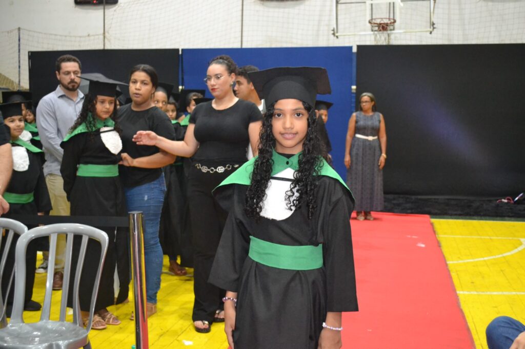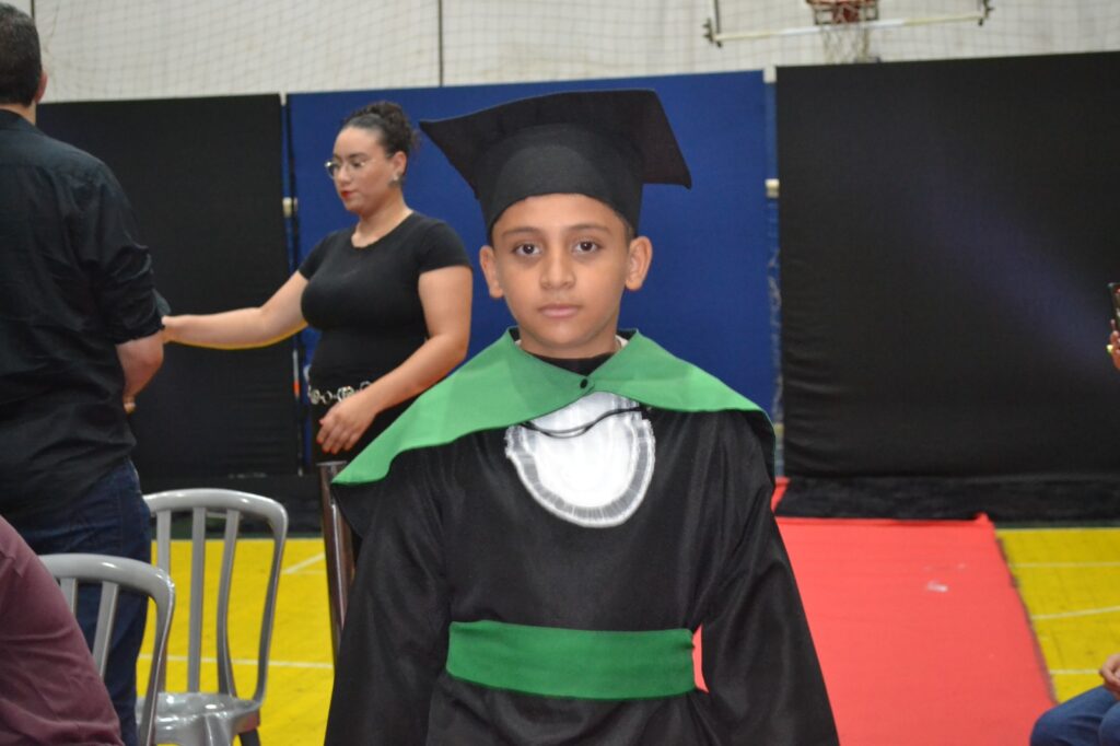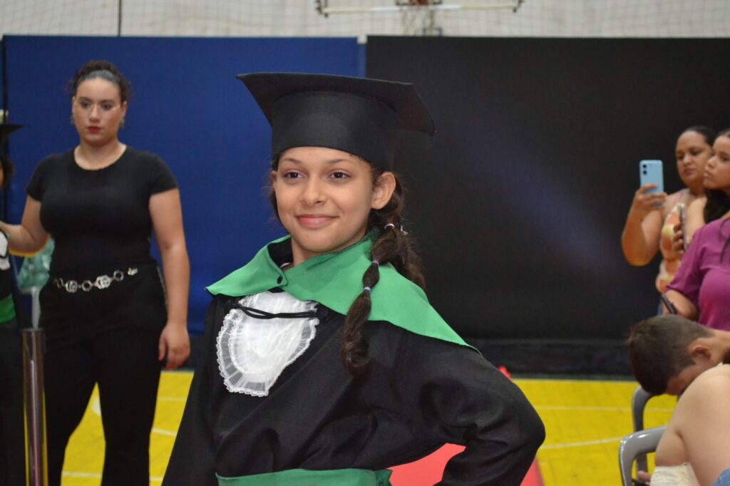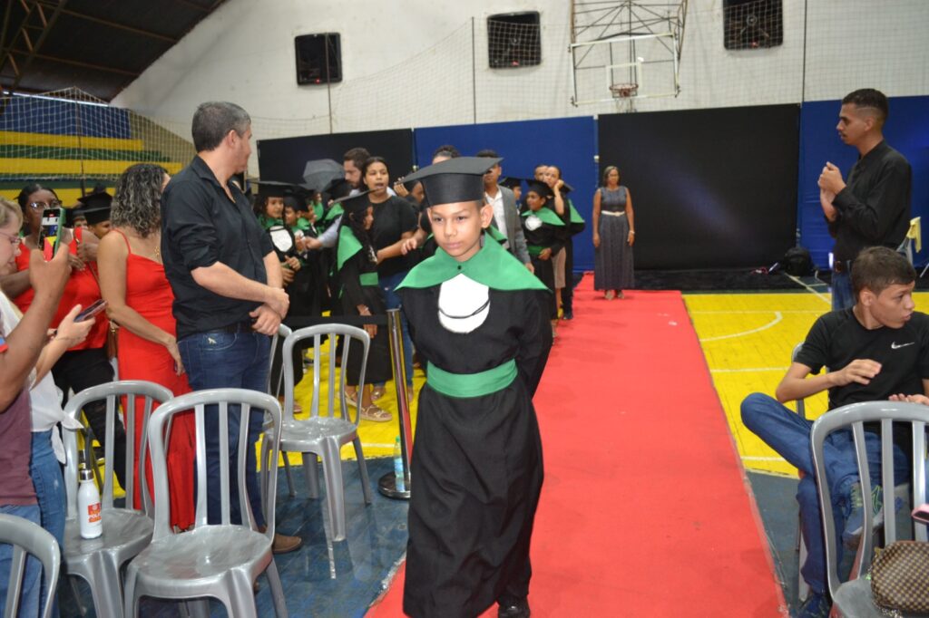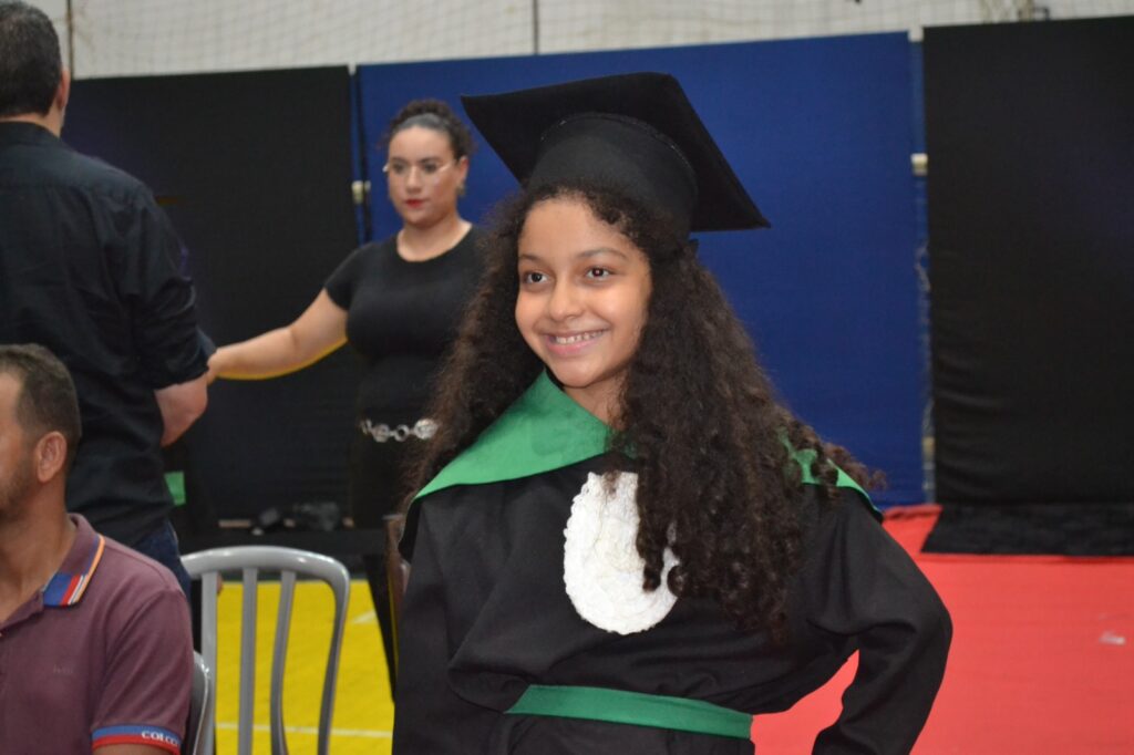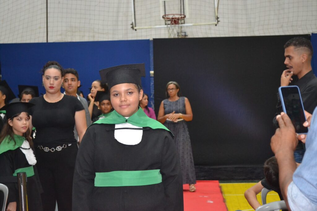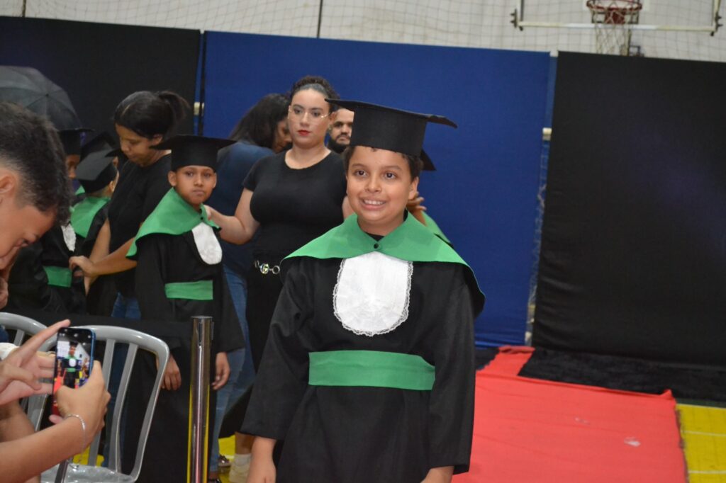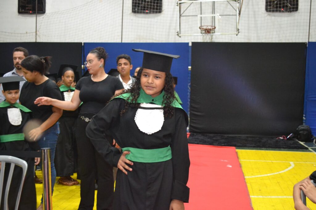 Realizada no Ginásio de Esportes Sinhô Parreira, a cerimônia reuniu estudantes, famílias, professores e toda a comunidade escolar em um momento de grande emoção e celebração. As crianças receberam seus certificados em meio a homenagens e reconhecimento pelo esforço e dedicação demonstrados ao longo do ano letivo.