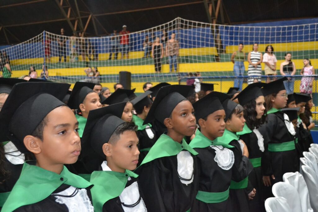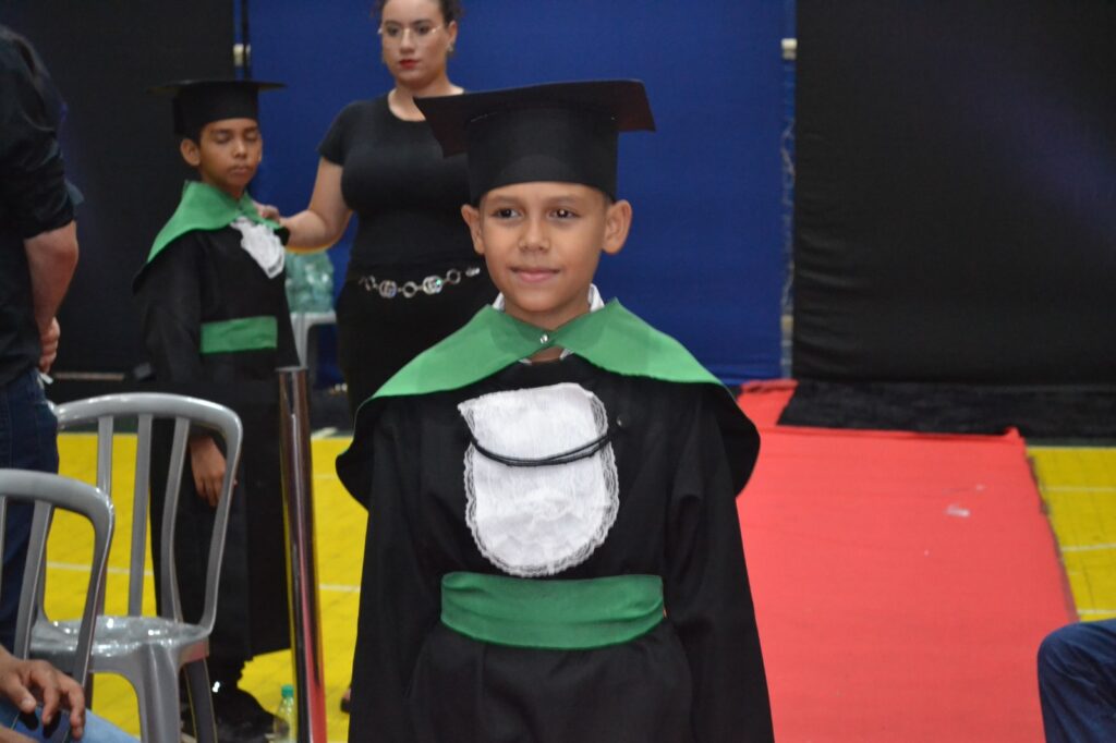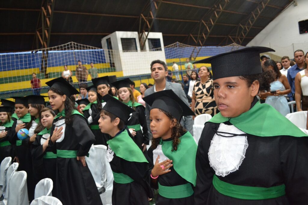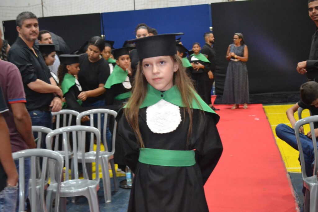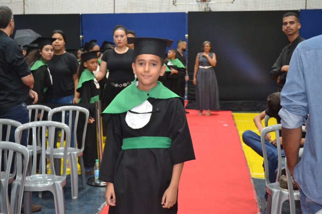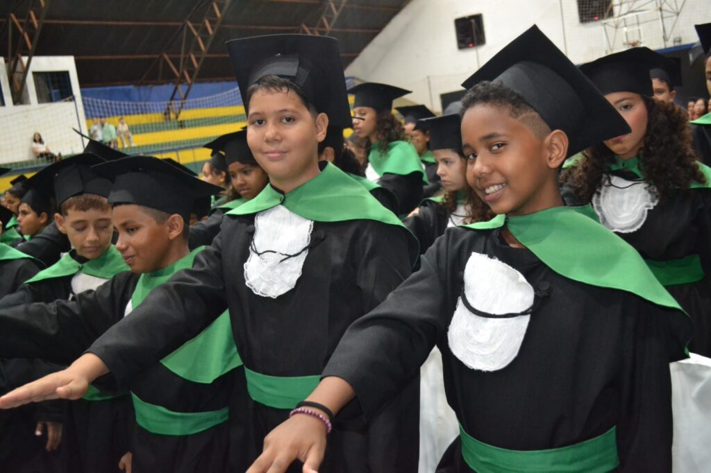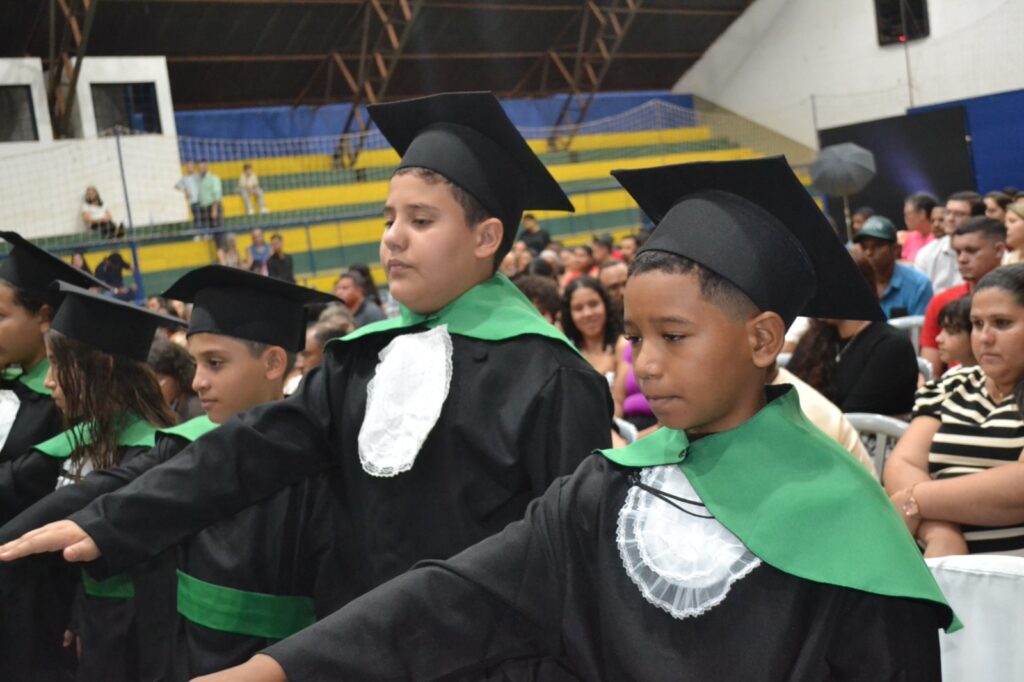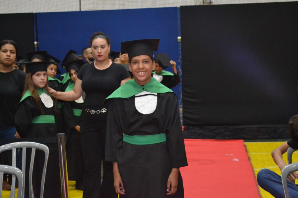 Realizada no Ginásio de Esportes Sinhô Parreira, a cerimônia reuniu estudantes, famílias, professores e toda a comunidade escolar em um momento de grande emoção e celebração. As crianças receberam seus certificados em meio a homenagens e reconhecimento pelo esforço e dedicação demonstrados ao longo do ano letivo.