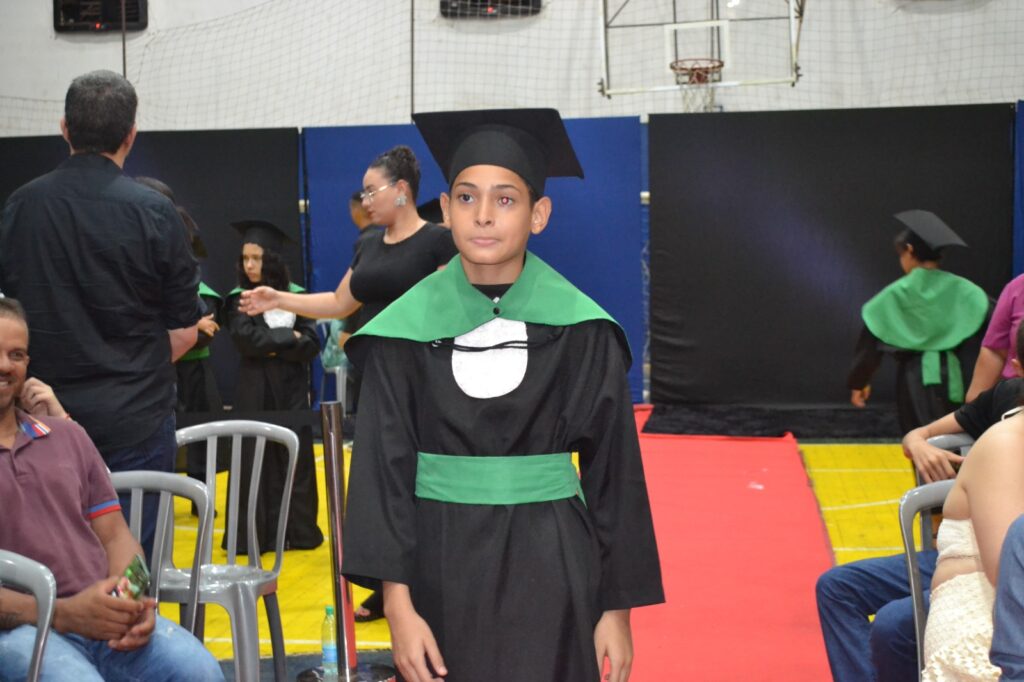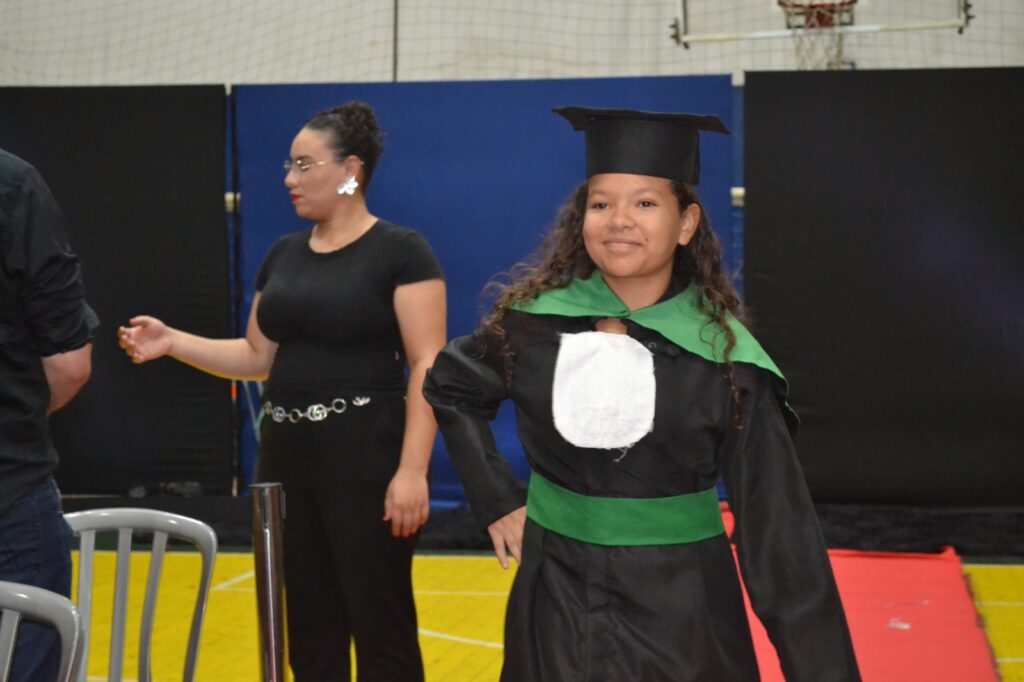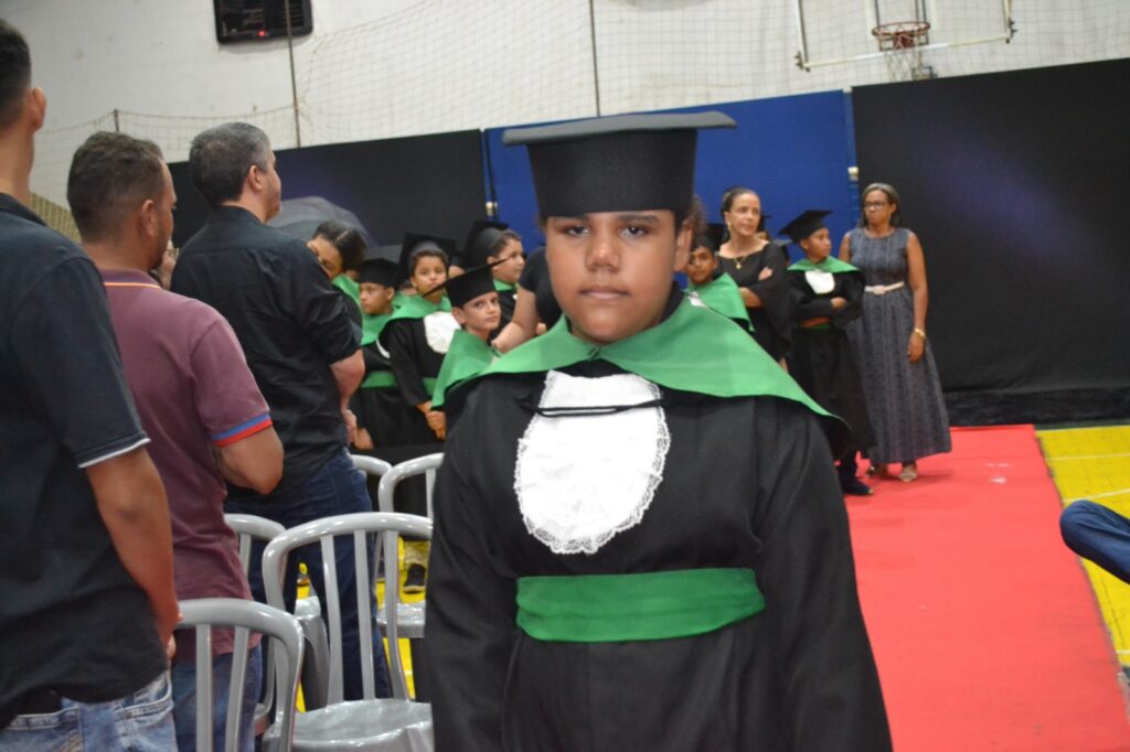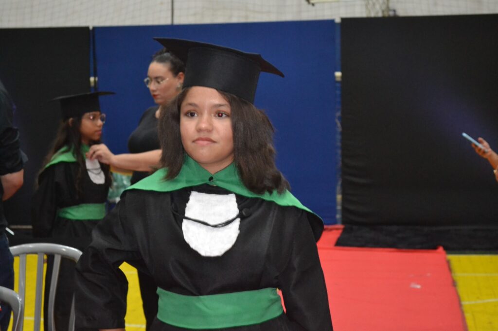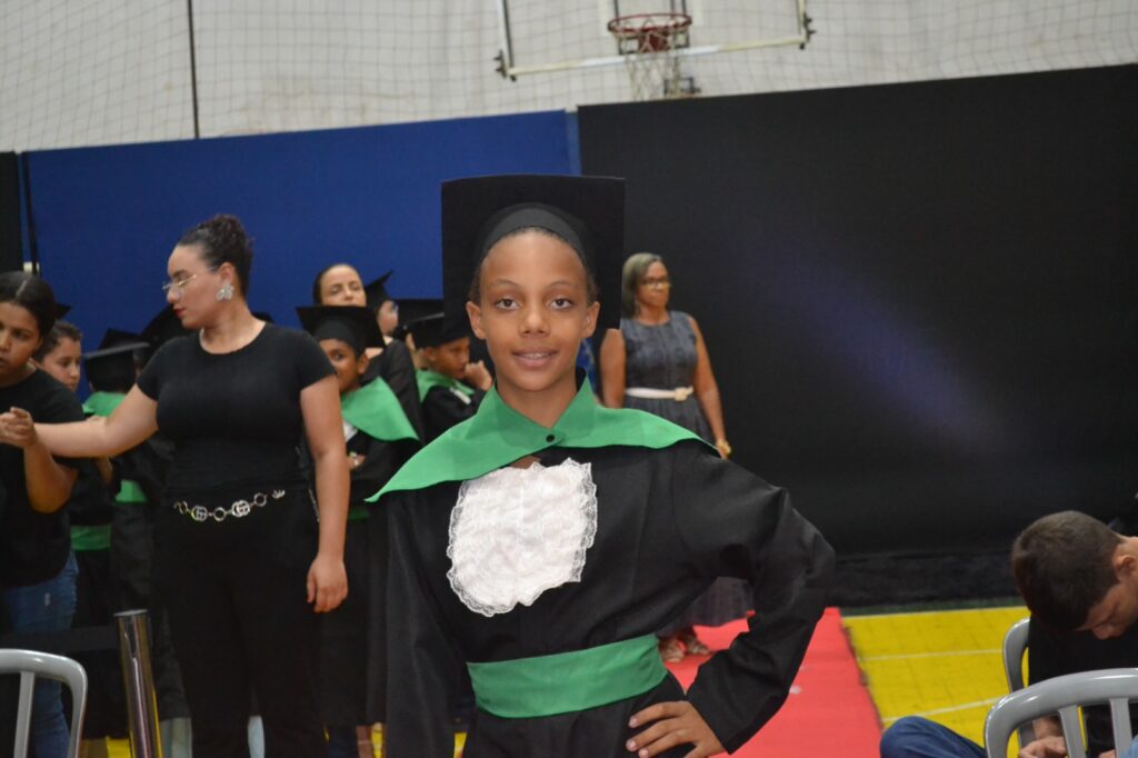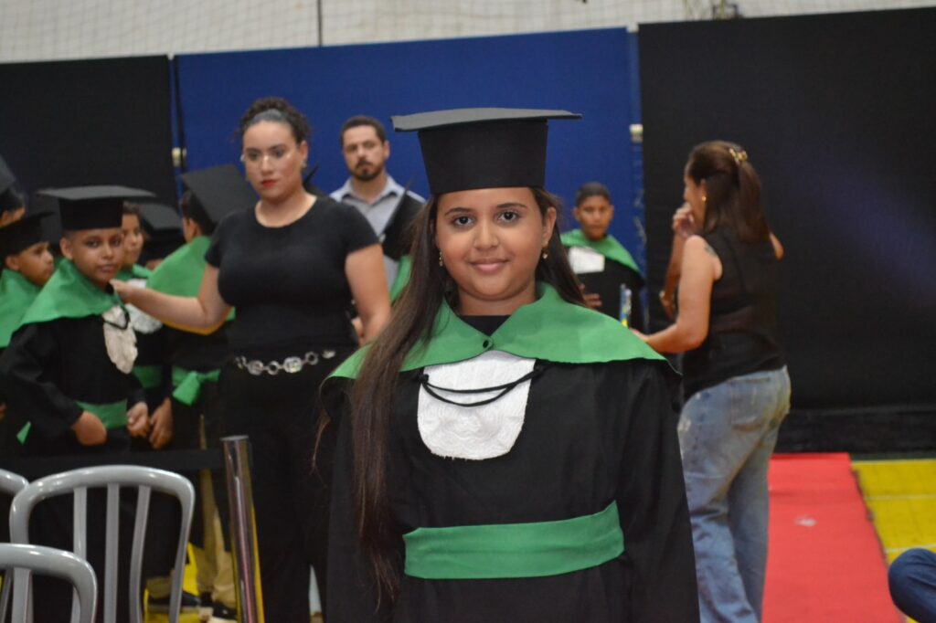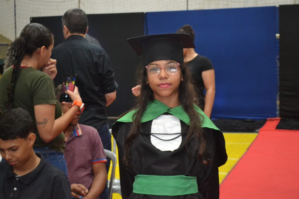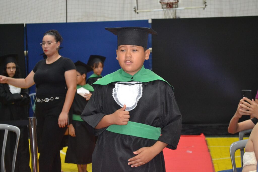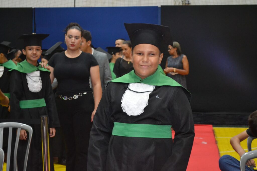 Realizada no Ginásio de Esportes Sinhô Parreira, a cerimônia reuniu estudantes, famílias, professores e toda a comunidade escolar em um momento de grande emoção e celebração. As crianças receberam seus certificados em meio a homenagens e reconhecimento pelo esforço e dedicação demonstrados ao longo do ano letivo.