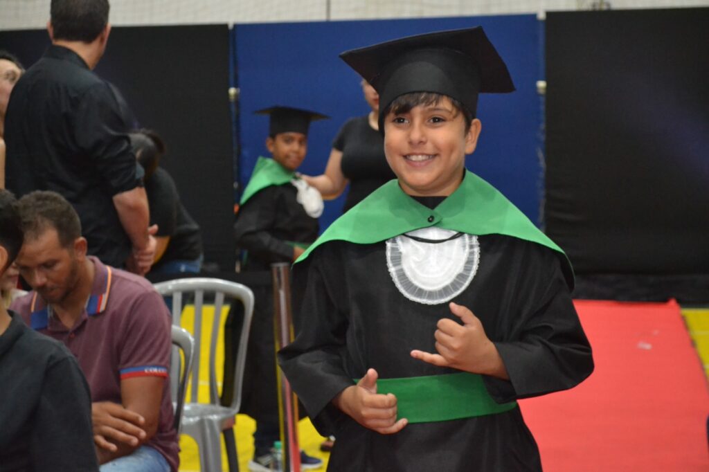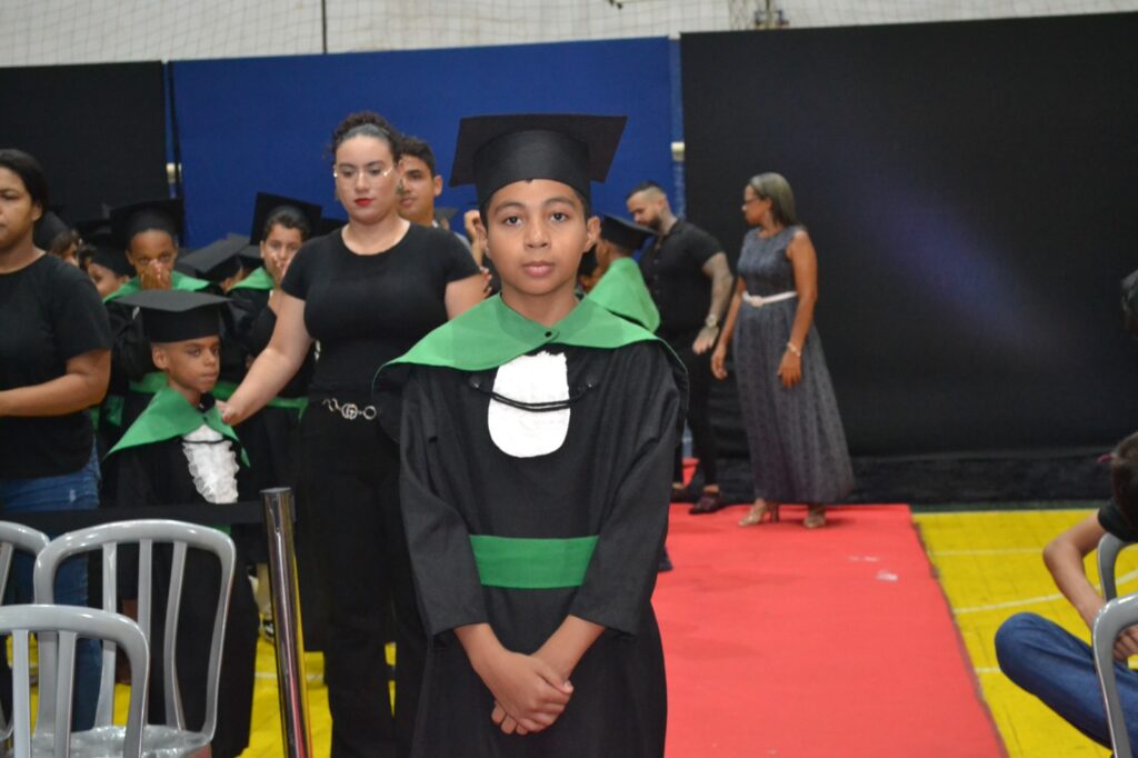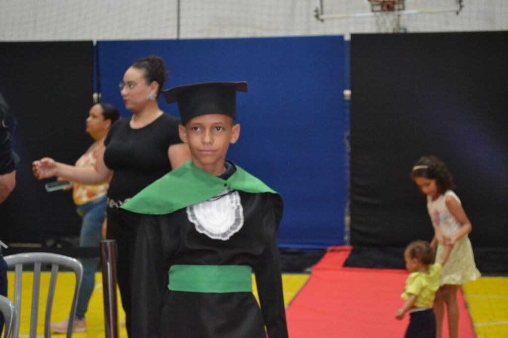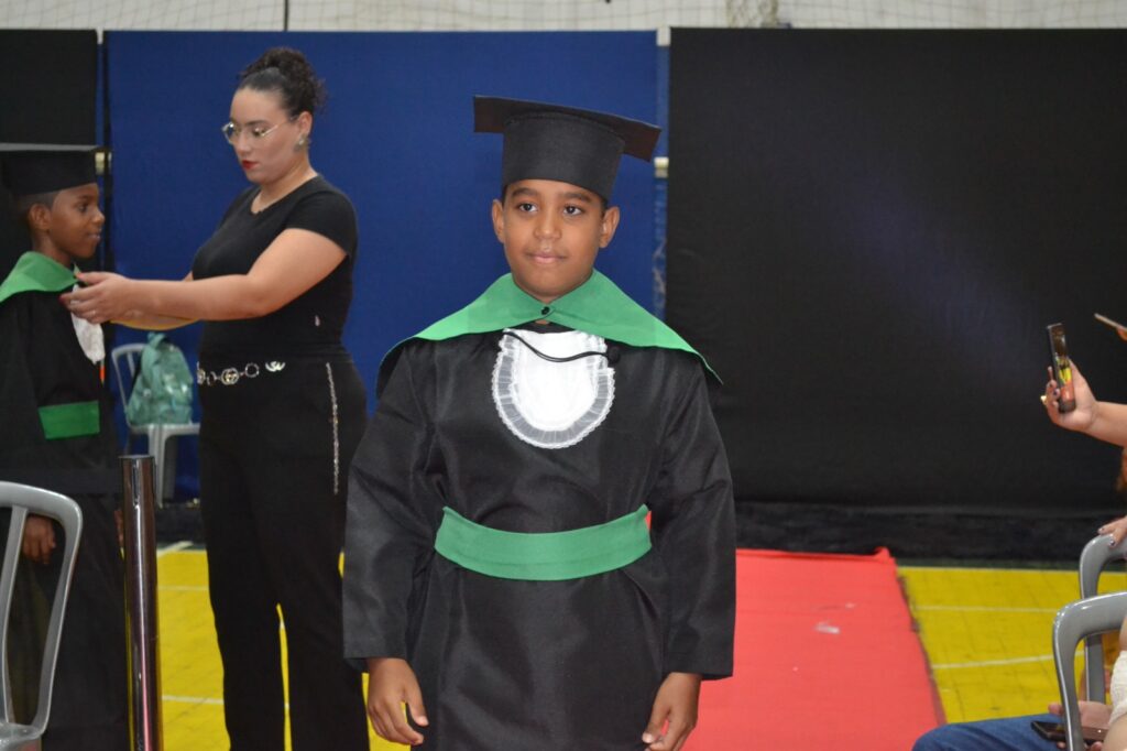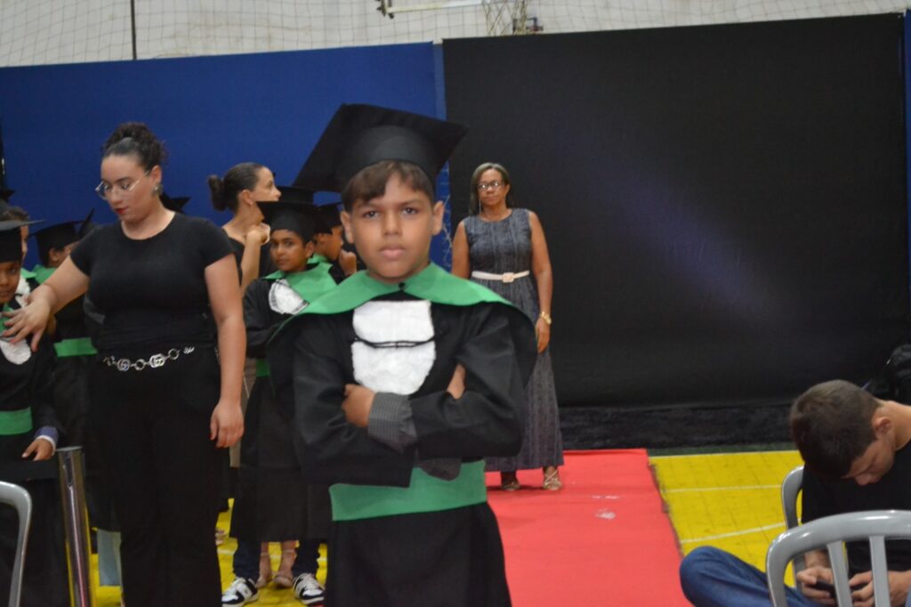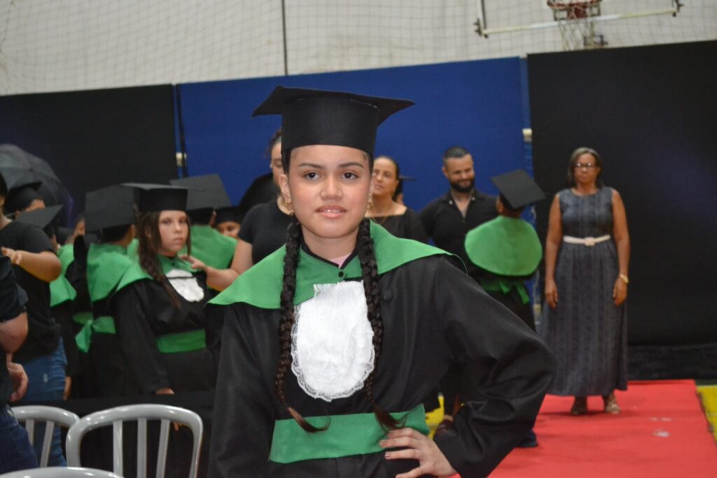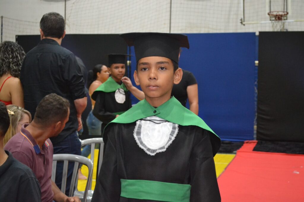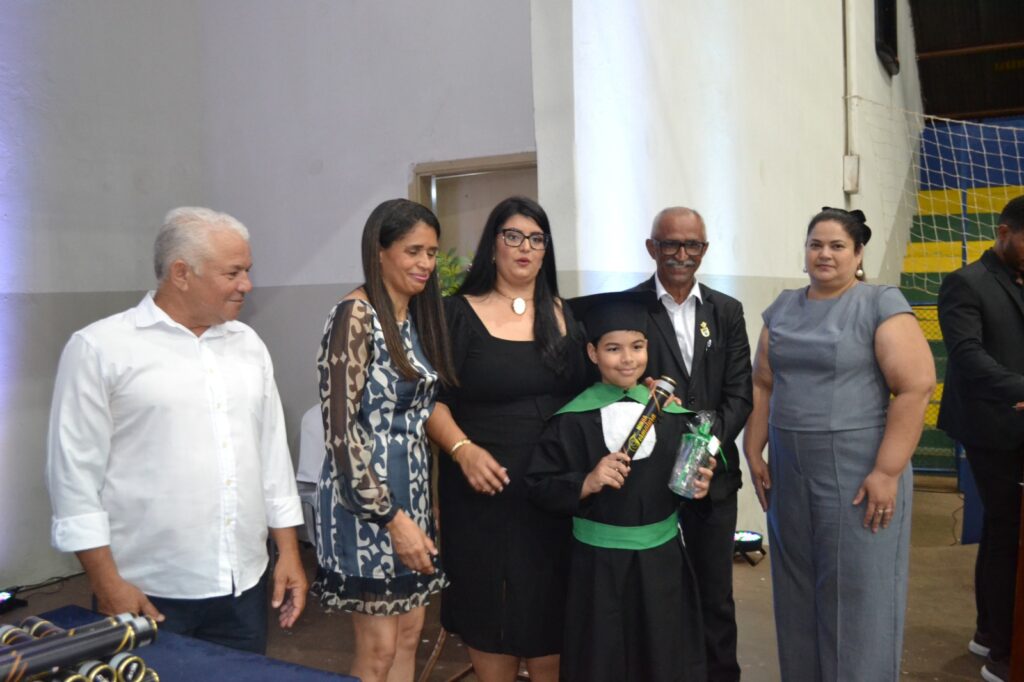 Realizada no Ginásio de Esportes Sinhô Parreira, a cerimônia reuniu estudantes, famílias, professores e toda a comunidade escolar em um momento de grande emoção e celebração. As crianças receberam seus certificados em meio a homenagens e reconhecimento pelo esforço e dedicação demonstrados ao longo do ano letivo.