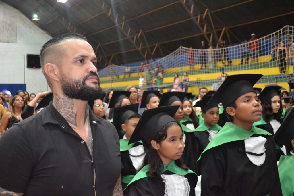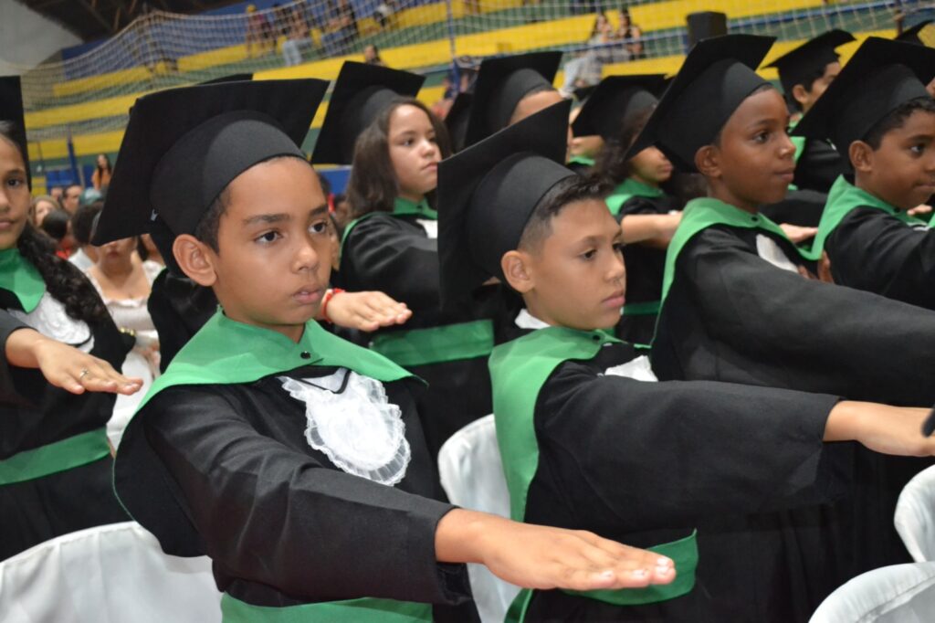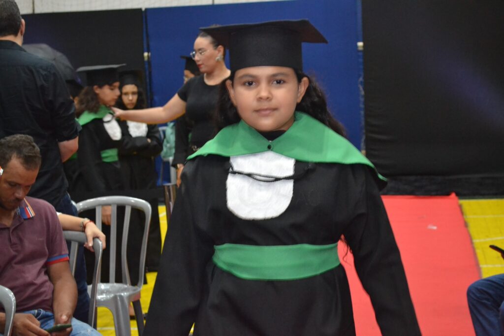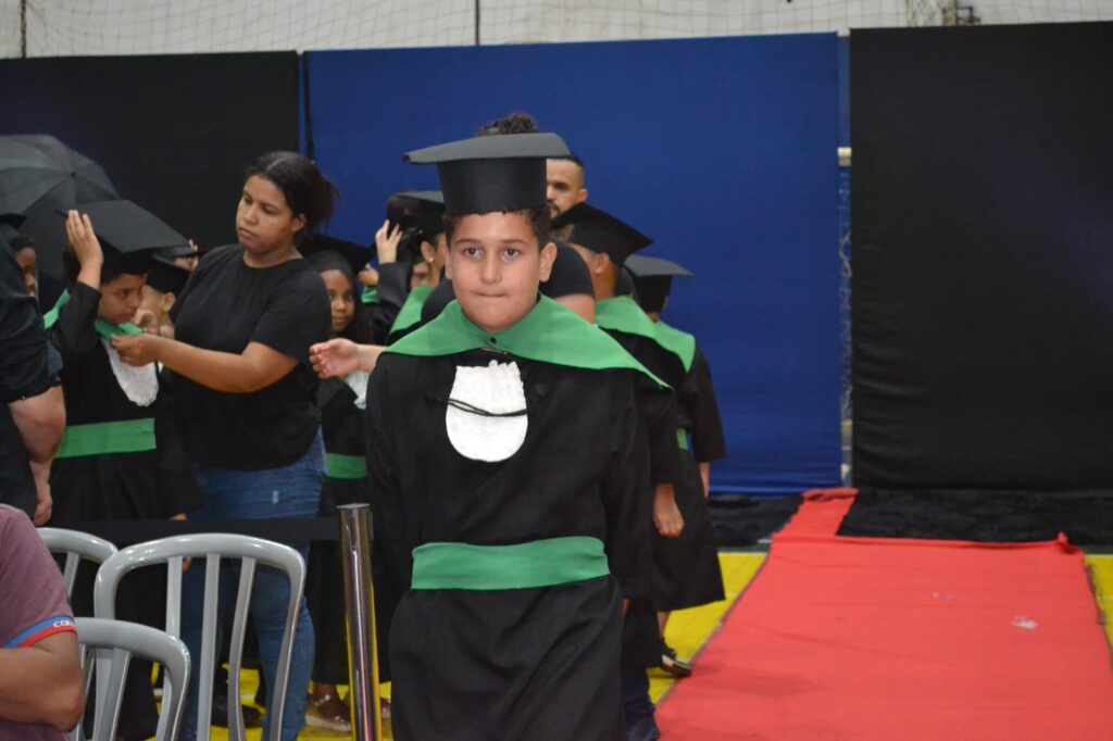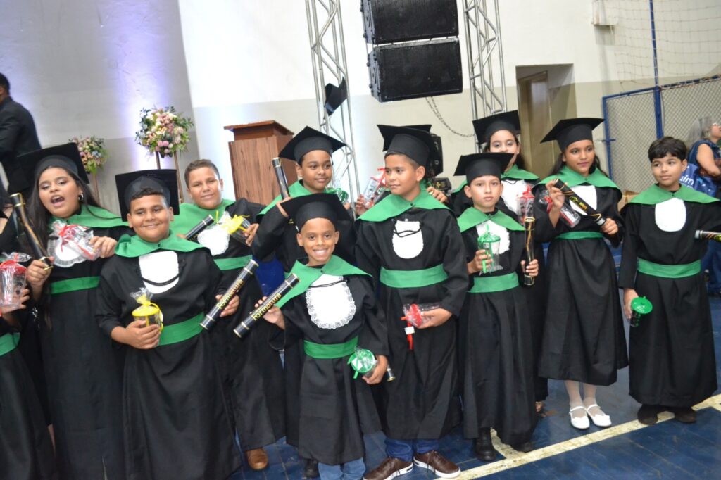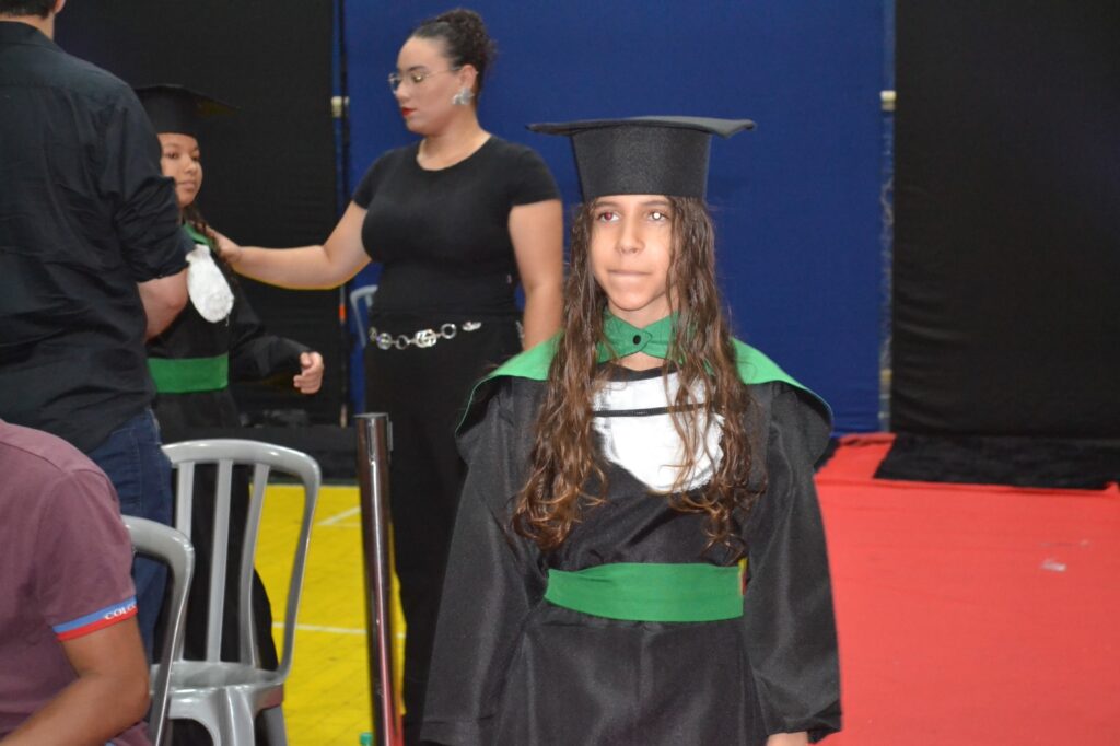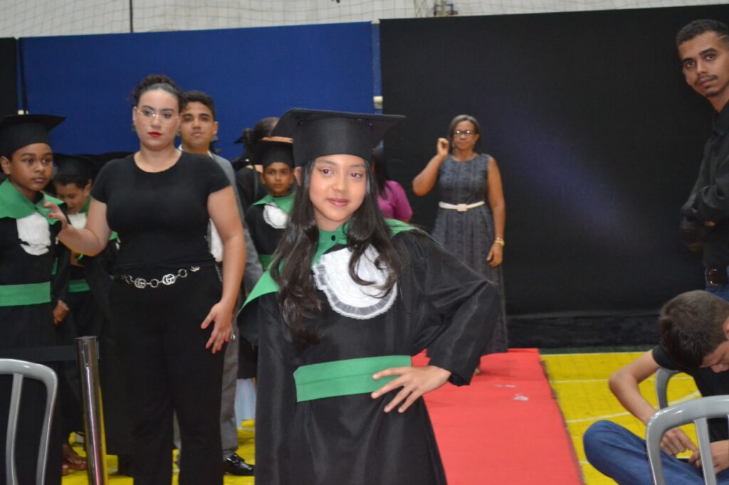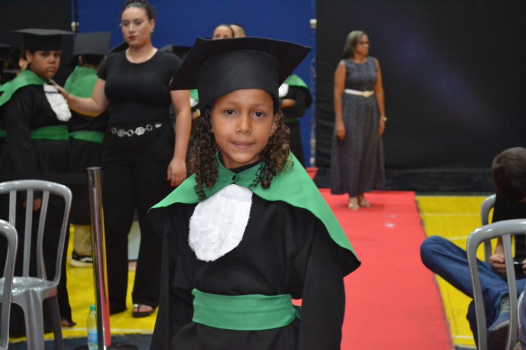 Realizada no Ginásio de Esportes Sinhô Parreira, a cerimônia reuniu estudantes, famílias, professores e toda a comunidade escolar em um momento de grande emoção e celebração. As crianças receberam seus certificados em meio a homenagens e reconhecimento pelo esforço e dedicação demonstrados ao longo do ano letivo.