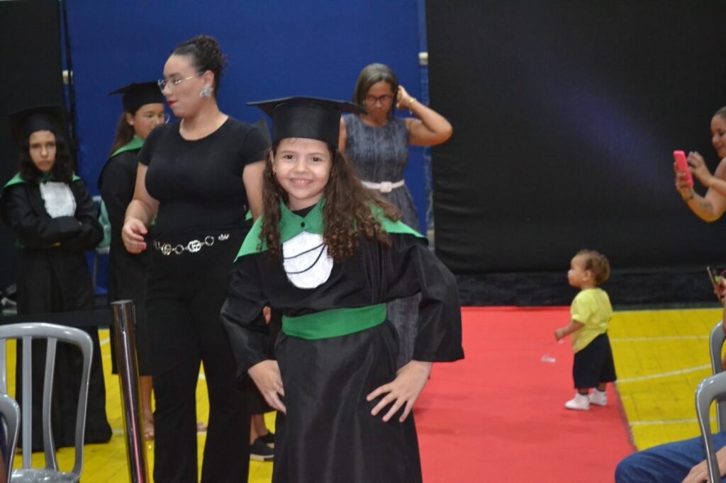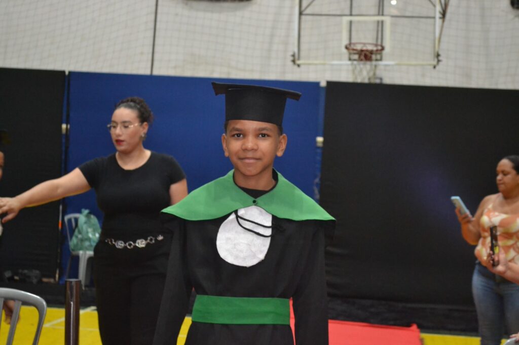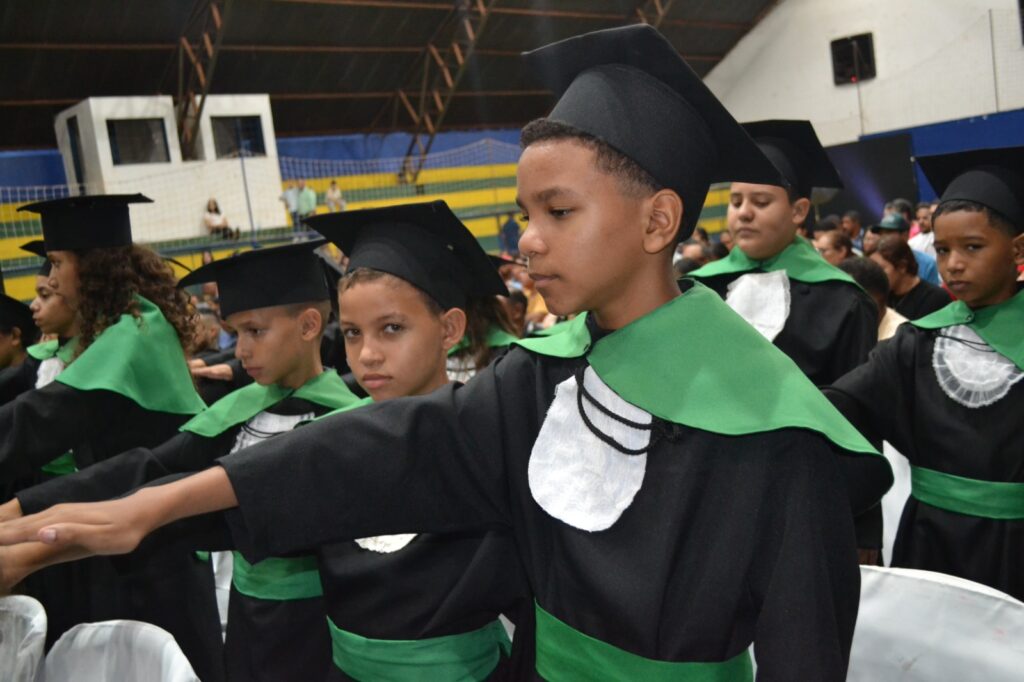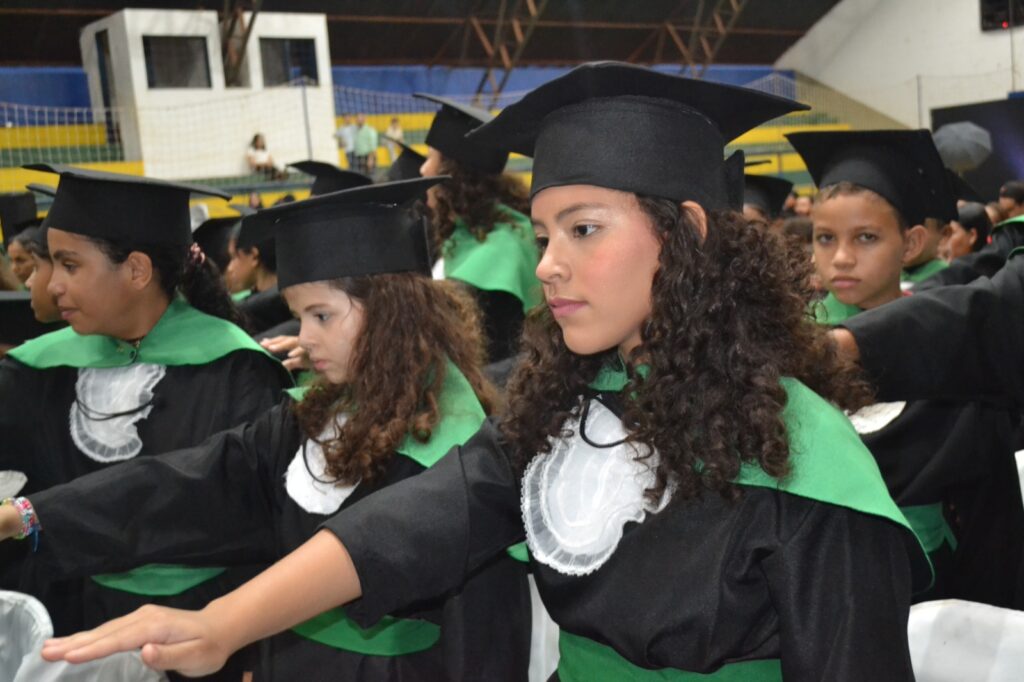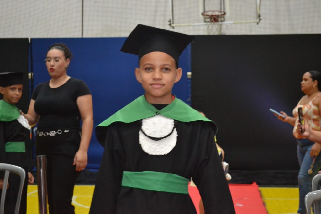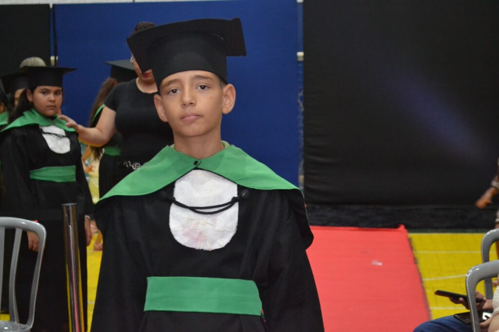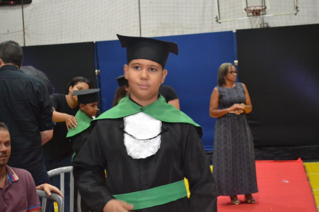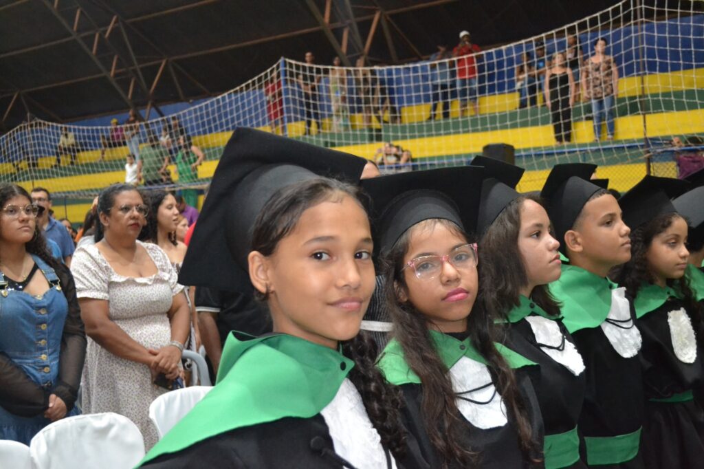 Realizada no Ginásio de Esportes Sinhô Parreira, a cerimônia reuniu estudantes, famílias, professores e toda a comunidade escolar em um momento de grande emoção e celebração. As crianças receberam seus certificados em meio a homenagens e reconhecimento pelo esforço e dedicação demonstrados ao longo do ano letivo.