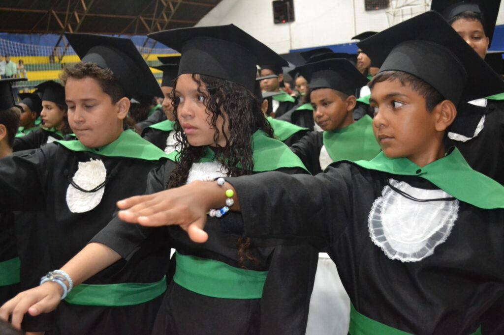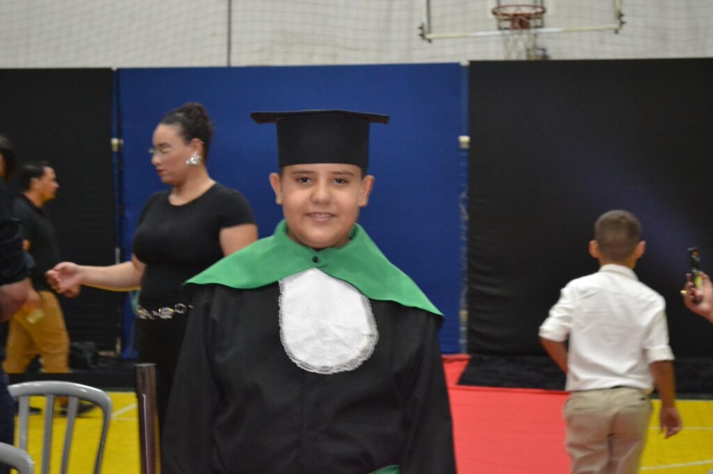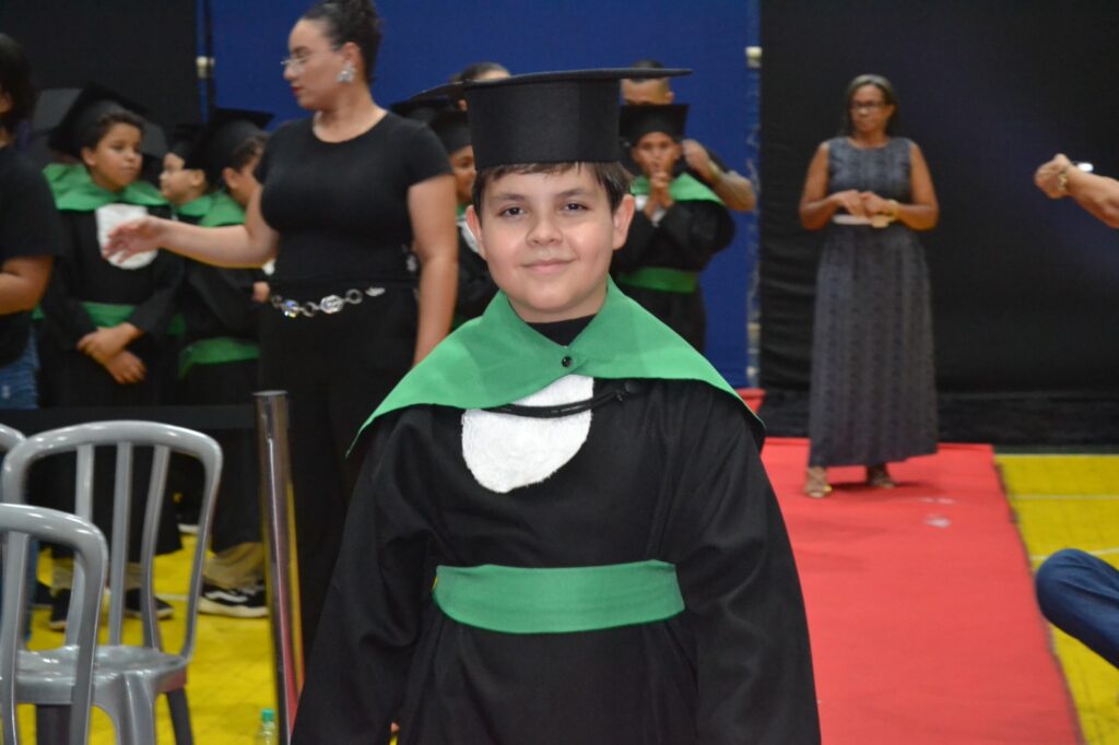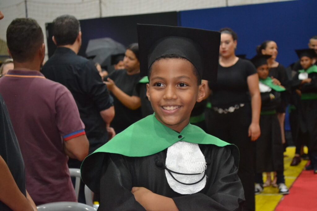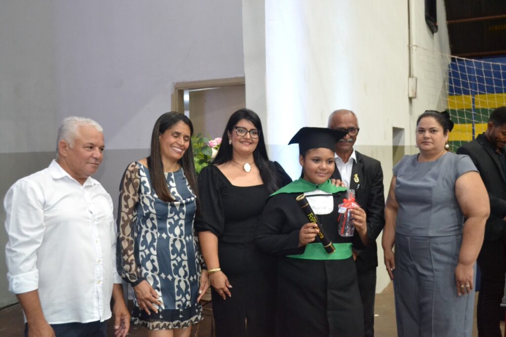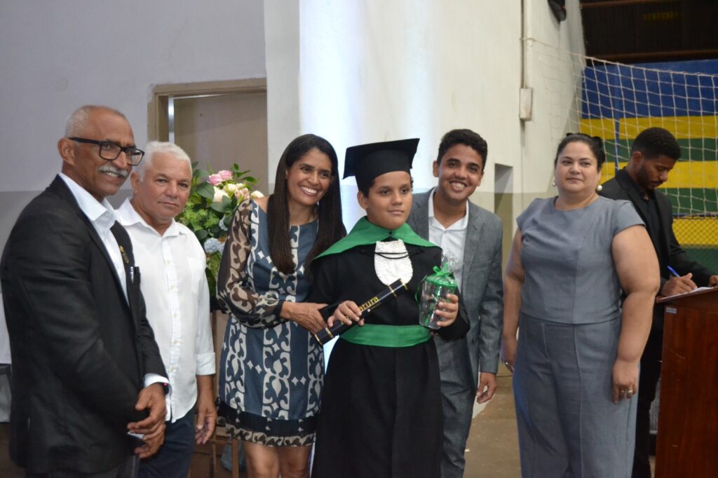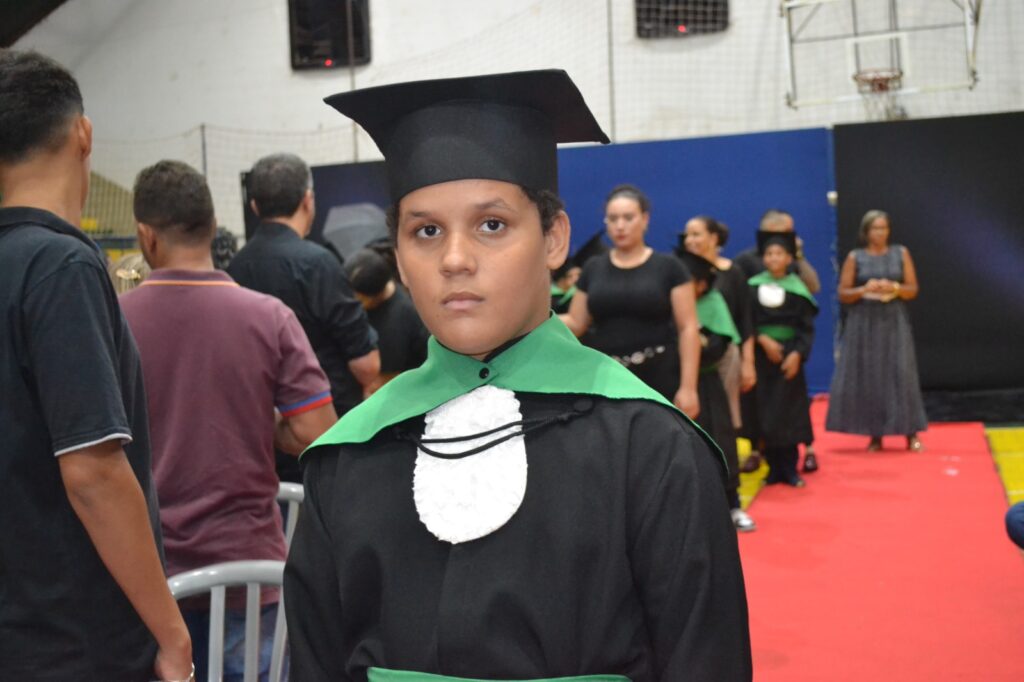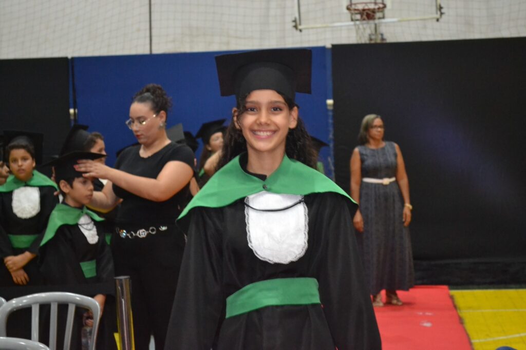 Realizada no Ginásio de Esportes Sinhô Parreira, a cerimônia reuniu estudantes, famílias, professores e toda a comunidade escolar em um momento de grande emoção e celebração. As crianças receberam seus certificados em meio a homenagens e reconhecimento pelo esforço e dedicação demonstrados ao longo do ano letivo.